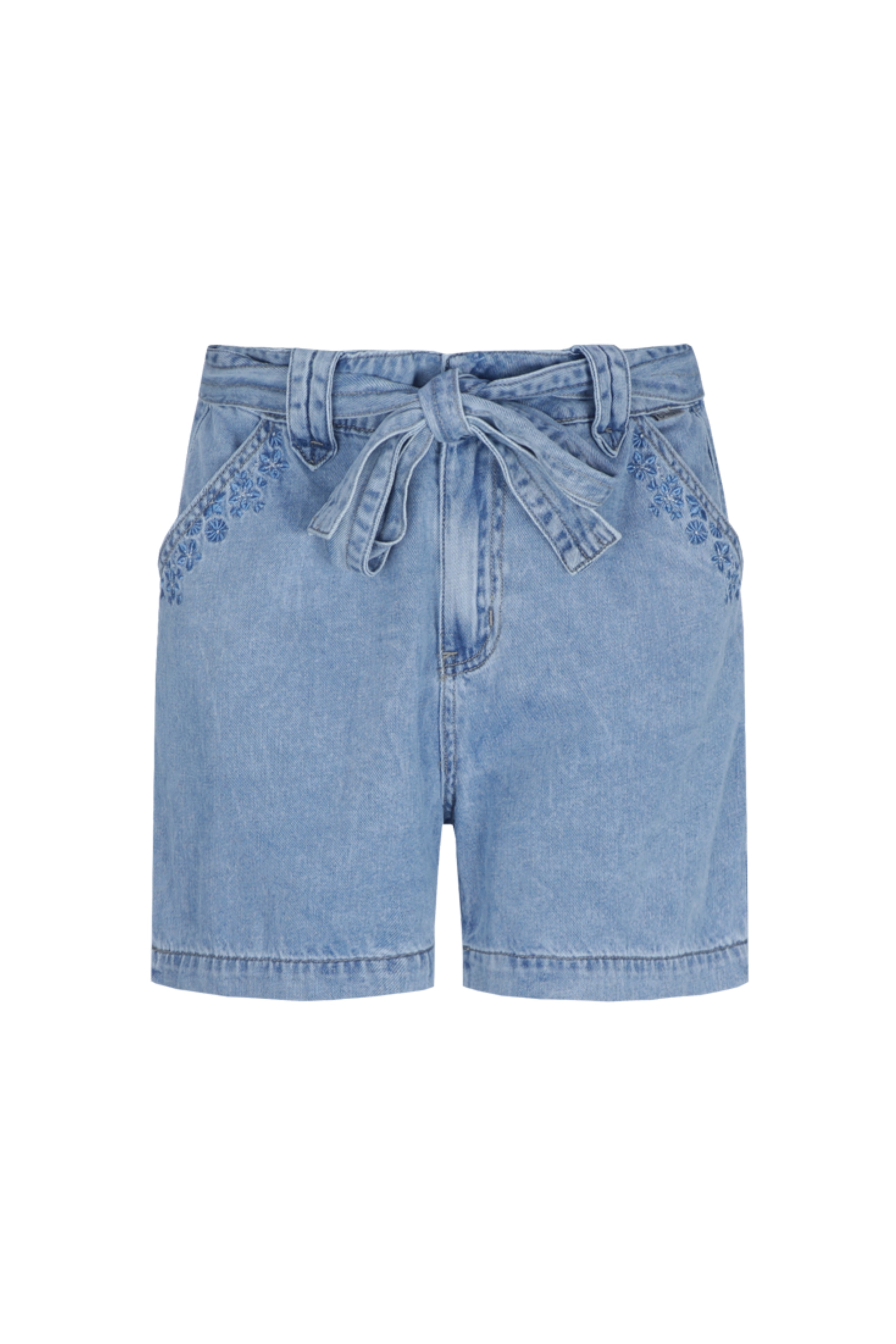 De Short Billie Denim Light Blue van G-maxx is een casual short met hoge taille. De strikceintuur en denimlook zorgen voor een vrouwelijke, relaxte uitstraling. Perfect voor vrije dagen en zomerse citytrips.