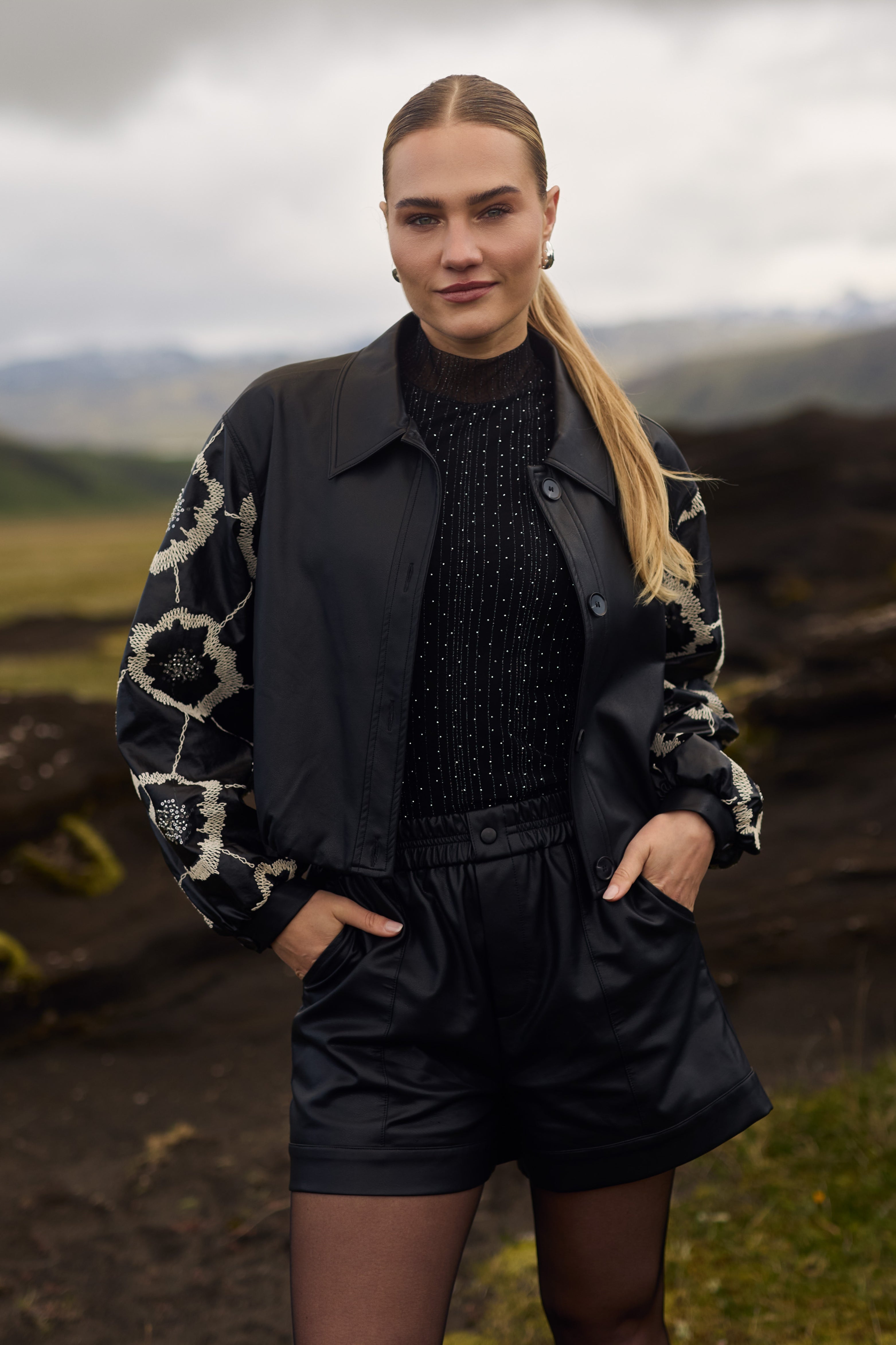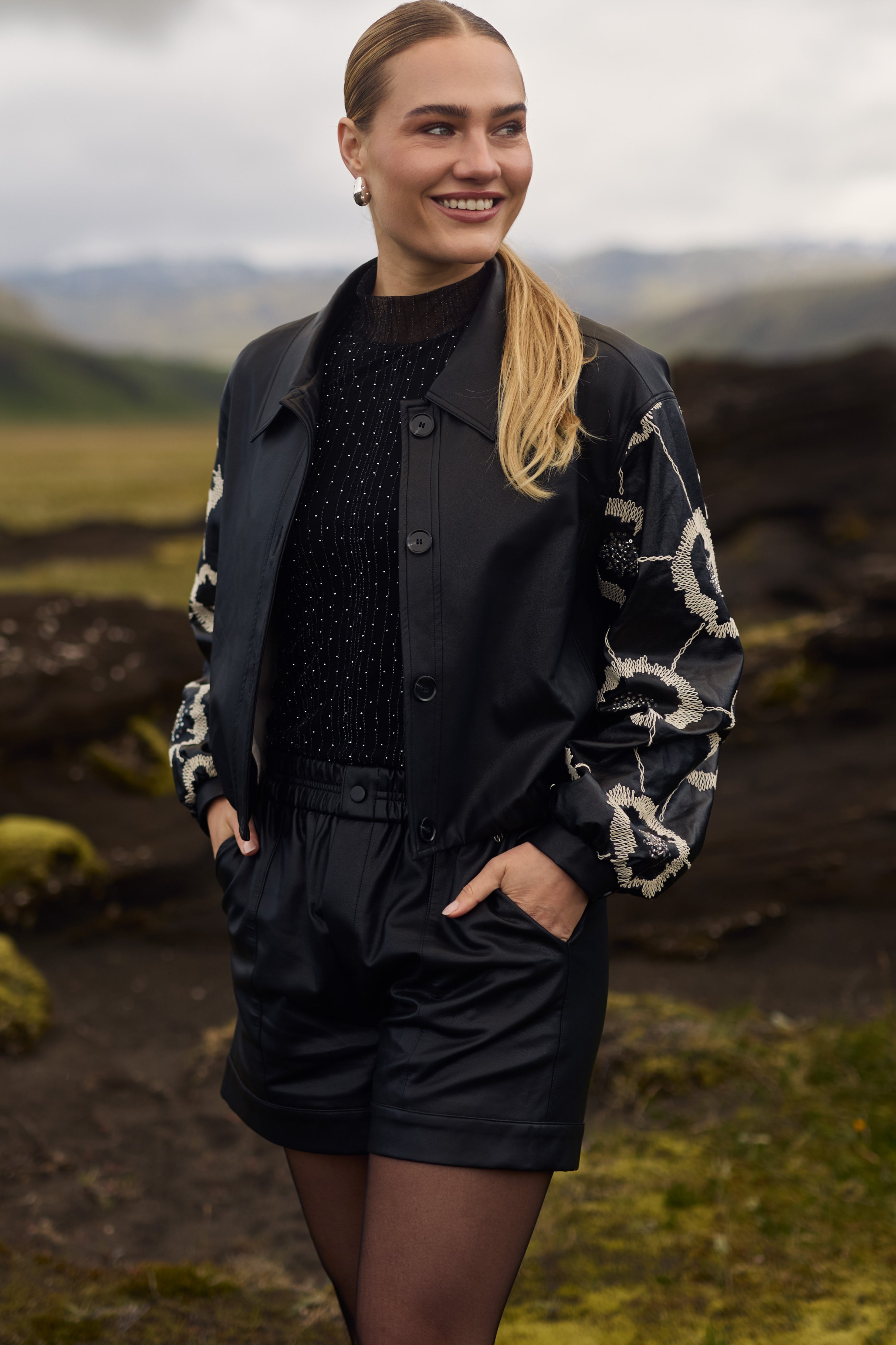De Nukus Short Esmee Black is een trendy vegan leren short met elastische taille en knoopsluiting. Minimalistisch en tijdloos, eindeloos te combineren voor zowel casual als geklede looks.
