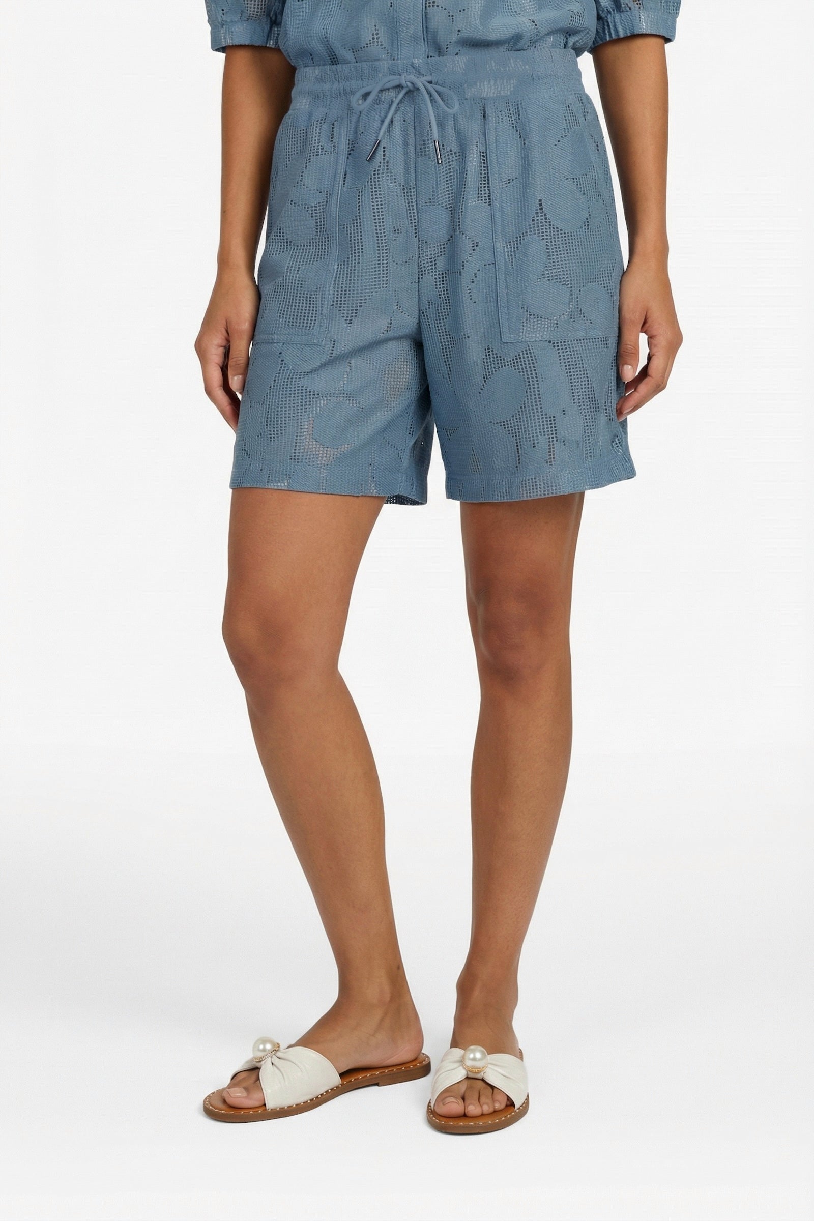 De Short Lilja Light Denim Blue van G-maxx is een stijlvolle short in een zachte jeansblauwe tint met een subtiel dessin. De losse pasvorm en elastische taille met strikkoord geven de short een comfortabele en vrouwelijke uitstraling.