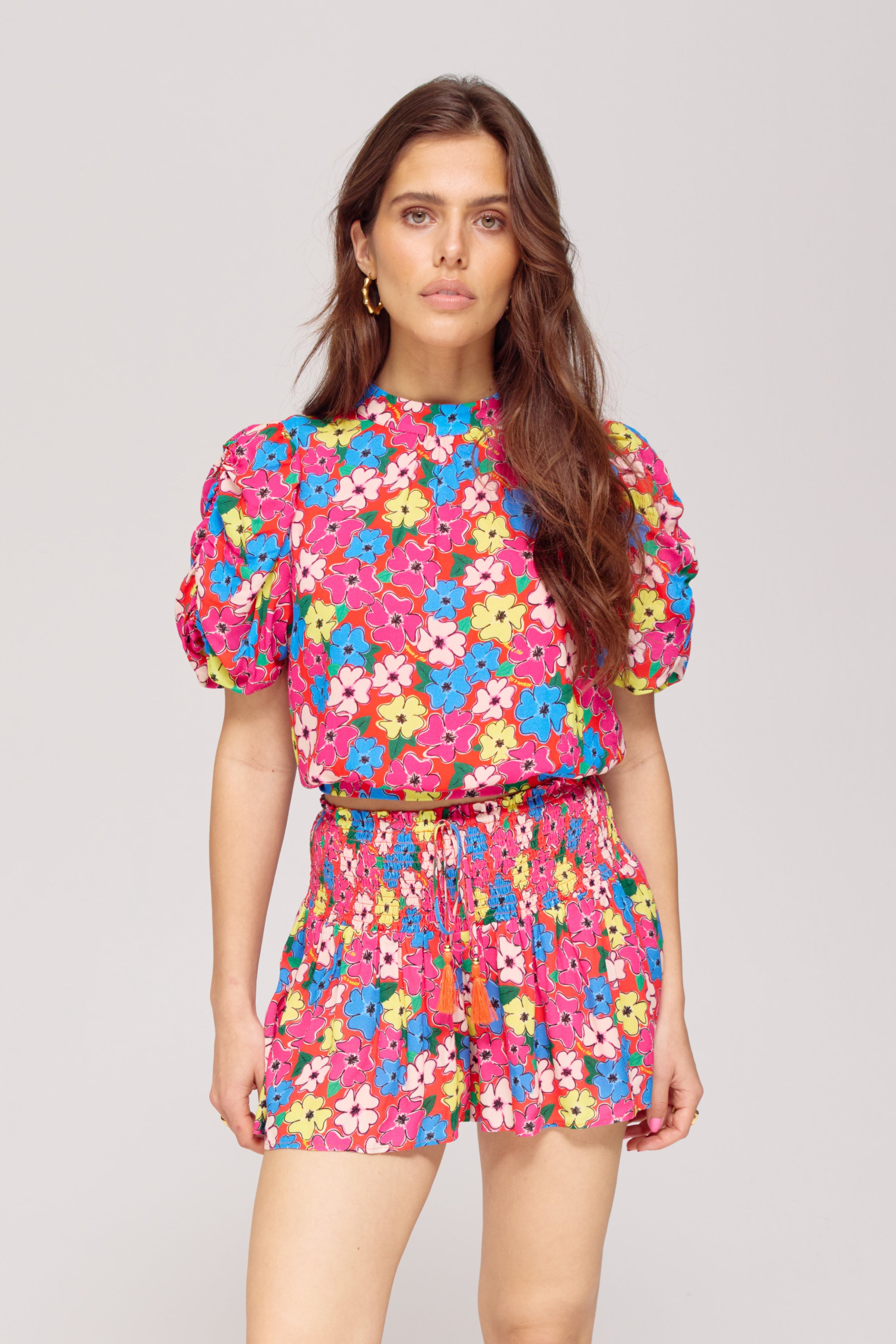 De Short Ruby Floral Mix van Harper & Yve is een kleurrijke zomershort met vrolijke bloemenprint en smocktaille. Dankzij de stretchy band en het strikkoordje zit dit shortje niet alleen stylish, maar ook heerlijk comfortabel.