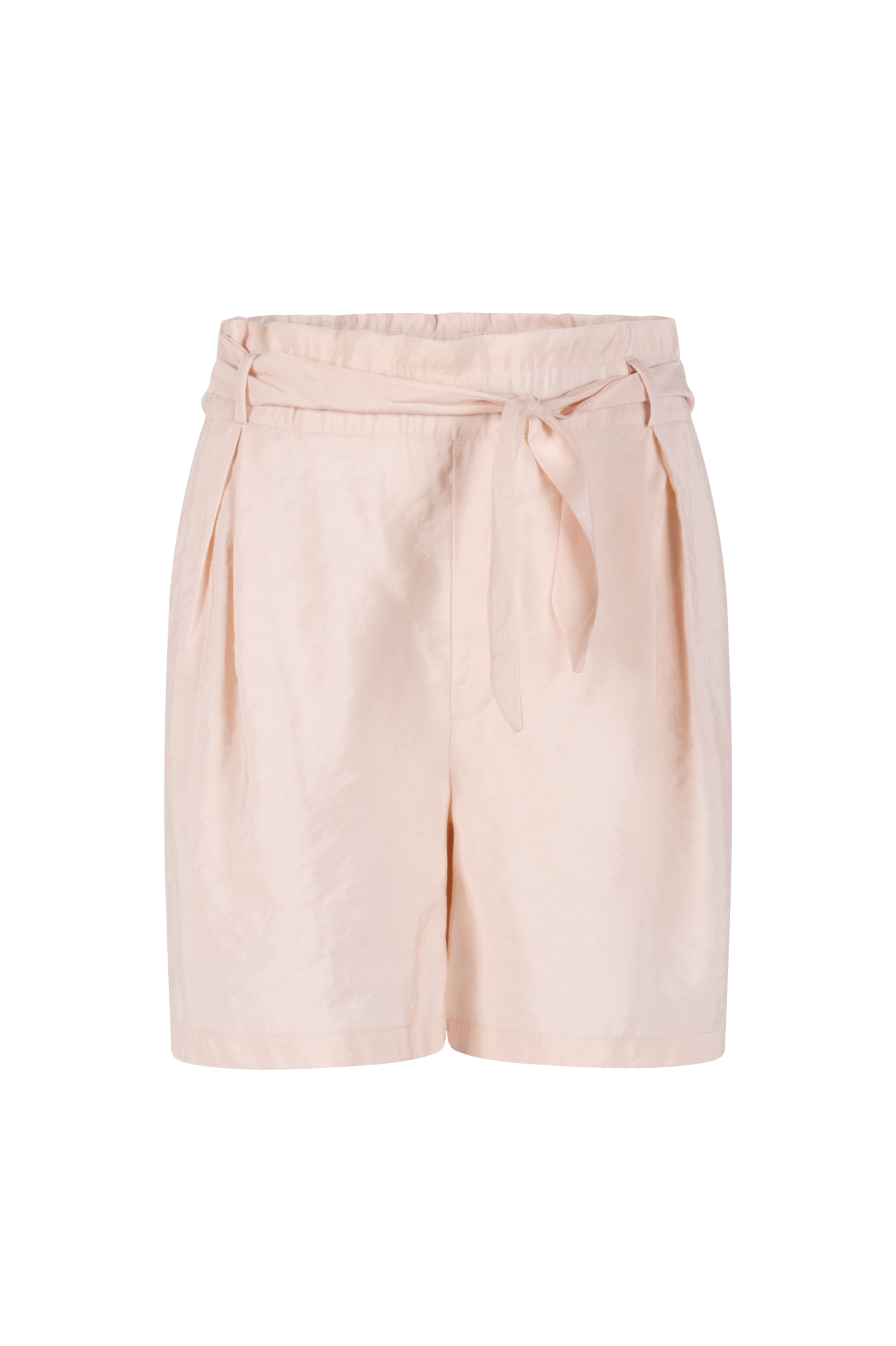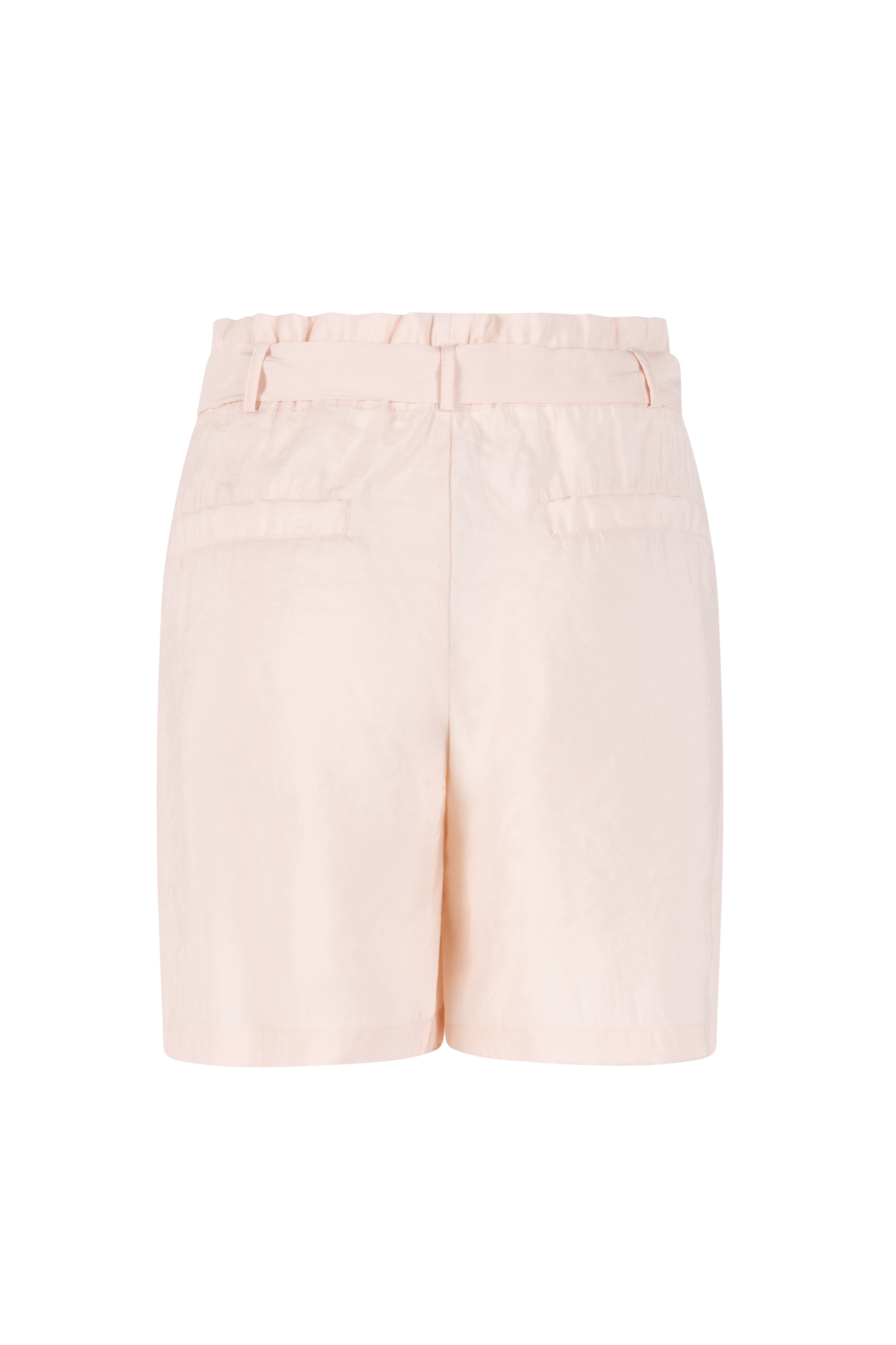 De Short Sanna Pink van Zoso is een vrouwelijke short in een zachtroze tint met een subtiele glans. De elastische tailleband met strikceintuur zorgt voor een comfortabele en elegante uitstraling.