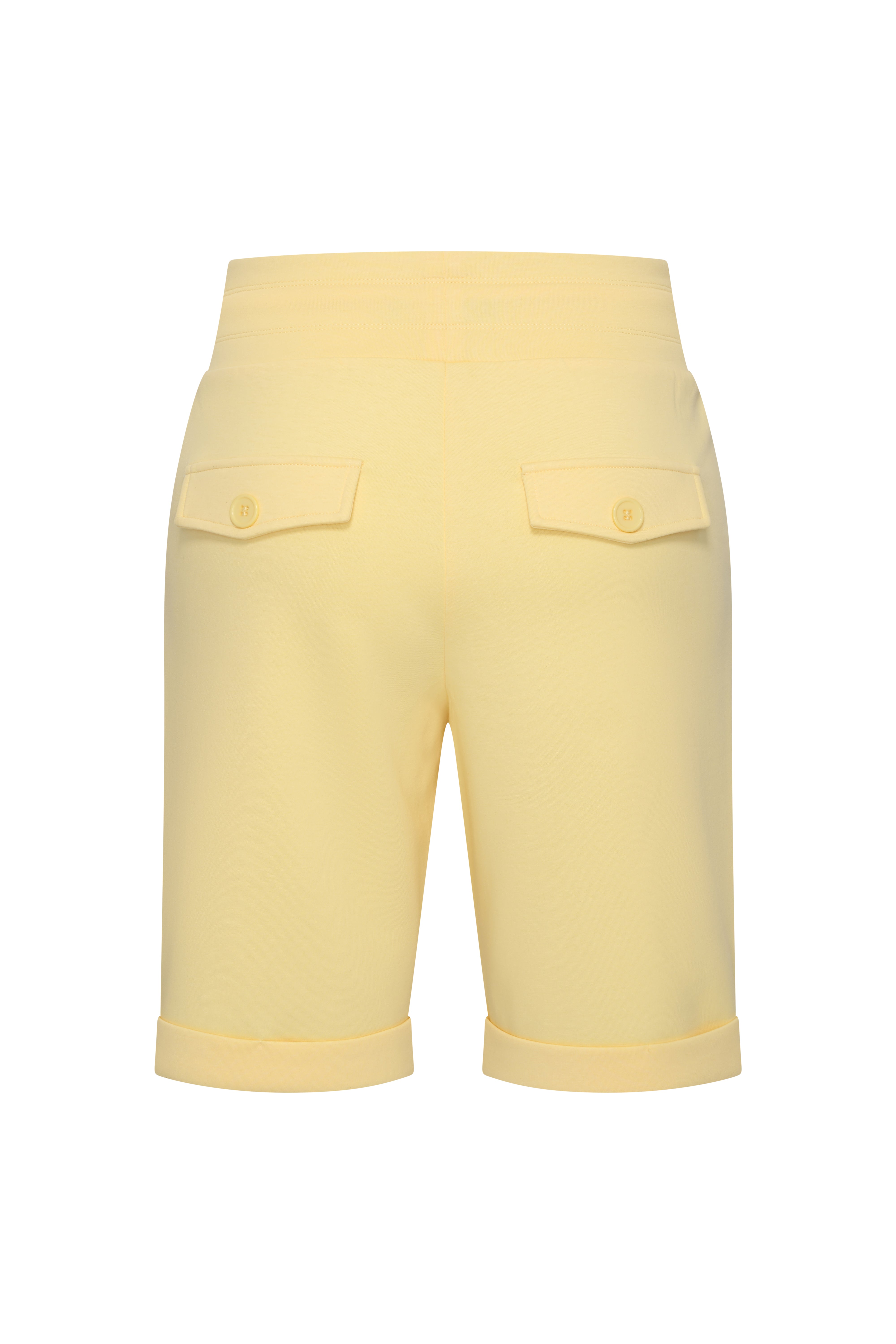 De Sweat Short Lemon Yellow van Mi Piace is een comfortabele short met een sportieve uitstraling. De zachte sweatstof en elastische taille met strikkoord zorgen voor een fijne pasvorm, terwijl de omslag aan de pijpen een moderne look geeft.