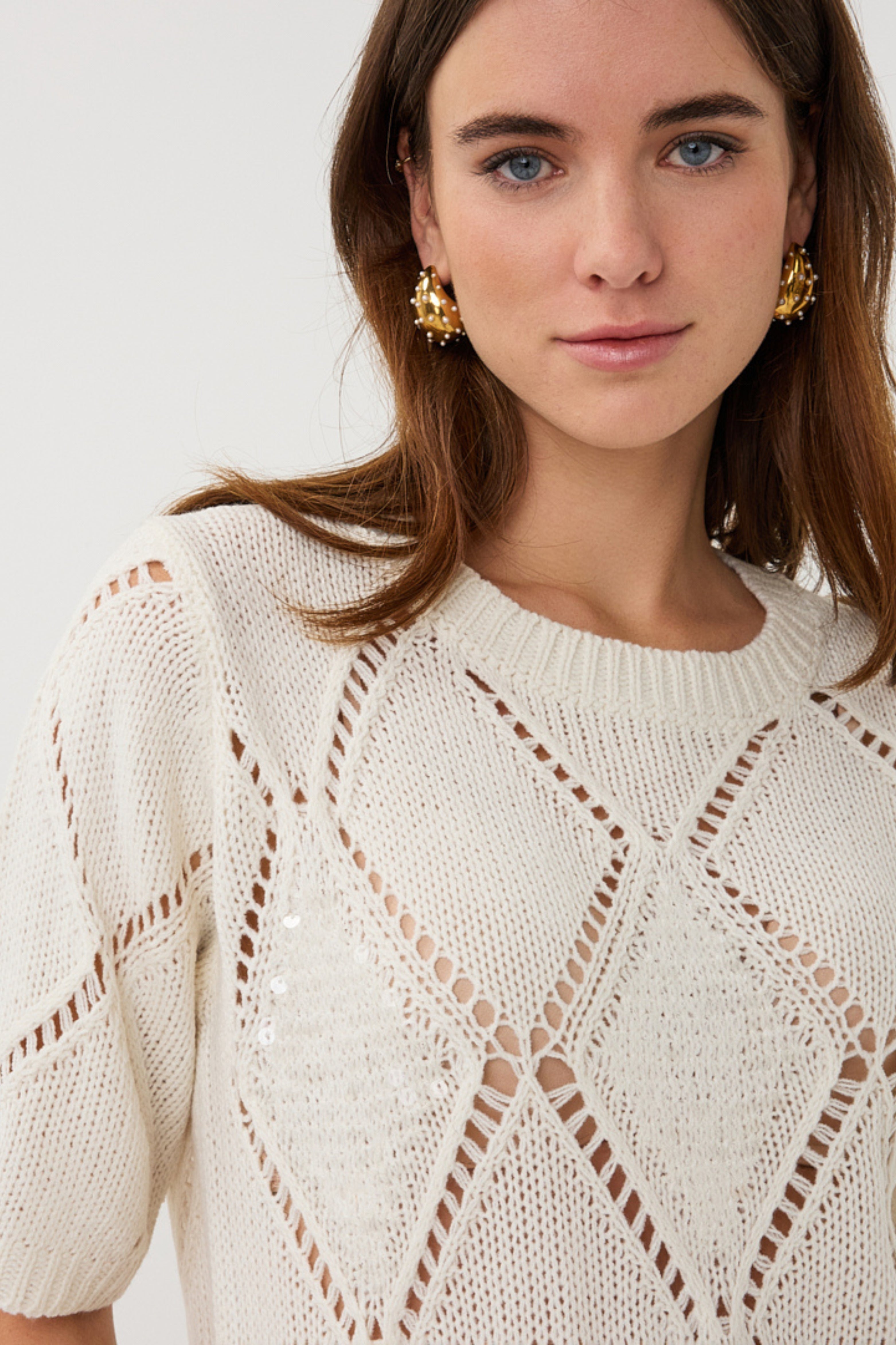 Sweater Ajour Diamond Sequins Ecru SP26.02016