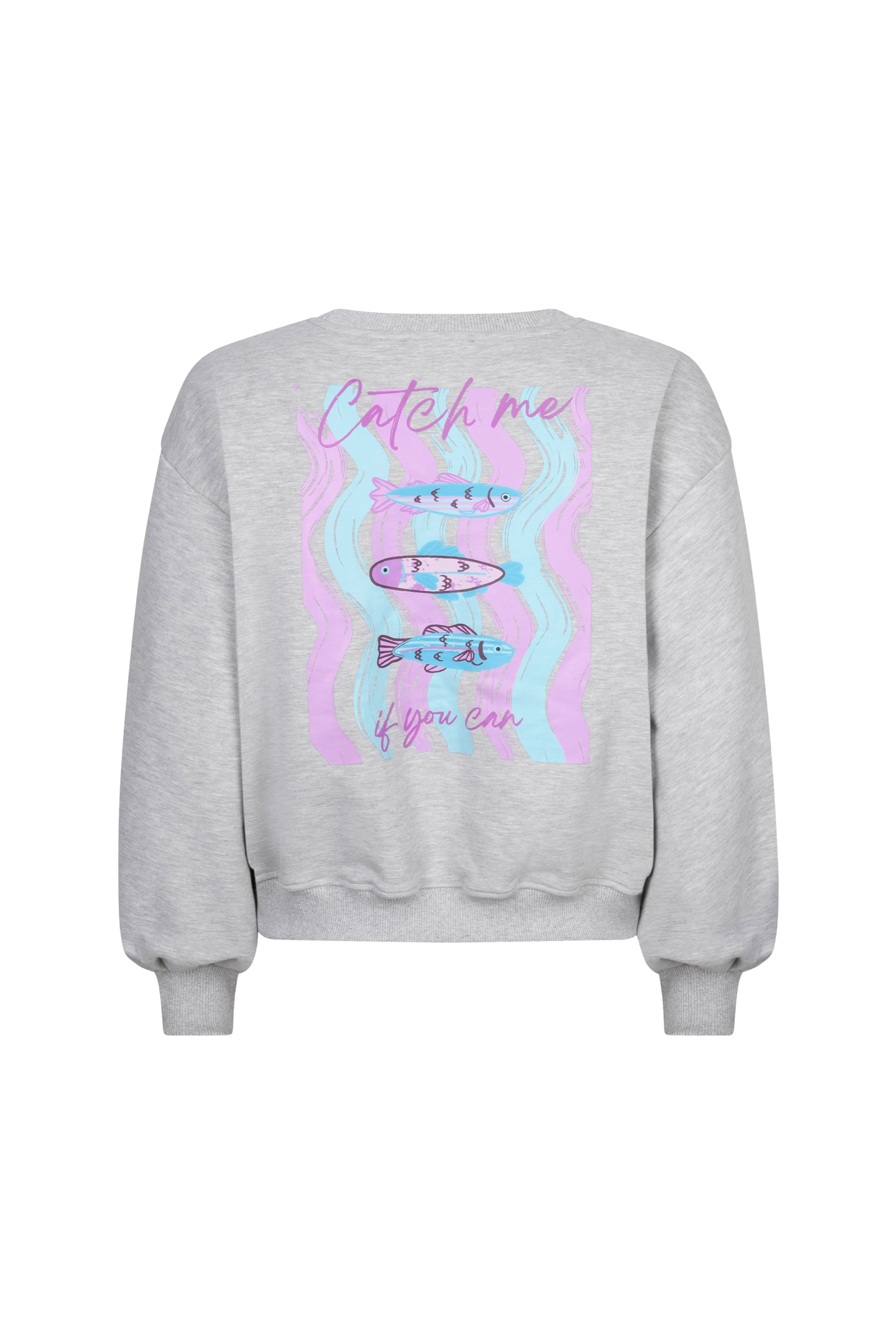 Sweater Catch Me Grey Melange van Ydence is een comfy statement met een speelse print. De zachte sweatstof en relaxte pasvorm maken deze trui perfect voor casual dagen, met een trendy twist voor het najaar.