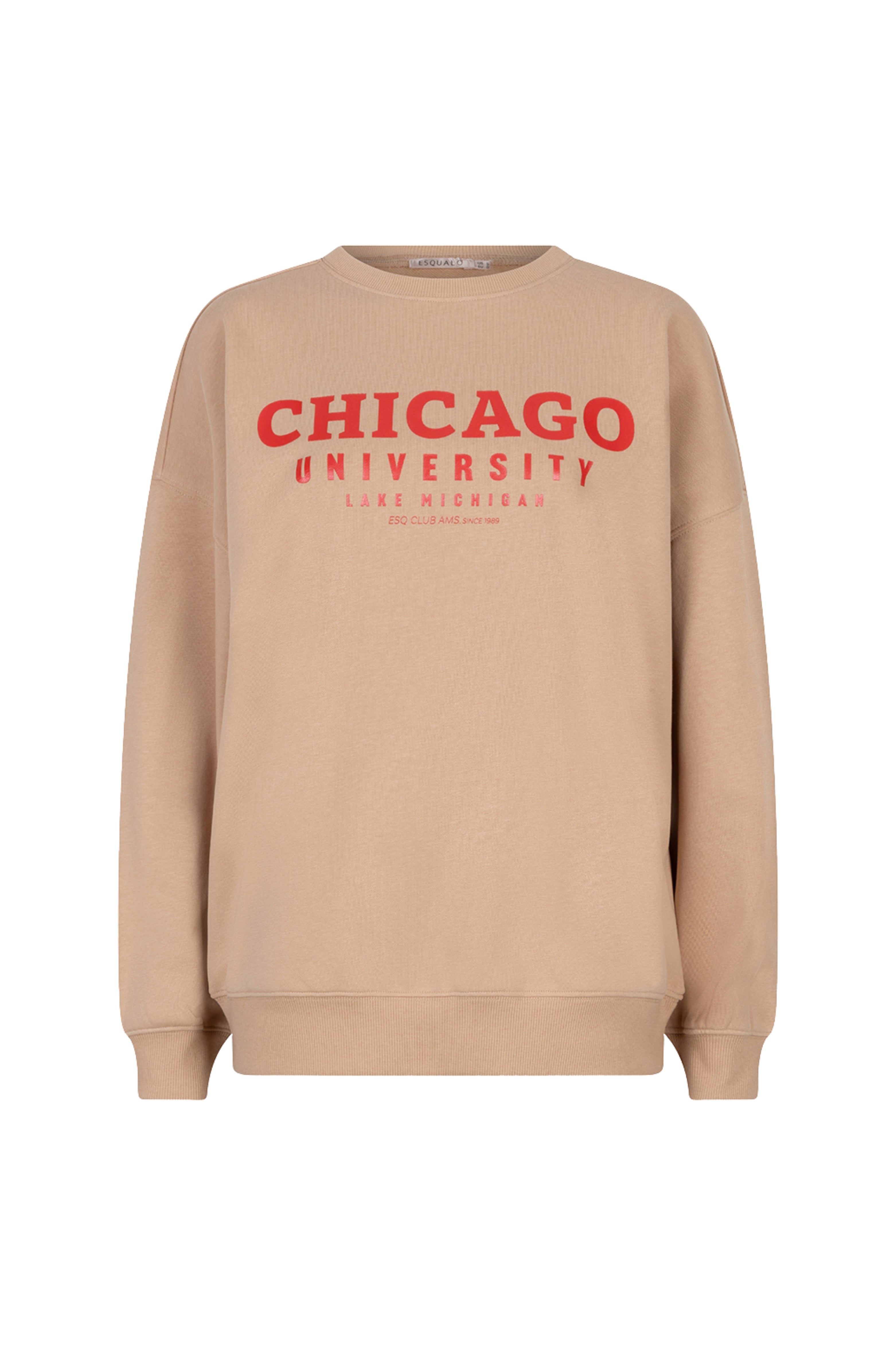 De Sweater Chicago Sand van Esqualo is een sportieve sweater met hoge ronde hals. Zachte sweat met grote collegeprint en geribde boorden, perfect voor een relaxte dag of citytrip.