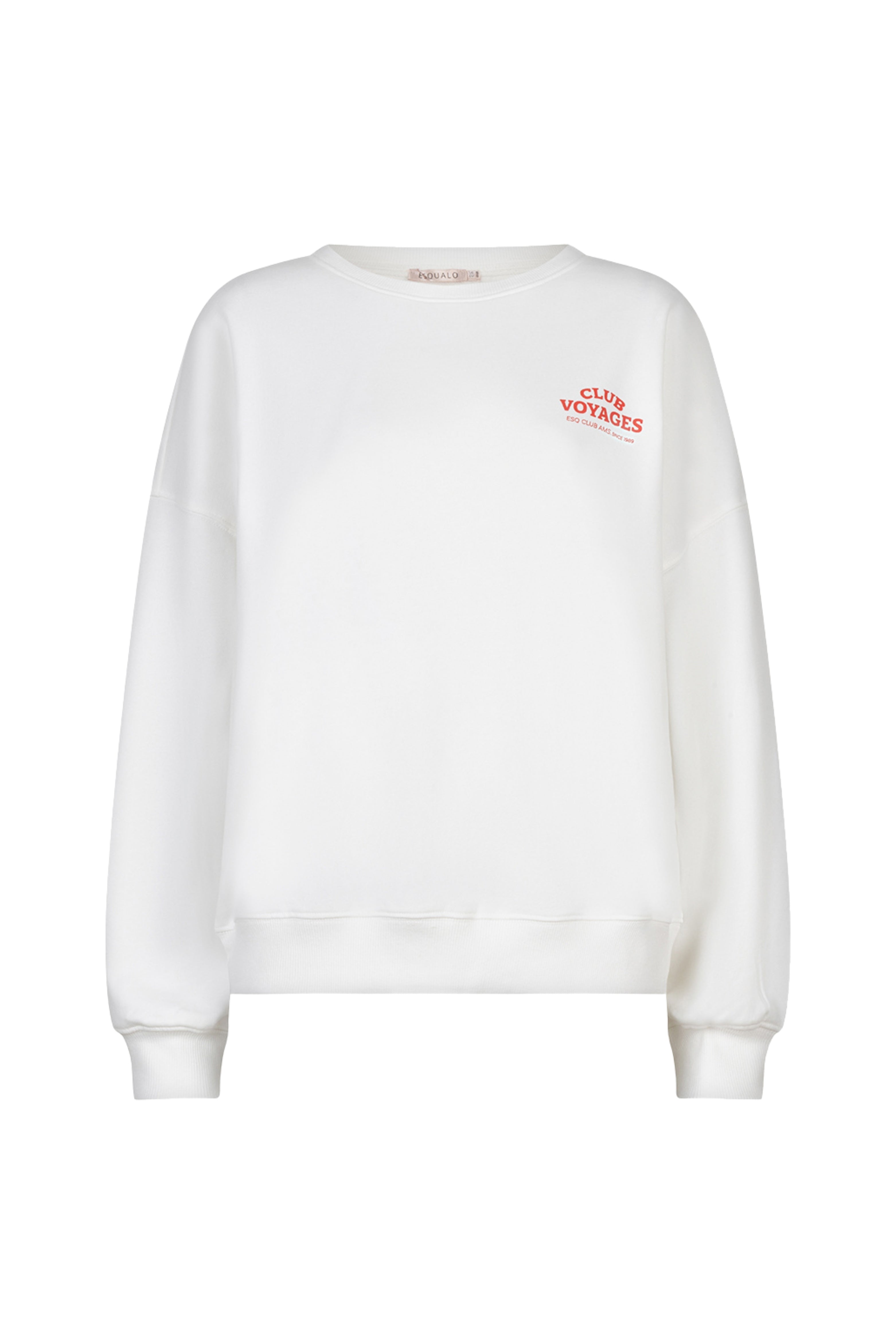 De Sweater Cities Offwhite Red van Esqualo is een casual sweater met ronde hals. Zachte sweatstof met geribde boorden geeft een comfortabele fit, perfect voor een relaxte dag of citytrip!