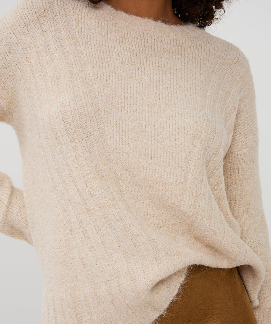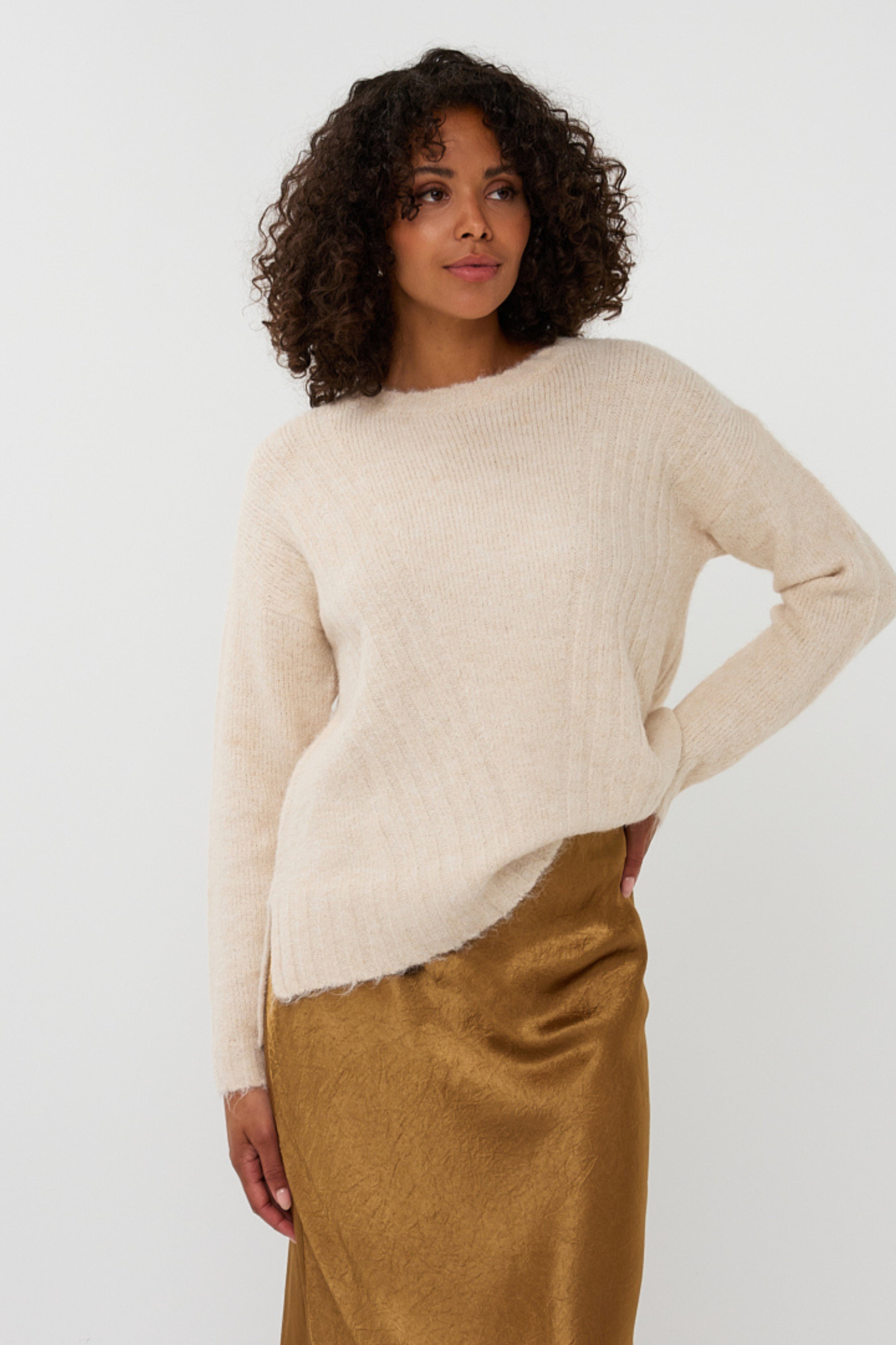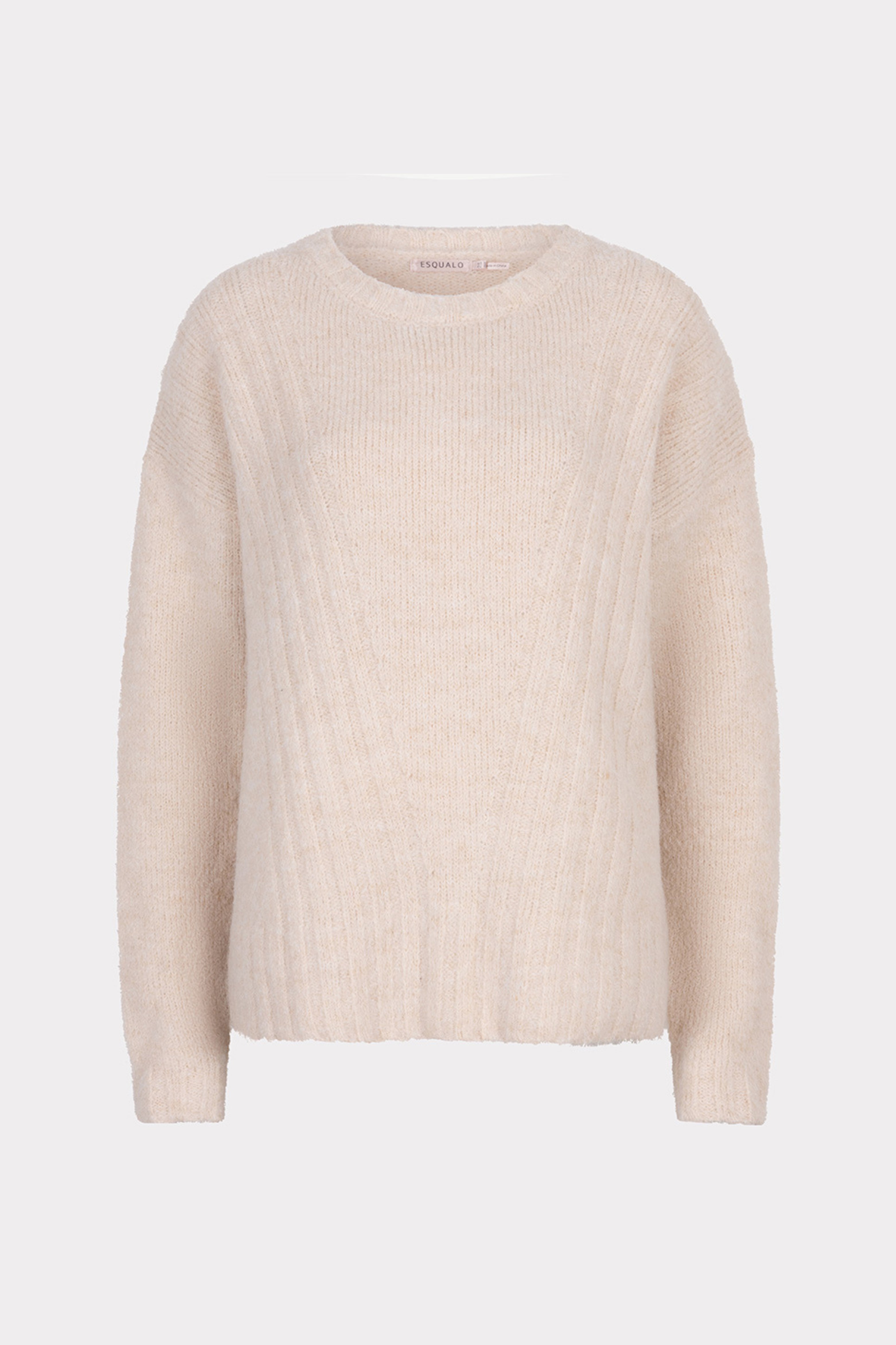 Stijl en comfort komen samen in deze zachte trui van Esqualo. De diagonale lijnen zorgen voor een speels effect, terwijl de zandkleurige tint warmte en rust uitstraalt. Perfect voor cosy dagen met een stijlvolle touch!