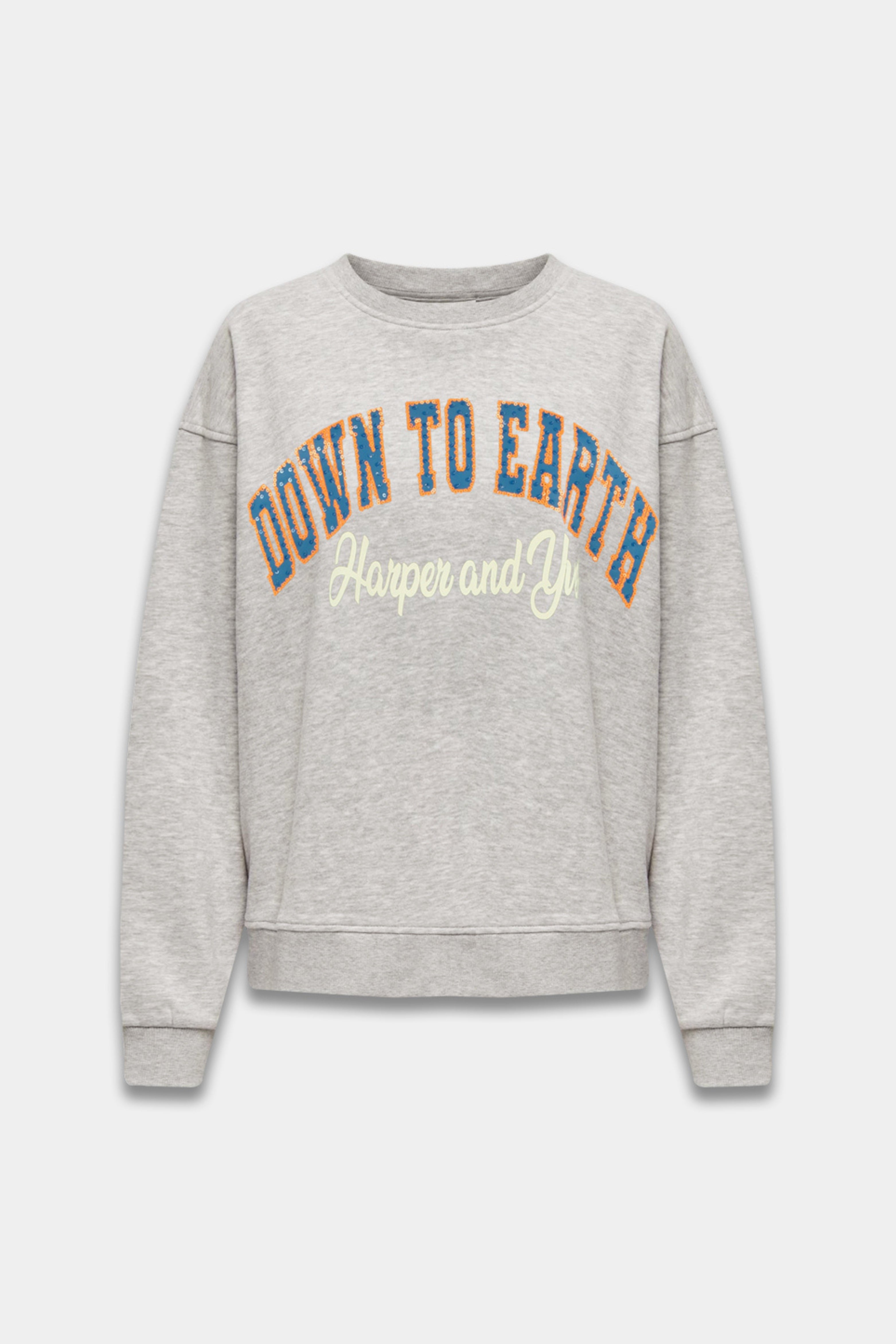 Sweater Downtoearth Grey Melee van Harper & Yve is een casual must-have met sportieve uitstraling. De grijze tint en geborduurde tekstprint geven een trendy touch. Dankzij de relaxed fit ideaal voor comfortabele everyday looks.