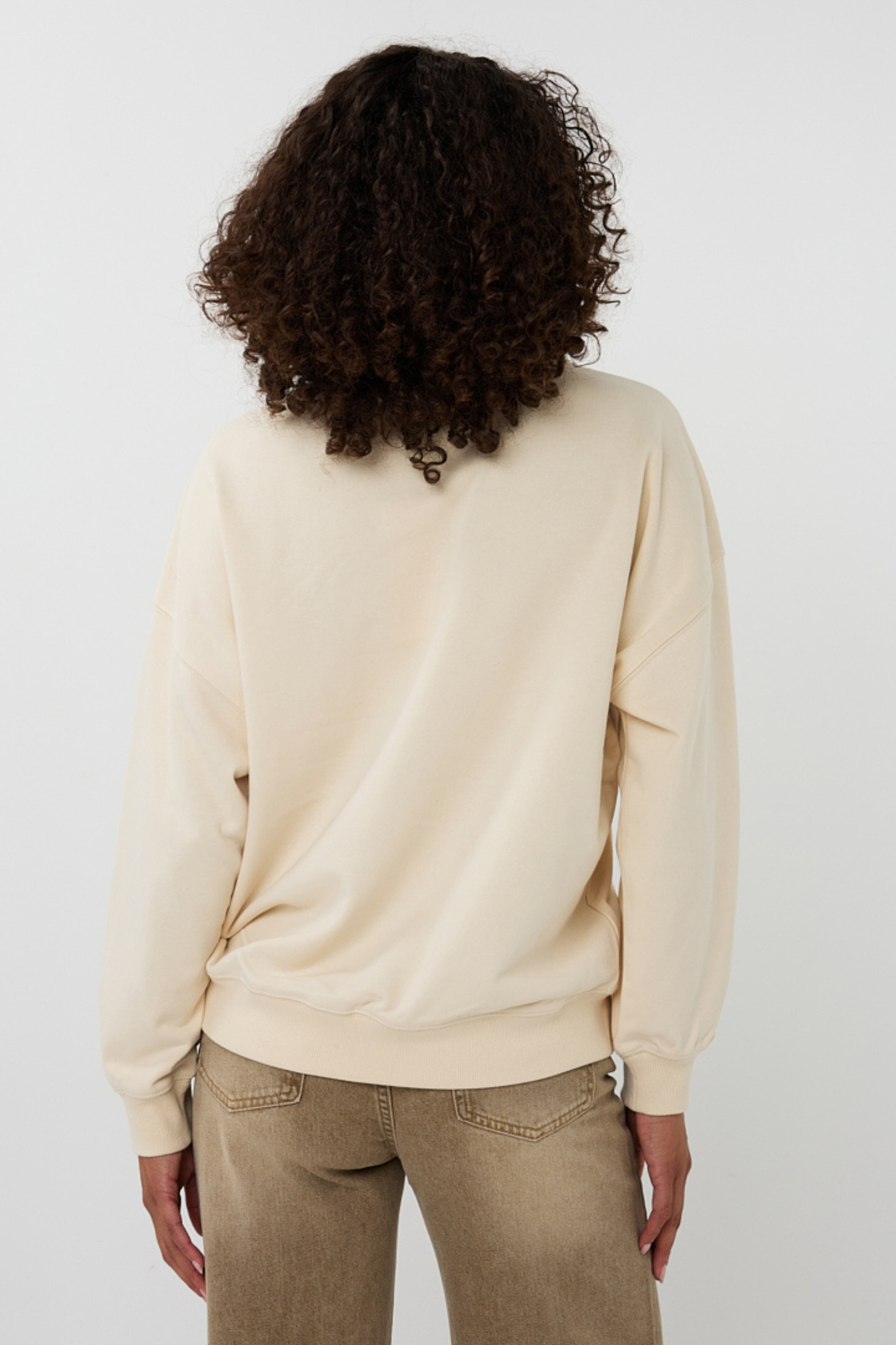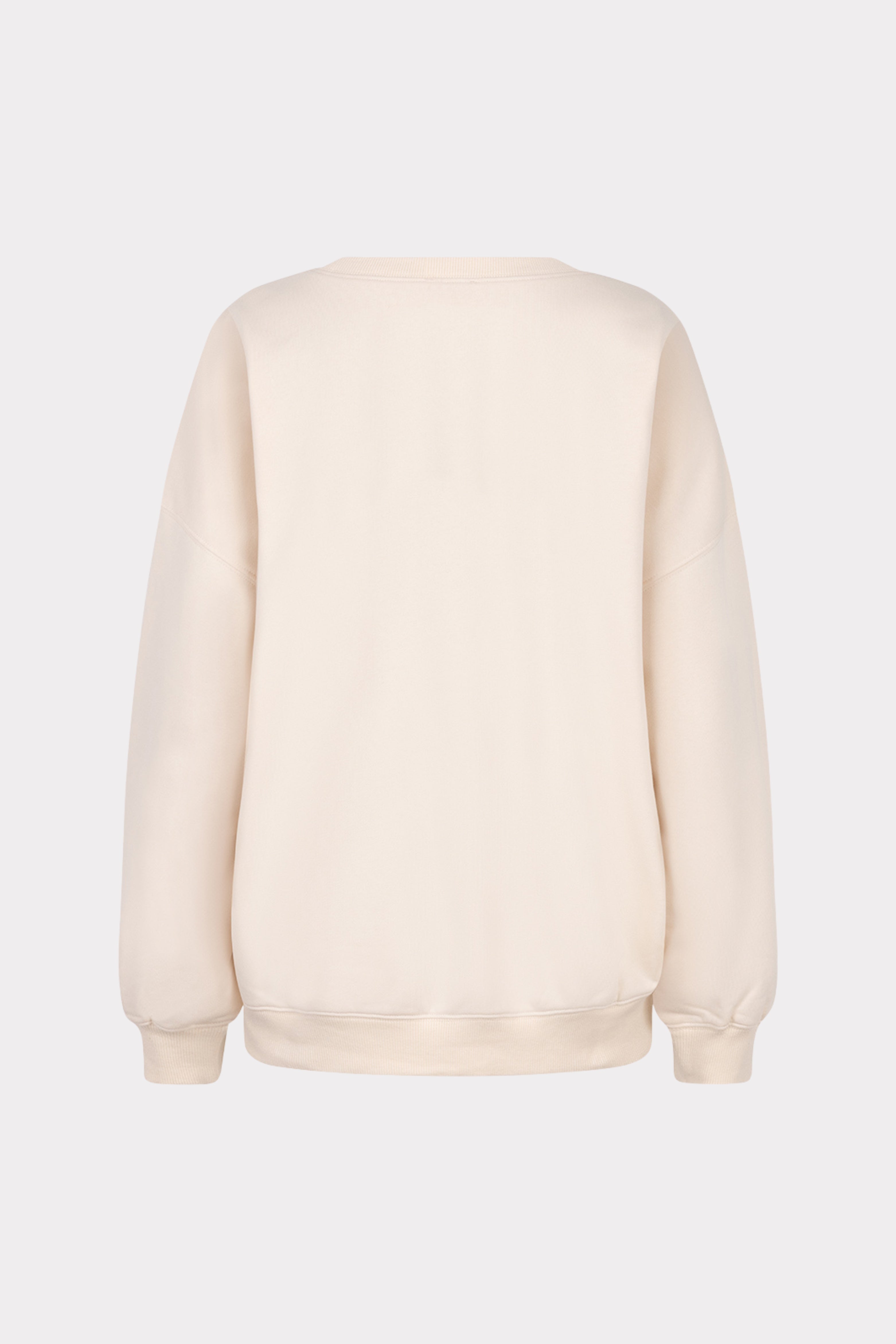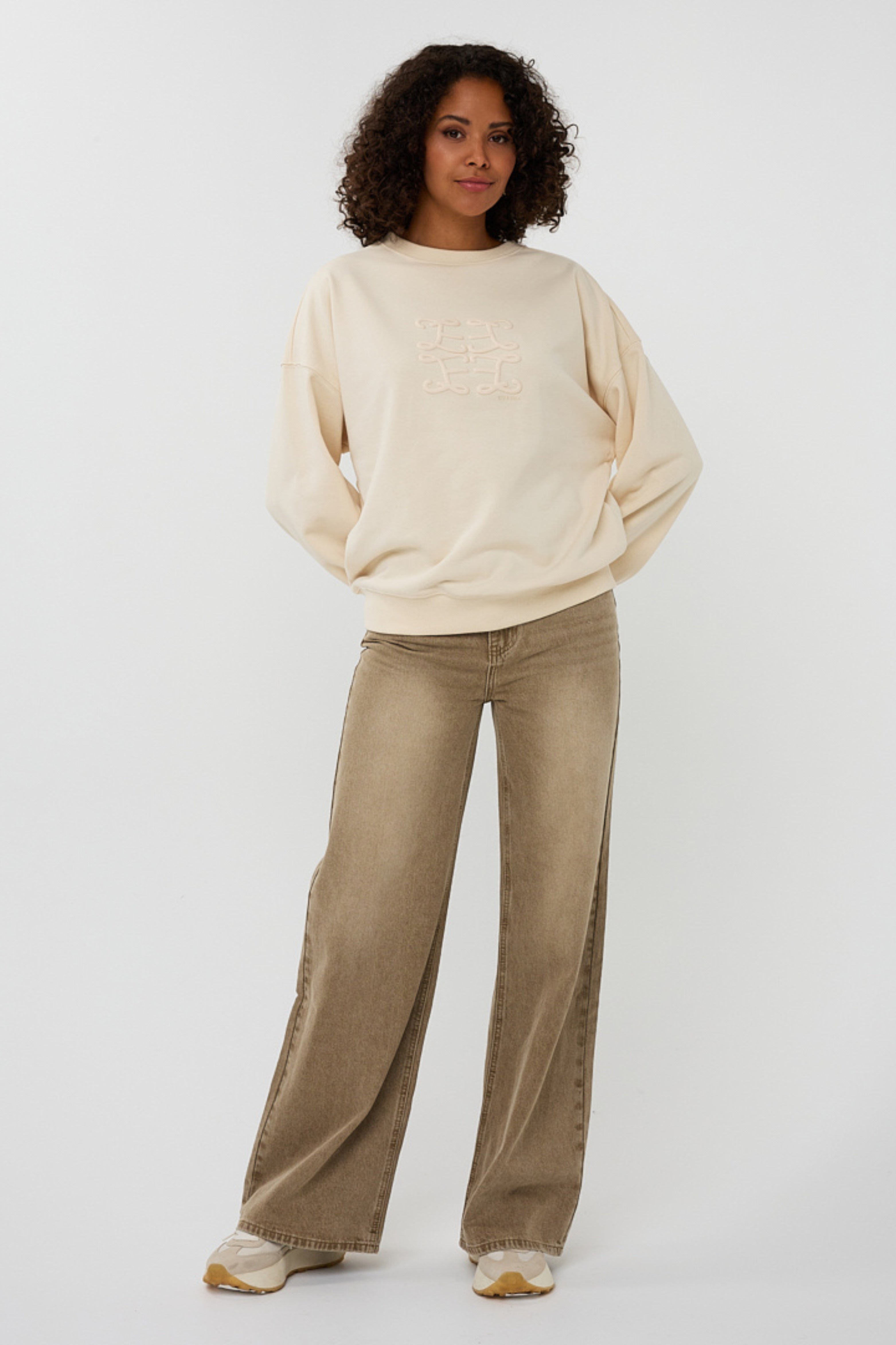 Deze sweater in ecru met embossed logo is een stijlvolle basic met luxe touch. Gemaakt van een zachte katoenmix, biedt het ultiem comfort met een verfijnde uitstraling. De perfecte mix van minimal chic en nonchalante elegantie.
