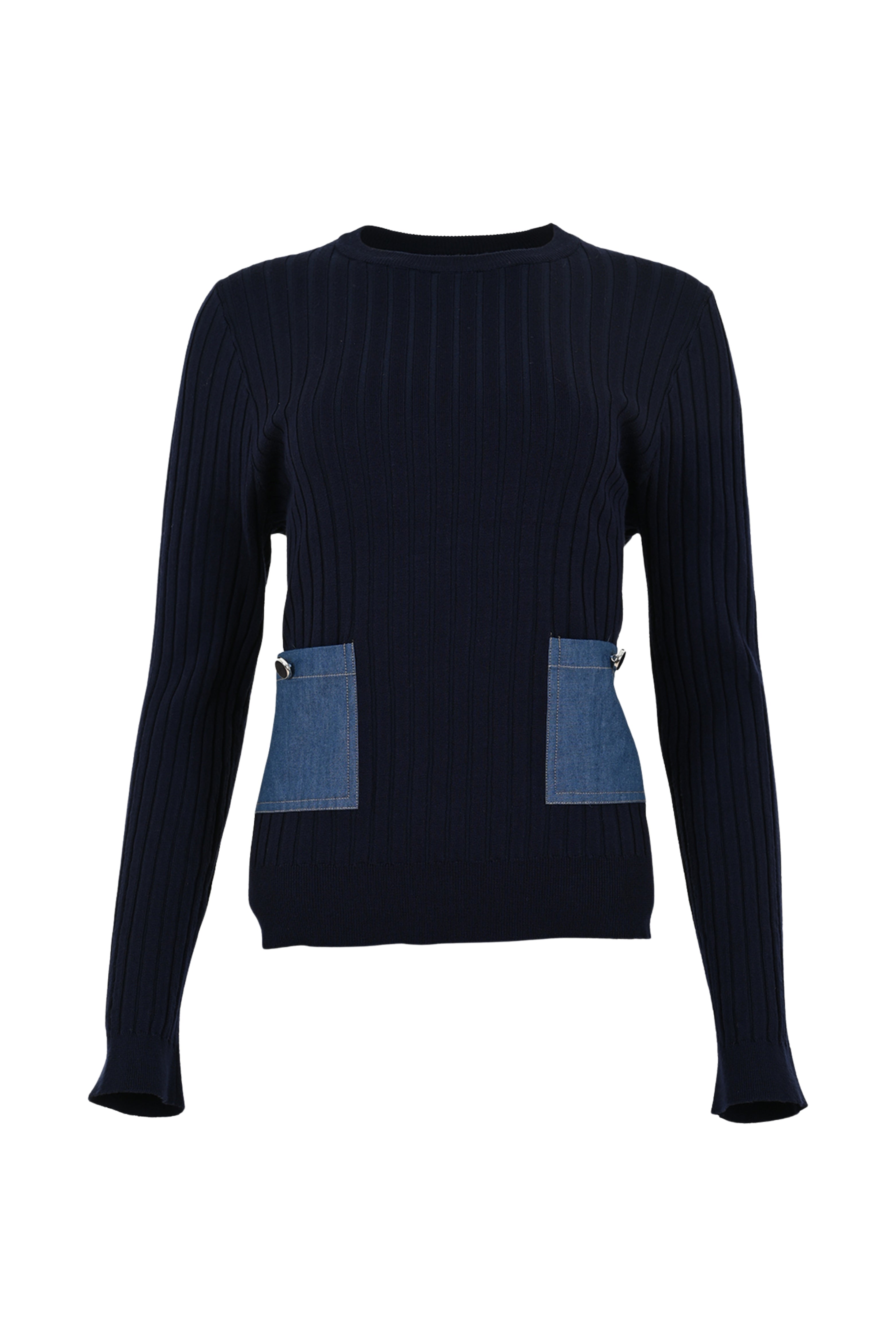 Sweater Pess Navy van Maicazz is een moderne trui in ribstructuur met denim zakdetails. De combinatie van zachte stretchstof en casual accenten maakt dit item veelzijdig en perfect voor een eigentijdse look.