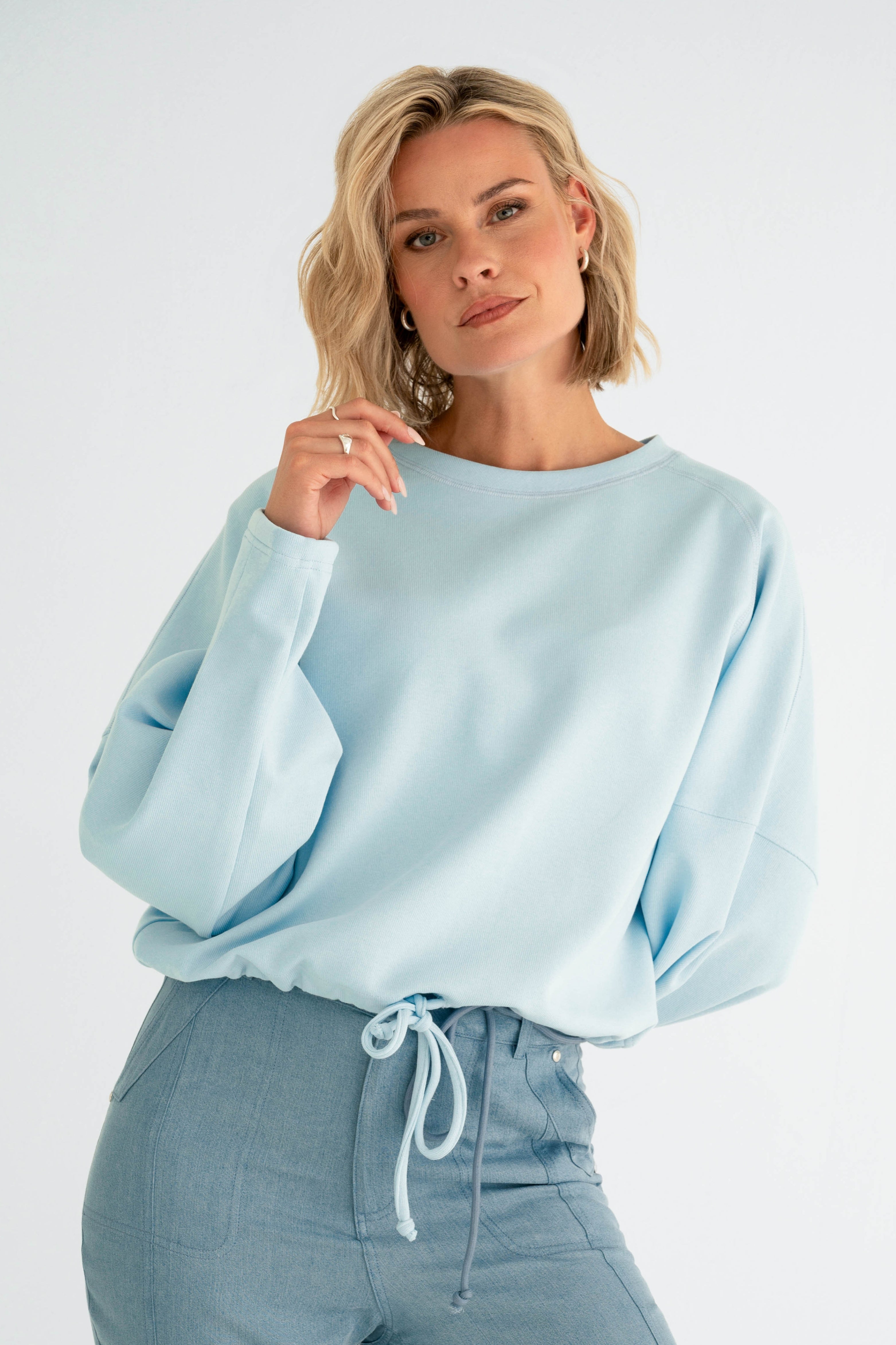 De Sweater Selma Light Blue van Maicazz is een relaxte sweater met ronde hals. Zachte sweatkwaliteit en aantrekkoord in de zoom geven een nonchalante, vrouwelijke look. Perfect voor casual dagen of home office.