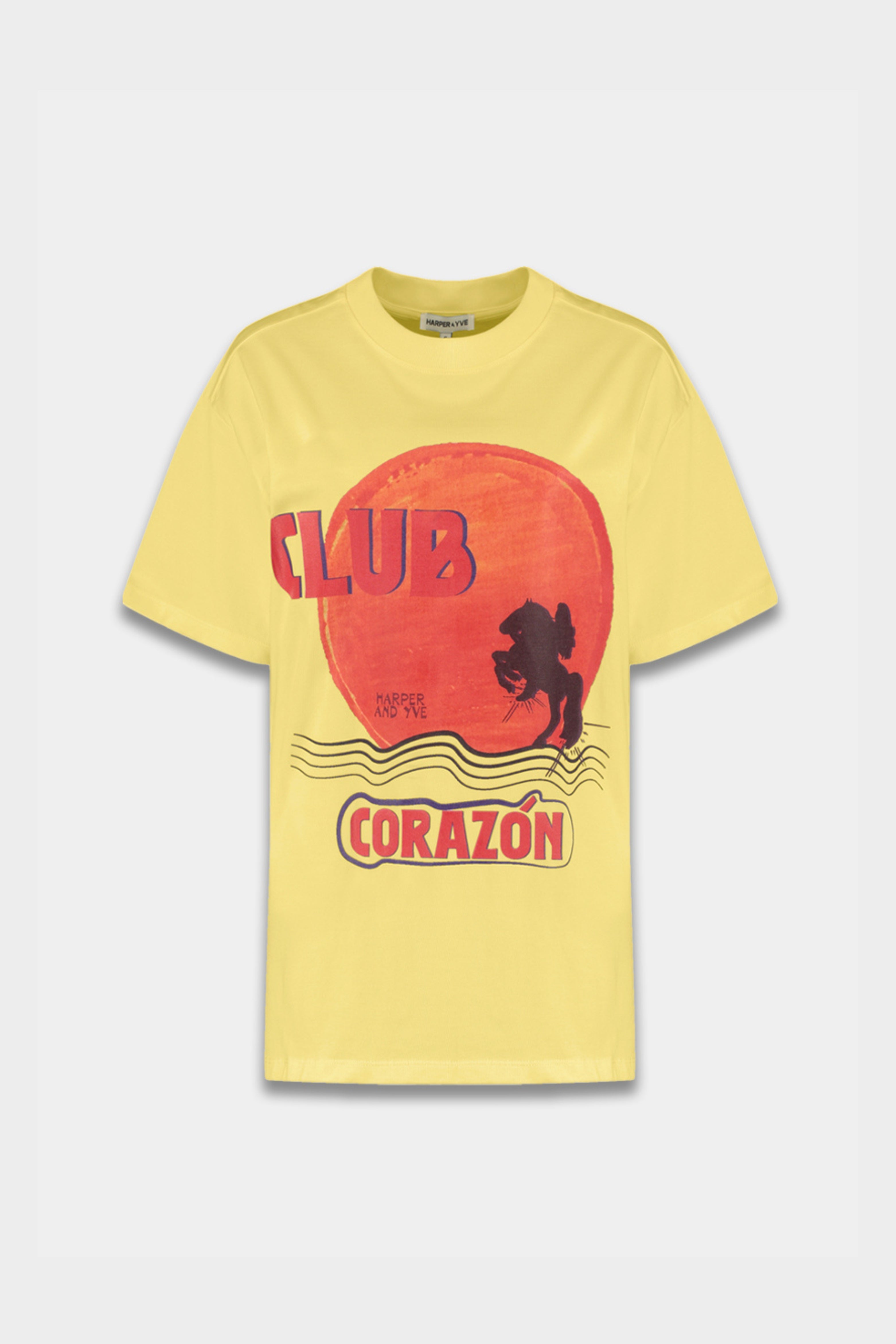 Het T-Shirt Clubcorazon Light Yellow van Harper & Yve is een vrolijk basic shirt met een opvallende “Club Corazon” print en zomers gele kleuraccenten. Comfortabel en perfect voor een casual, trendy look.