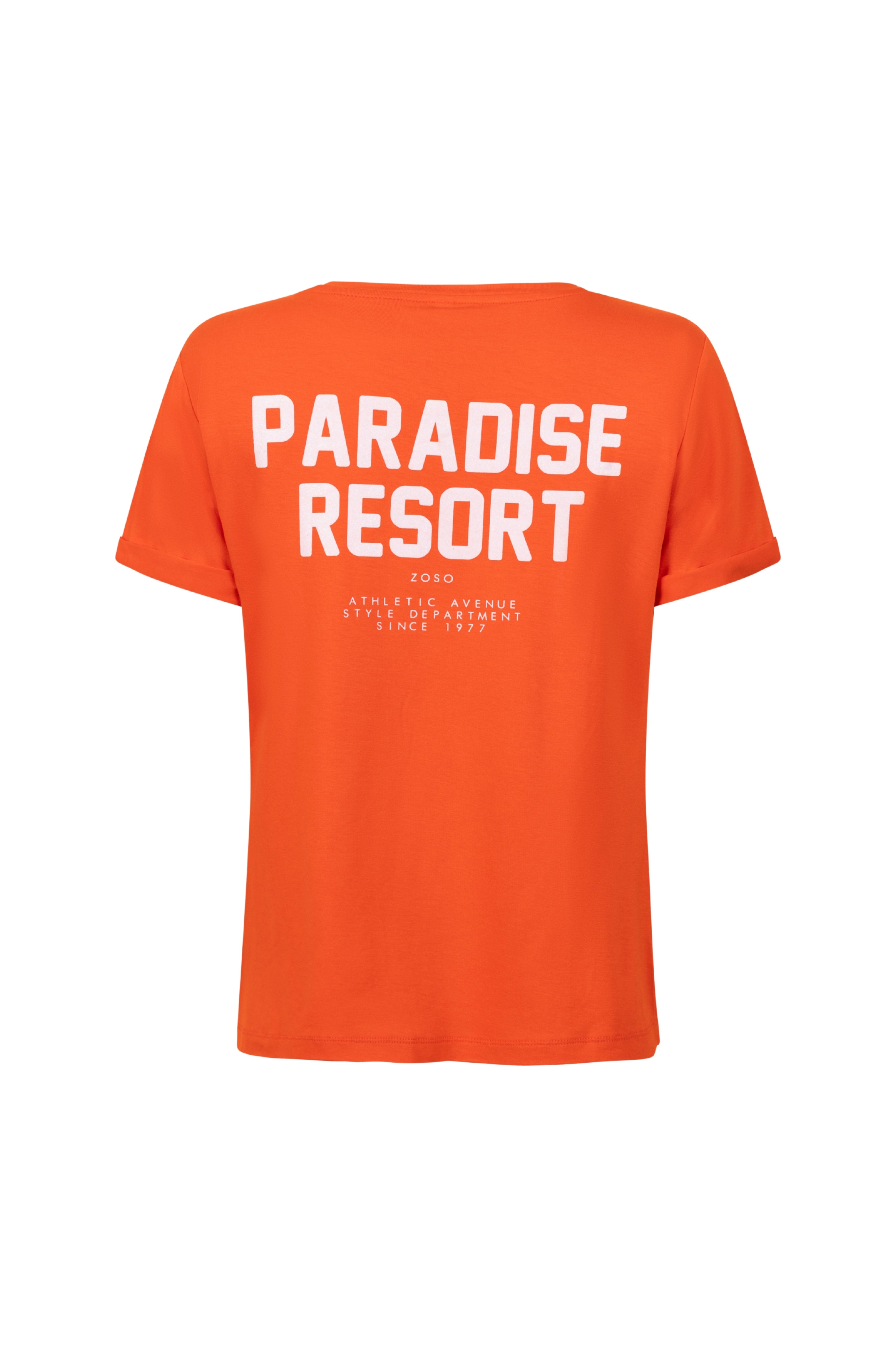 Met het T-shirt Ellen Orange van ZOSO voeg je een energieke en sportieve touch toe aan je look. De opvallende oranje kleur maakt dit shirt tot een echte eyecatcher, terwijl de zachte katoenmix zorgt voor een comfortabele fit.
