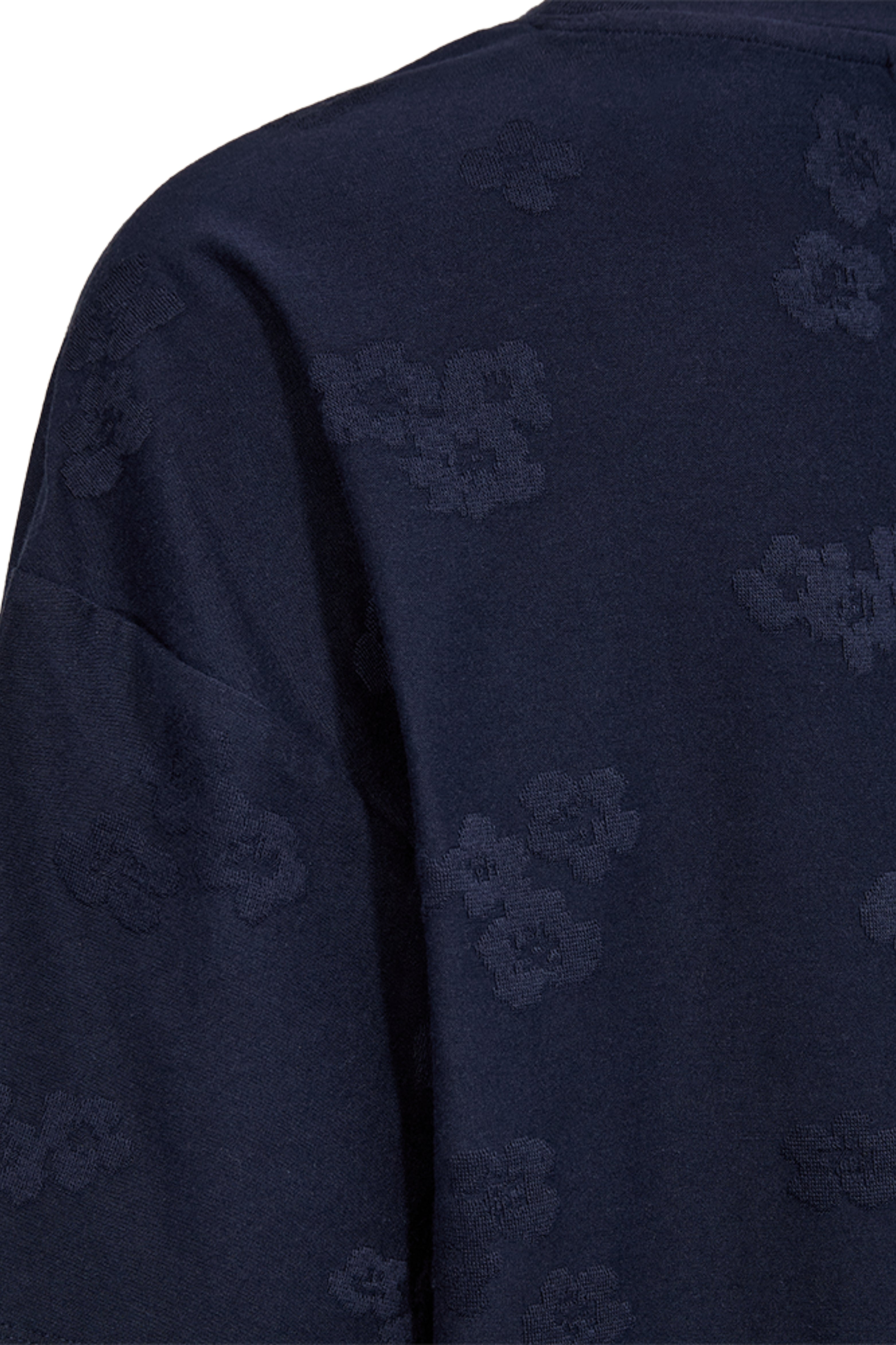 De T-shirt Fqziprea Navy Blazer van Freequent is een tijdloze top met ronde hals. De subtiele bloemenstructuur in de stof geeft een luxe uitstraling en extra diepte. Perfect voor elke dag en makkelijk te combineren.