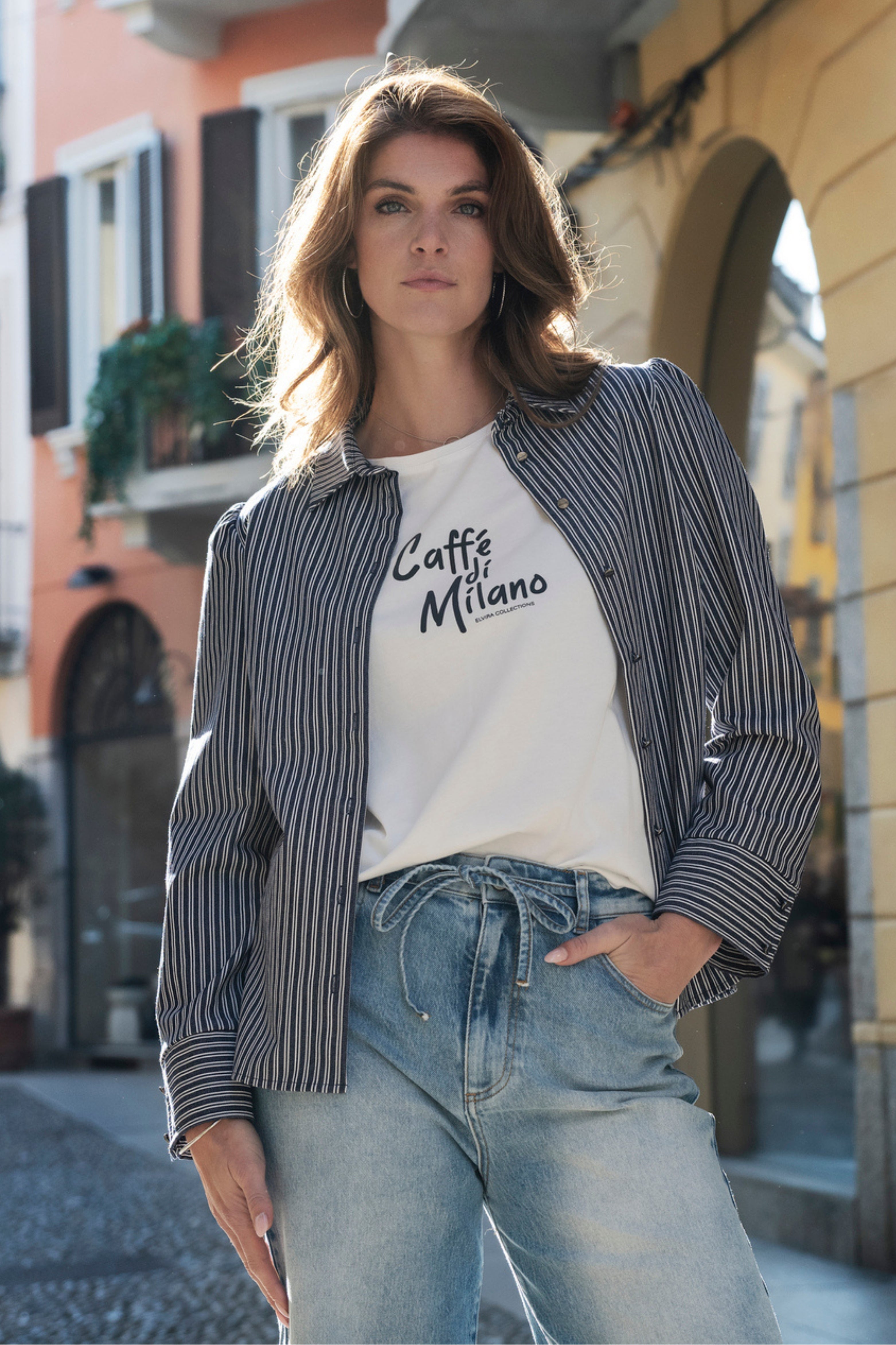 Het T-shirt Mila Offwhite van Elvira is een fris en tijdloos shirt met een stijlvolle print. Dankzij de fijne stof en relaxte pasvorm is het perfect voor een casual, modieuze look.