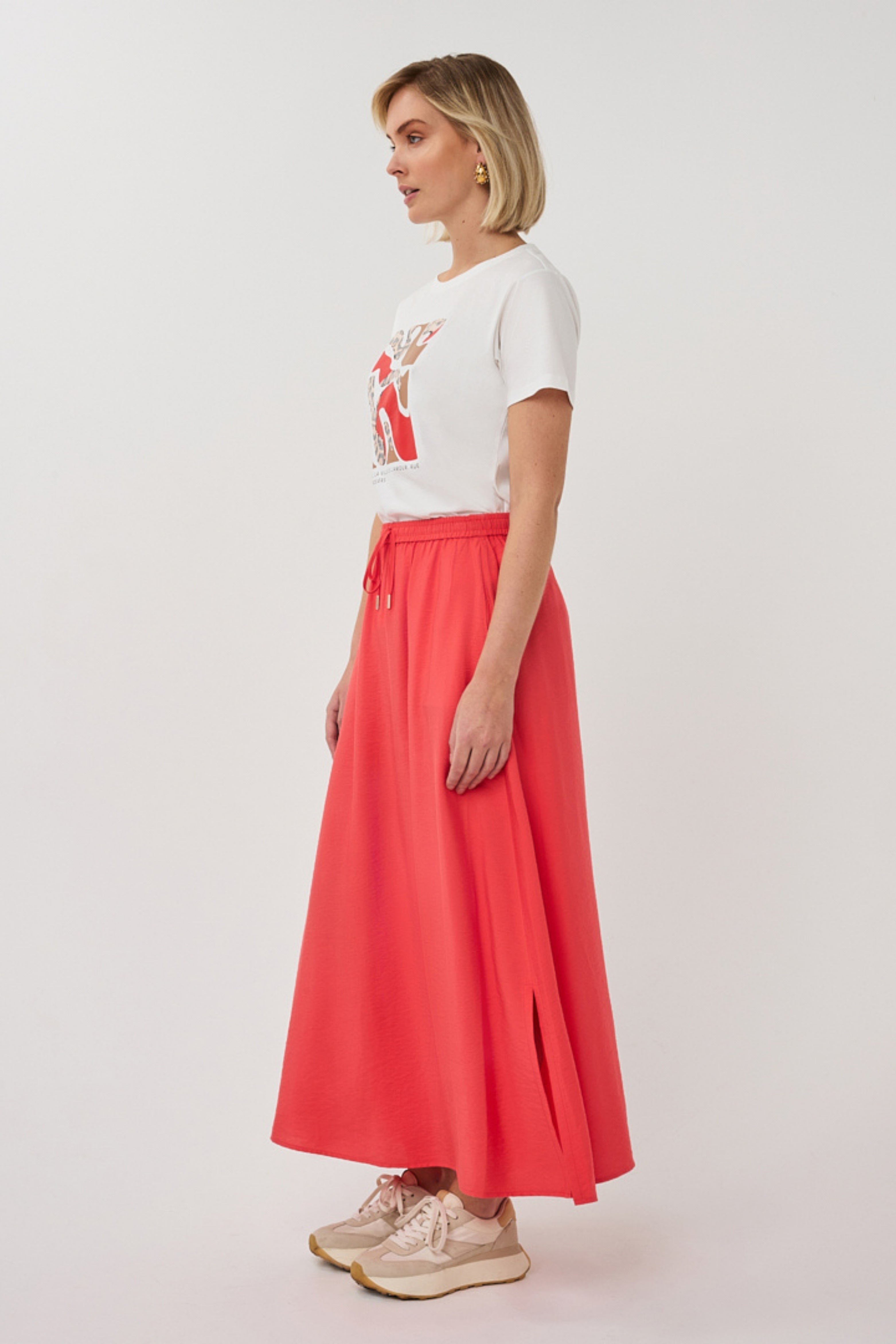 De T-shirt Paris Offwhite van Esqualo is een moderne top met een hoge ronde hals. Zachte, ademende katoen met een opvallende grafische frontprint met subtiele animal-accenten. Perfect voor casual dagen of een citytrip.