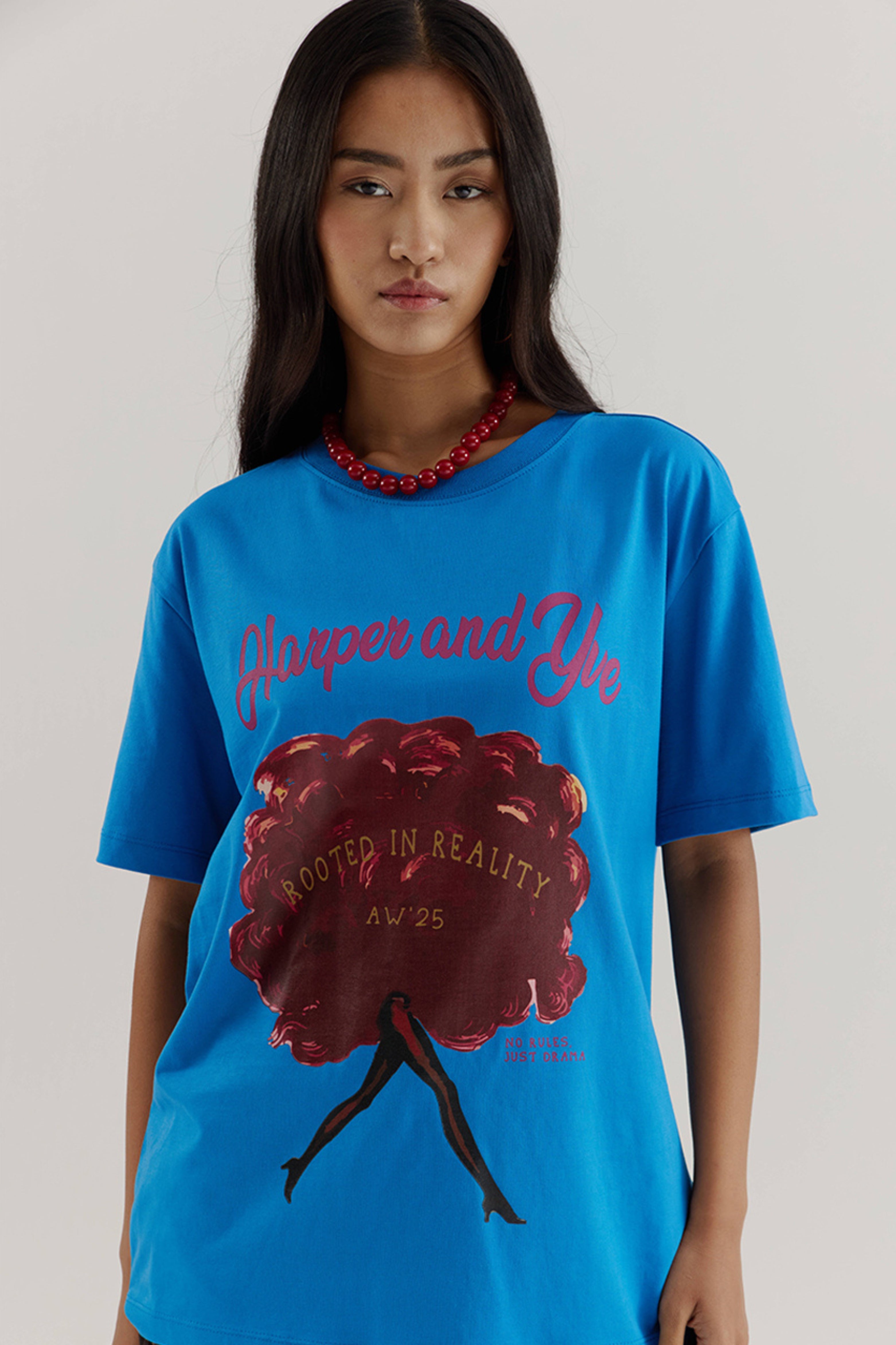 T-shirt Rootedinreality Vintage Blue van Harper & Yve is een stoere basic met creatieve frontprint. De diepe blauwe kleur en relaxed fit maken dit shirt comfortabel én trendy. Draag casual met jeans of speels onder een blazer.