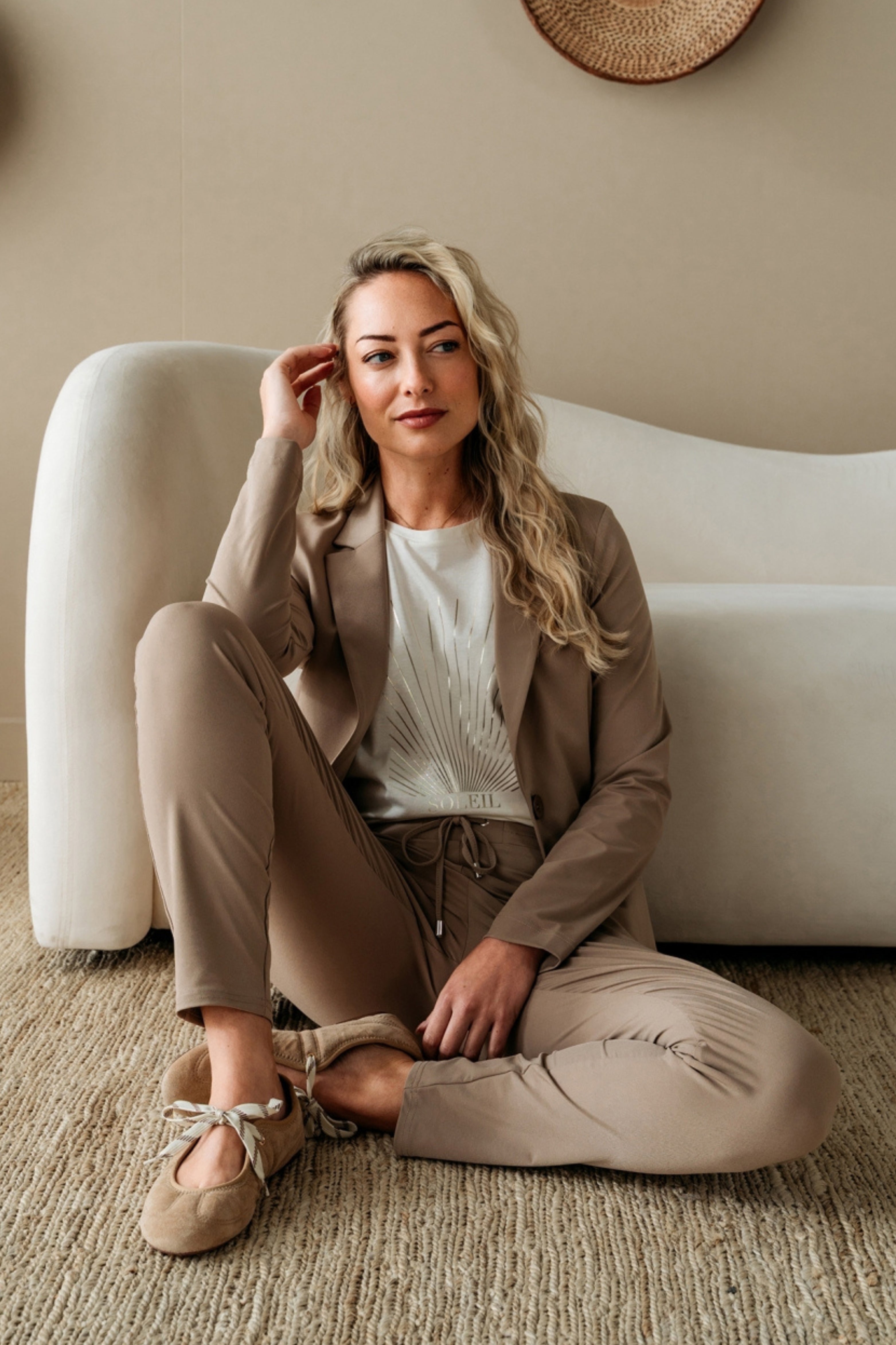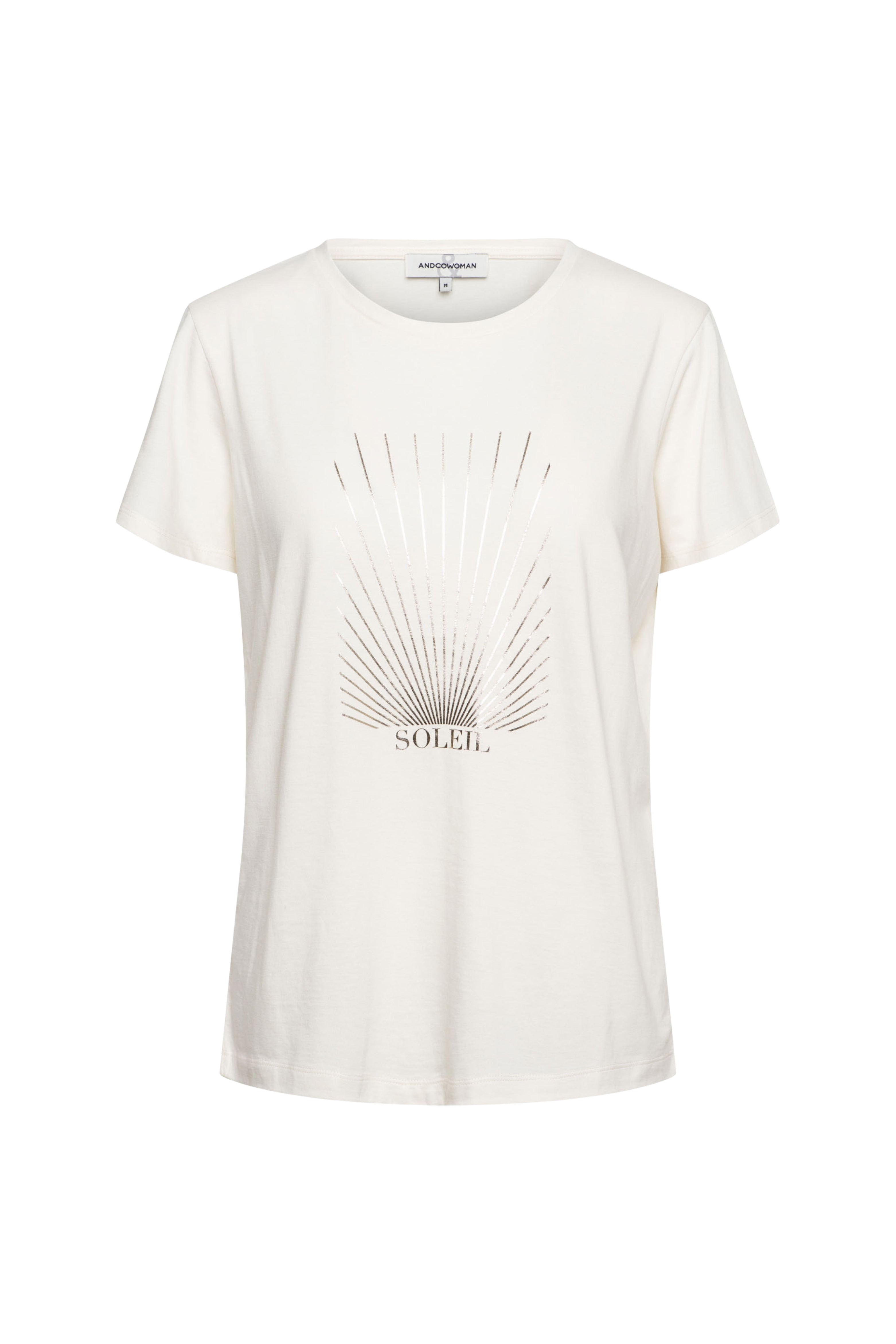 T-shirt Soleil Beige van &Co Woman is een stijlvol shirt met ronde hals en korte mouwen. De subtiele zonprint met “Soleil” op de voorzijde geeft een speelse en zomerse uitstraling.
