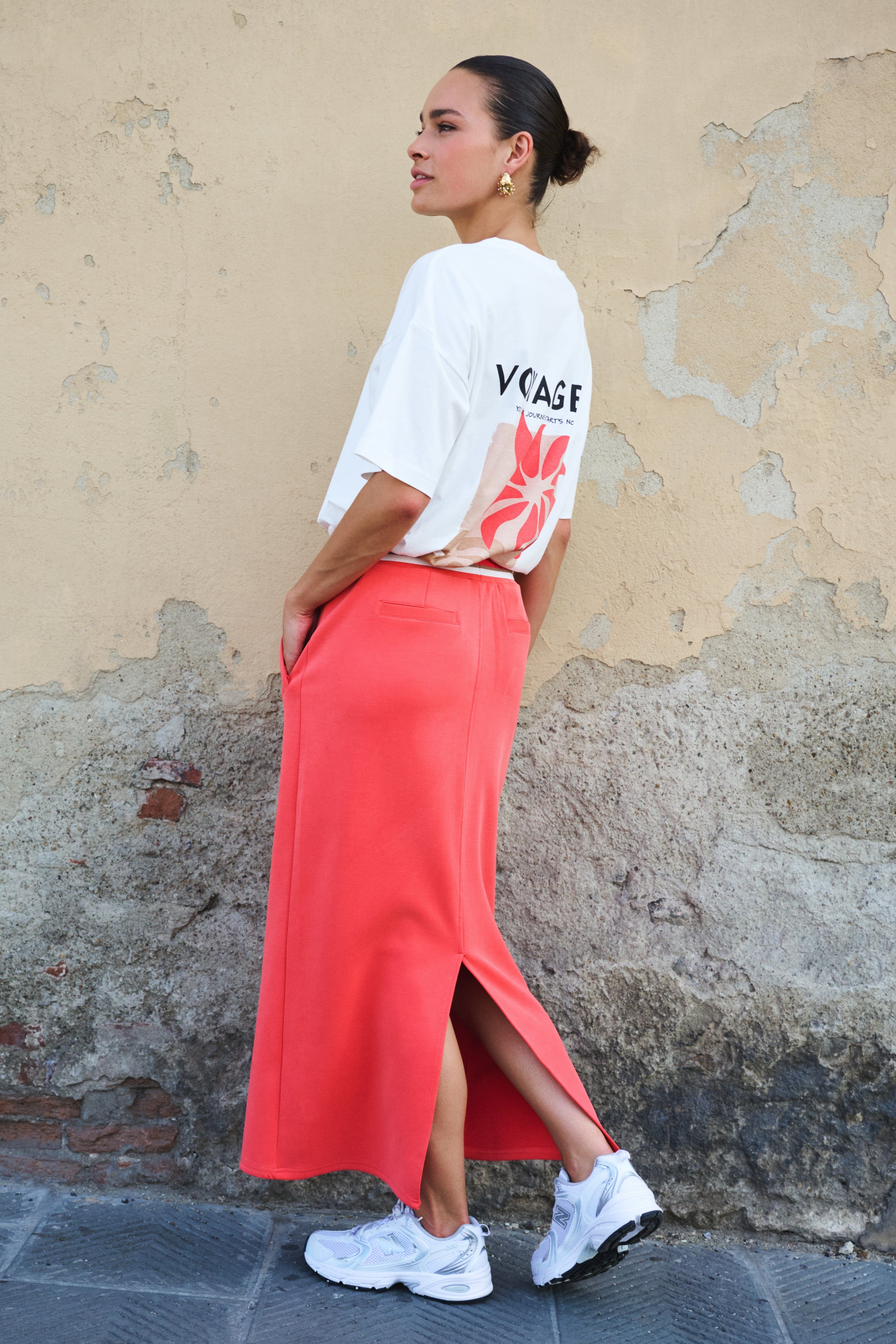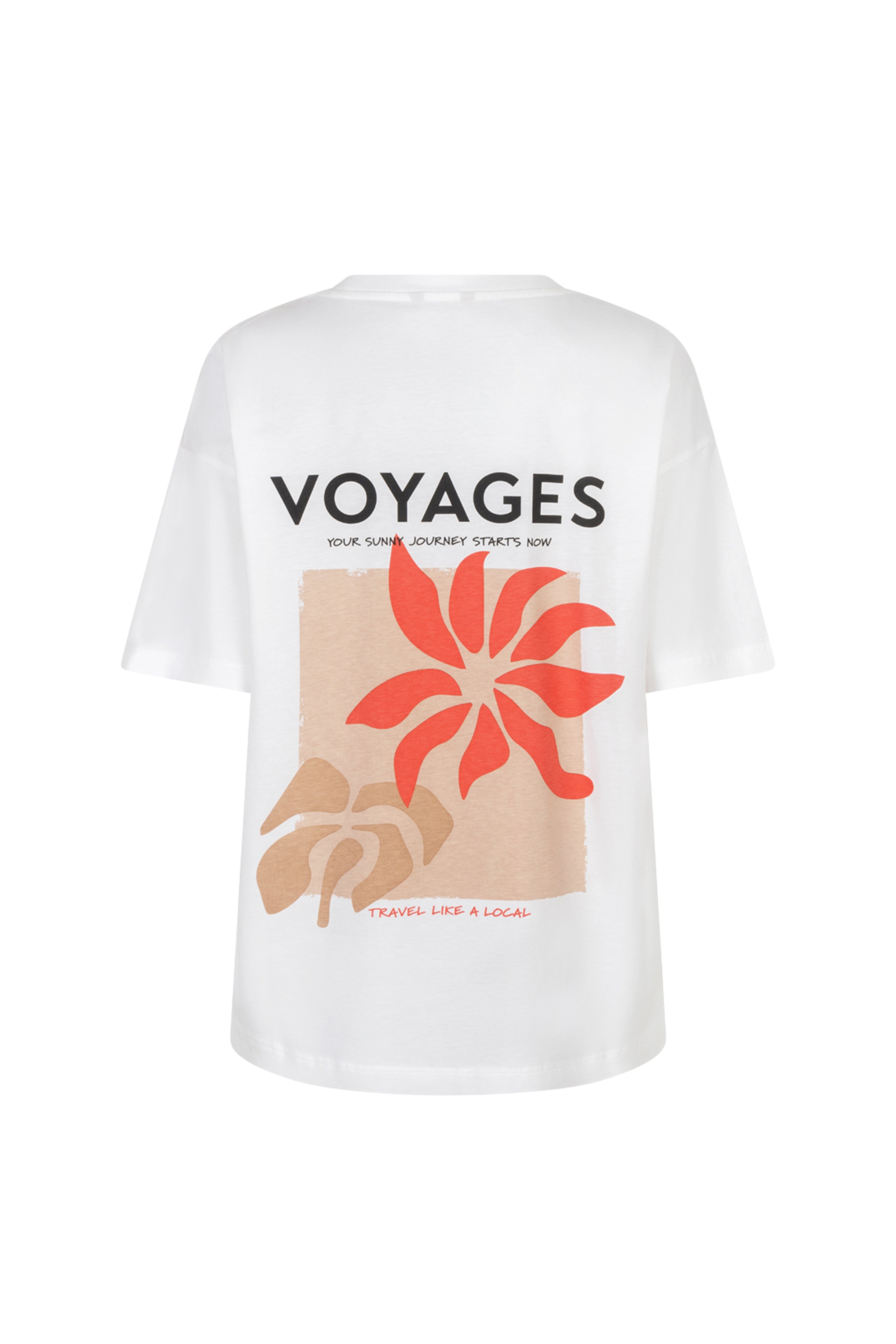 De T-shirt Voyages Offwhite Red van Esqualo is een casual top met hoge ronde hals. Gemaakt van zachte, ademende katoen met subtiele “Club Voyages” borstprint. Perfect voor elke dag en je citytrip.