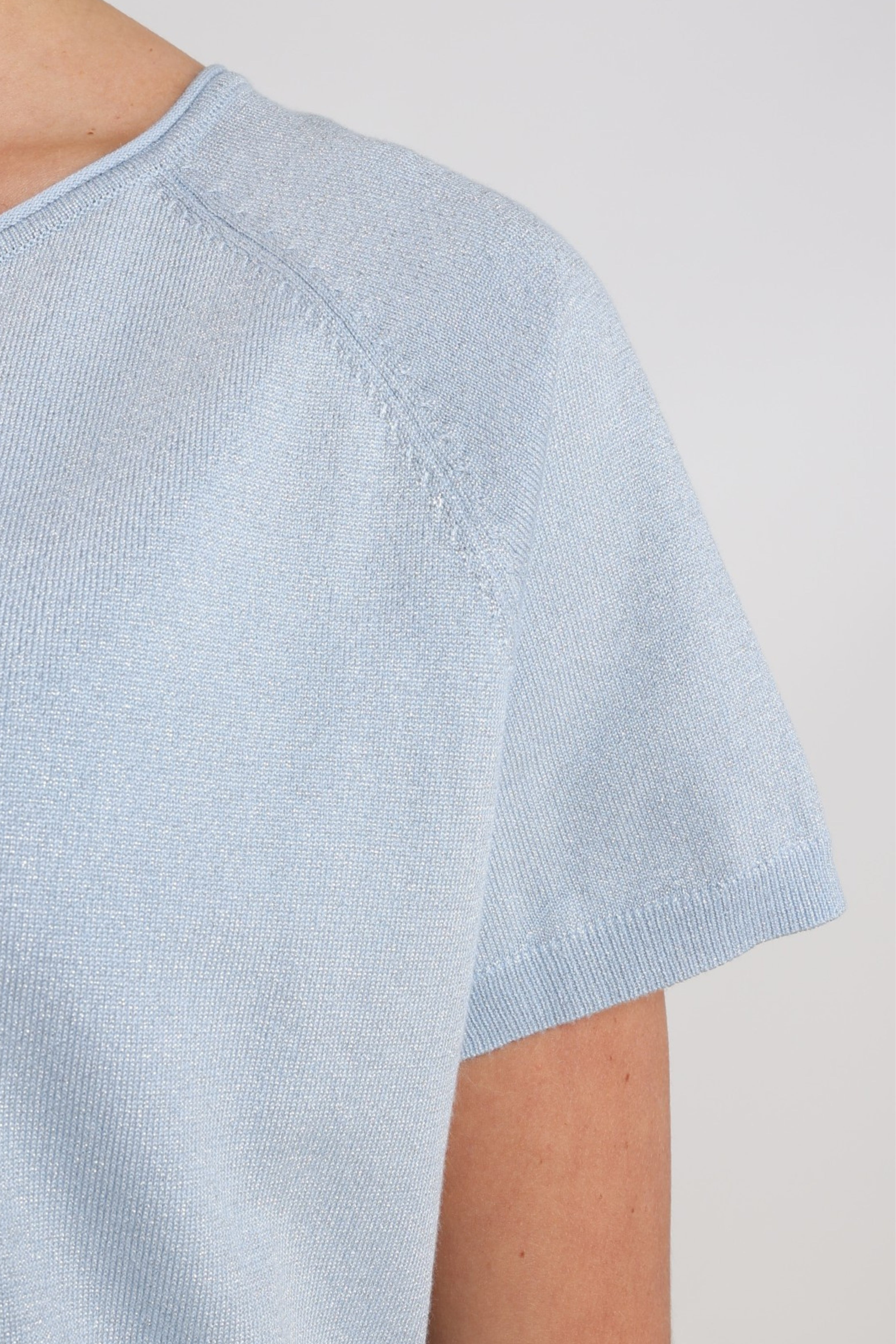 De Top Anita Lurex Cloudy van Nukus is een elegante knit top met een zachte subtiele glans. De licht losvallende pasvorm en korte mouwen zorgen voor een verfijnde look die moeiteloos past bij zowel casual als geklede outfits.