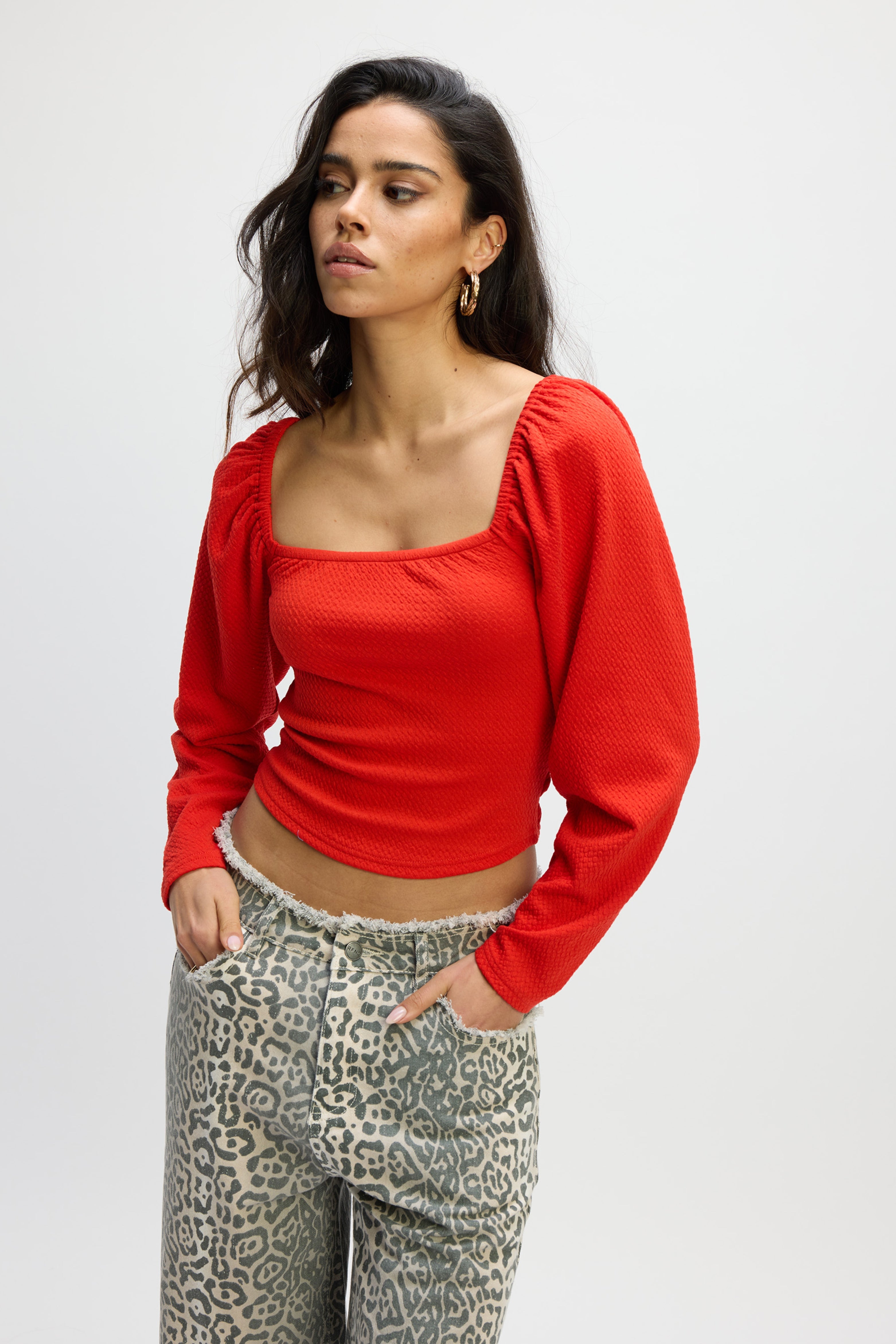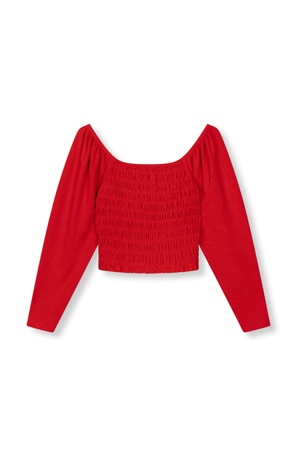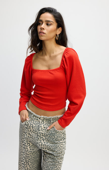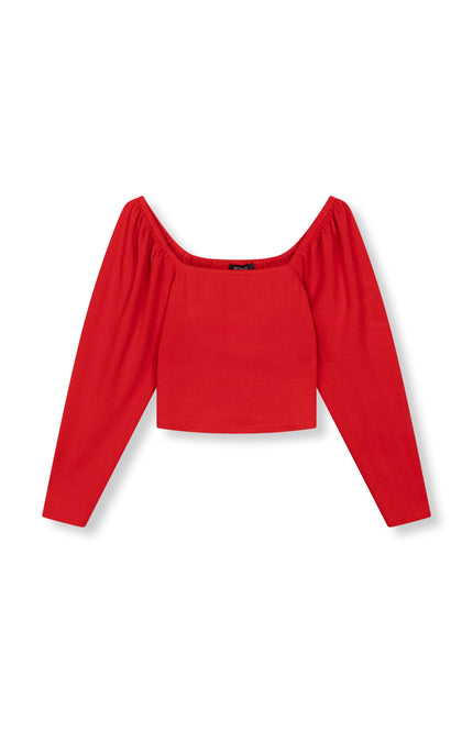 De Cherry Puffed Shoulder Top Red van Refined Department is een elegante en vrouwelijke top met een romantische en vintage uitstraling. De dieprode kleur en de subtiele barokachtige print geven deze top een chique en speelse touch.