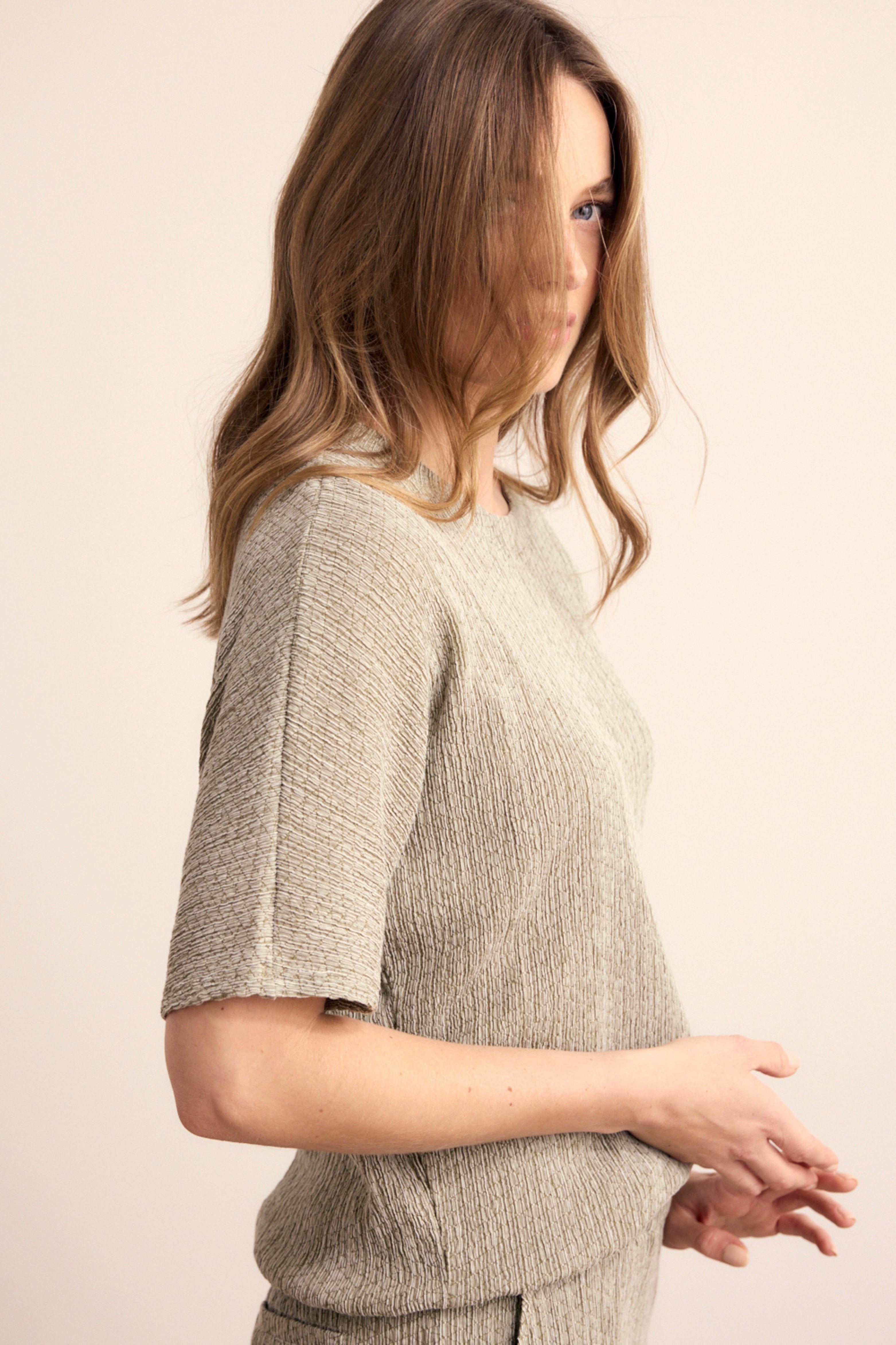 Top Crinkled Button Detail Aloe Melange E02-19-401 2