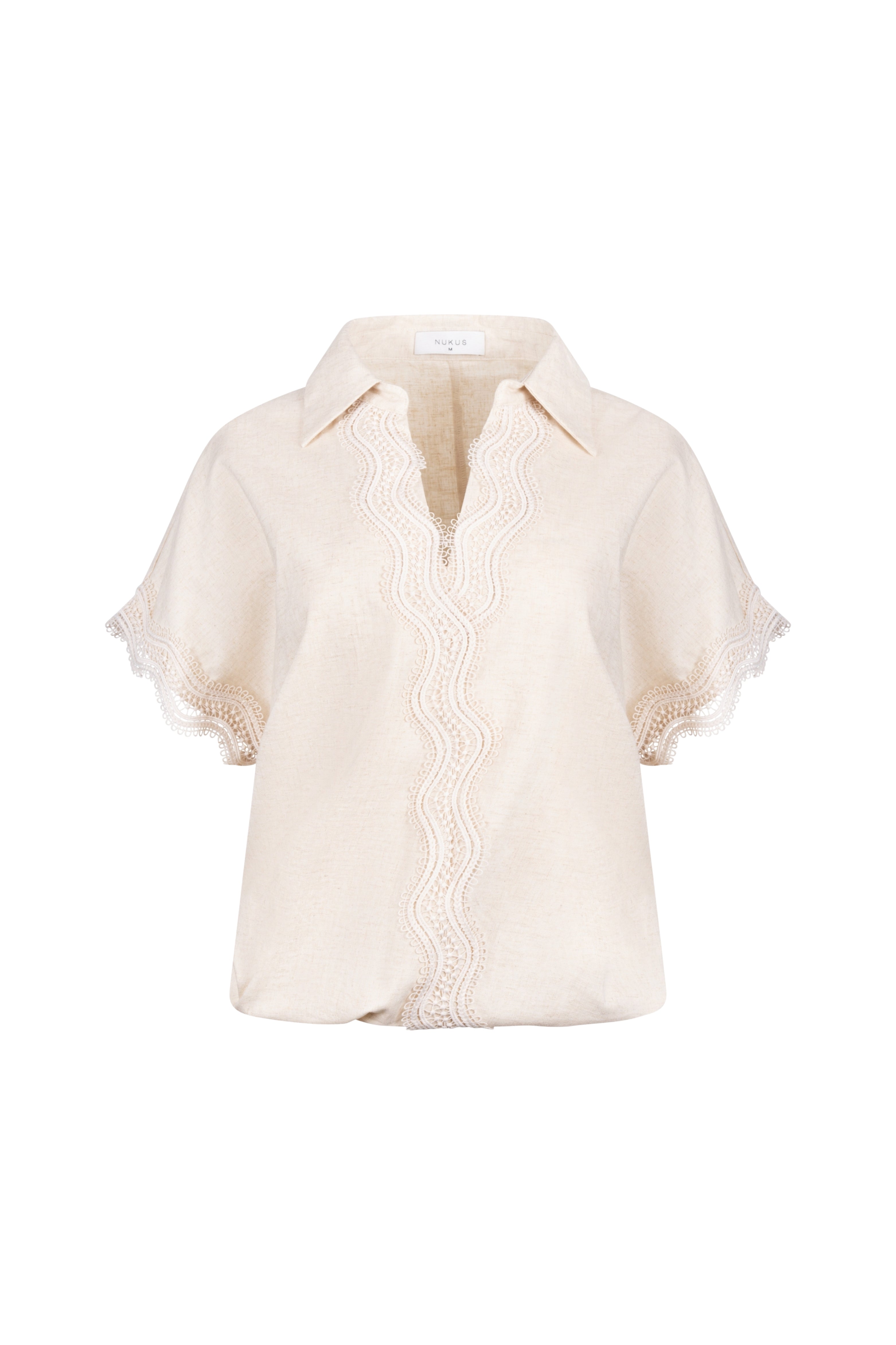 De Top Daniel Sand van Nukus is een elegante top met een verfijnde zomerse uitstraling. De subtiele borduursels langs de V-hals en mouwen geven dit item een vrouwelijke touch, terwijl de losvallende pasvorm zorgt voor een comfortabele fit.