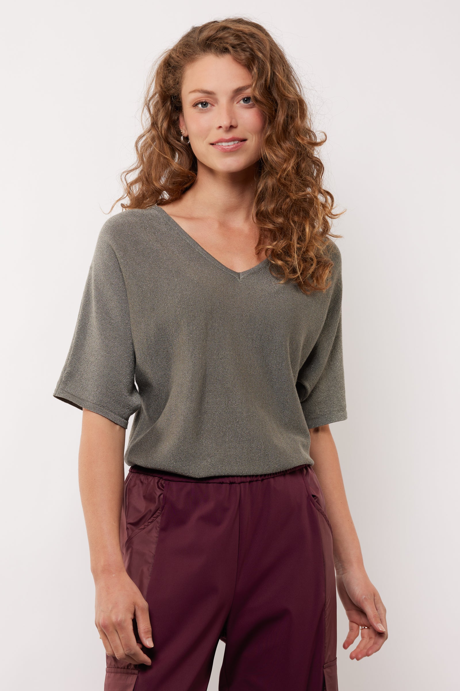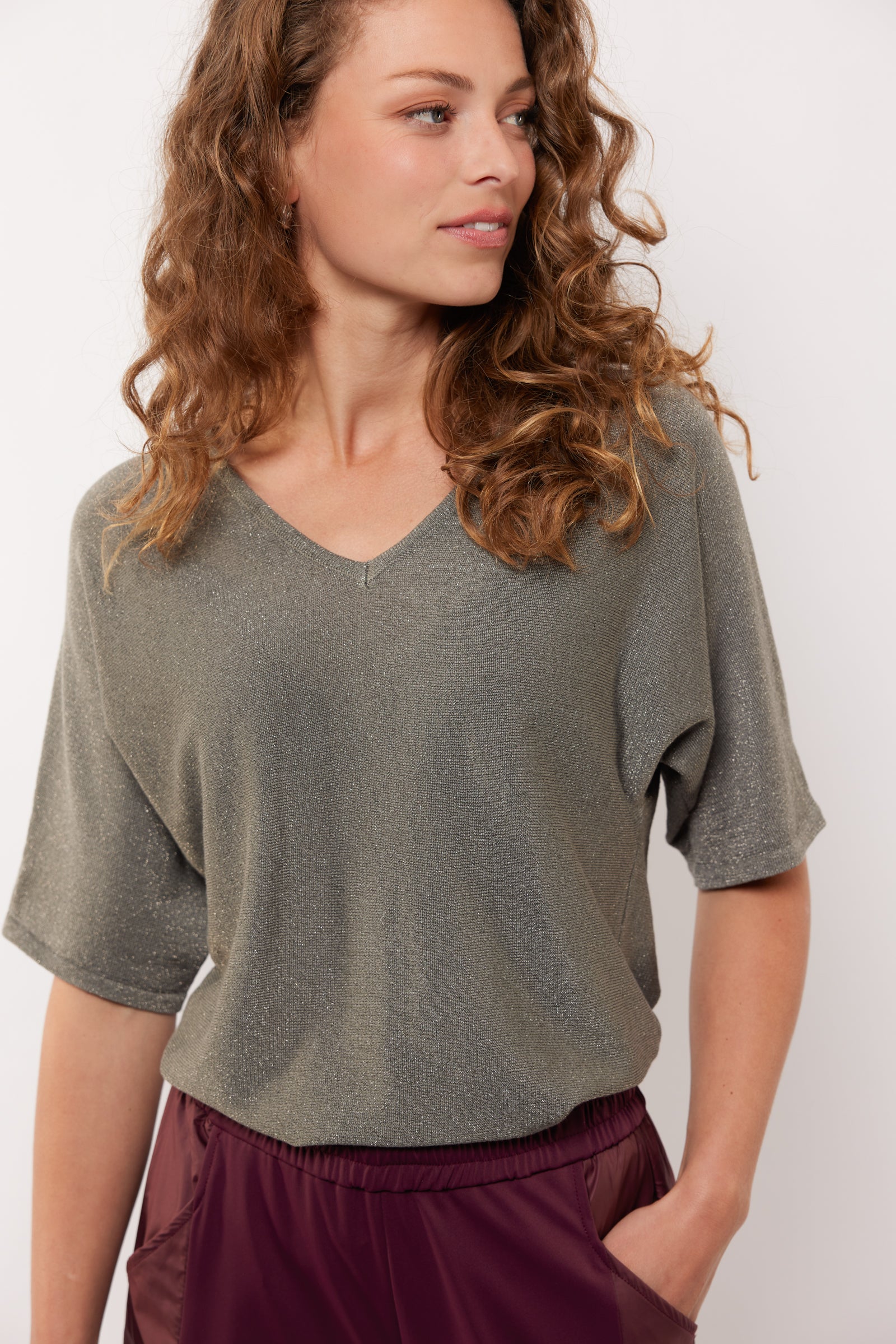 Top Edlin Knit Moon Rock van G-maxx is jouw go-to item voor een vleugje sparkle. De subtiele glans, luchtige fit en V-hals geven je outfit direct een feestelijke upgrade. Combineer ‘m stoer of chic!