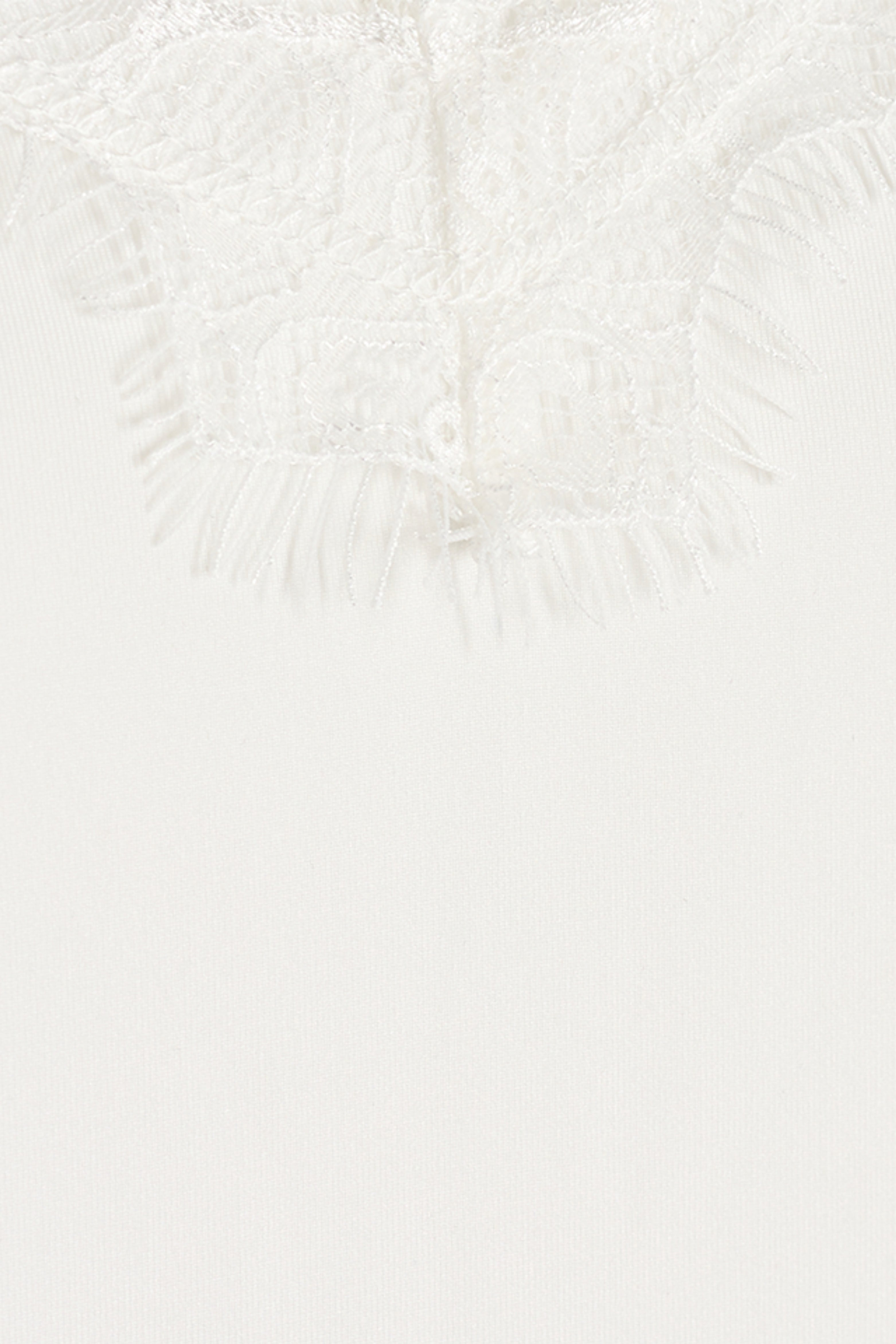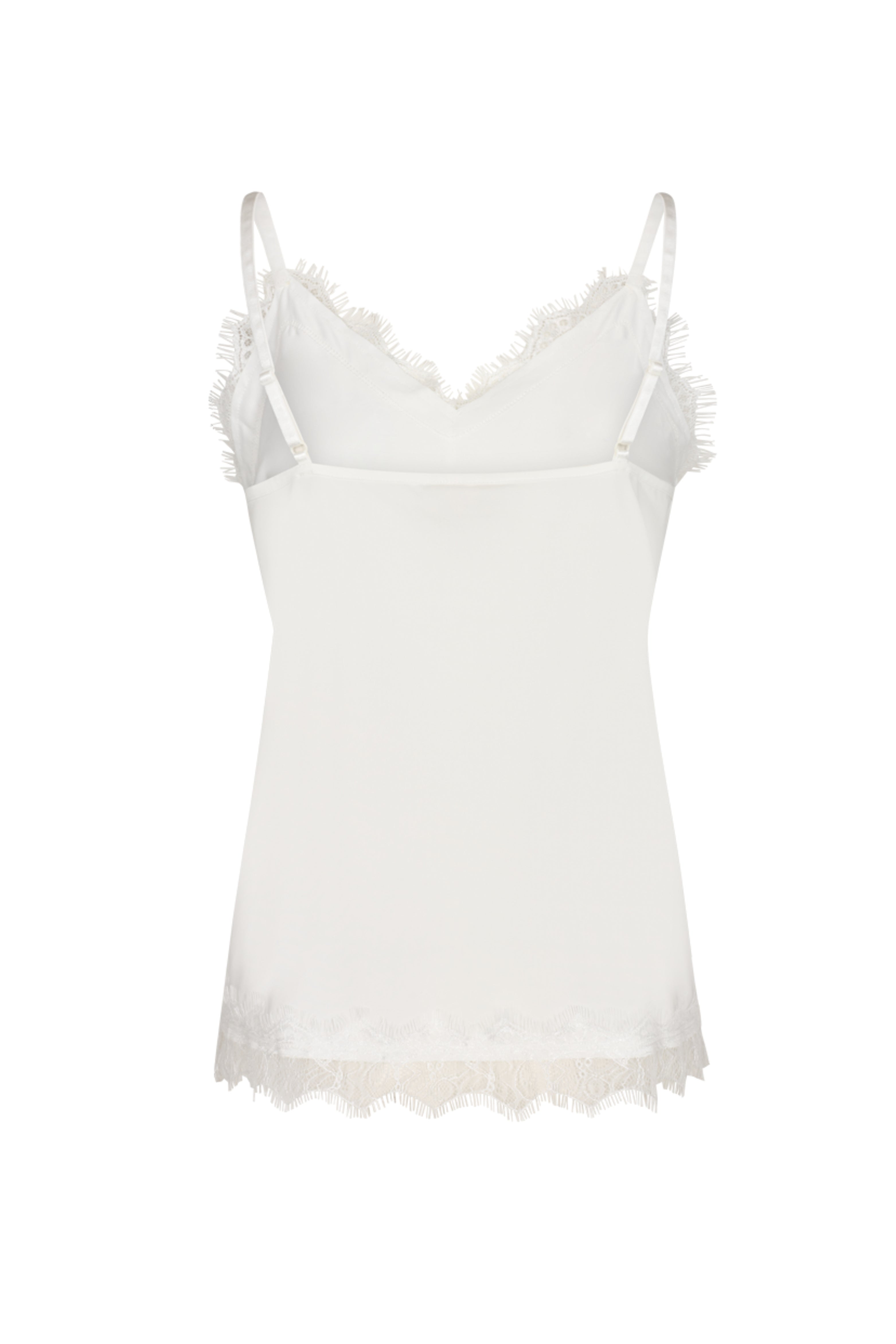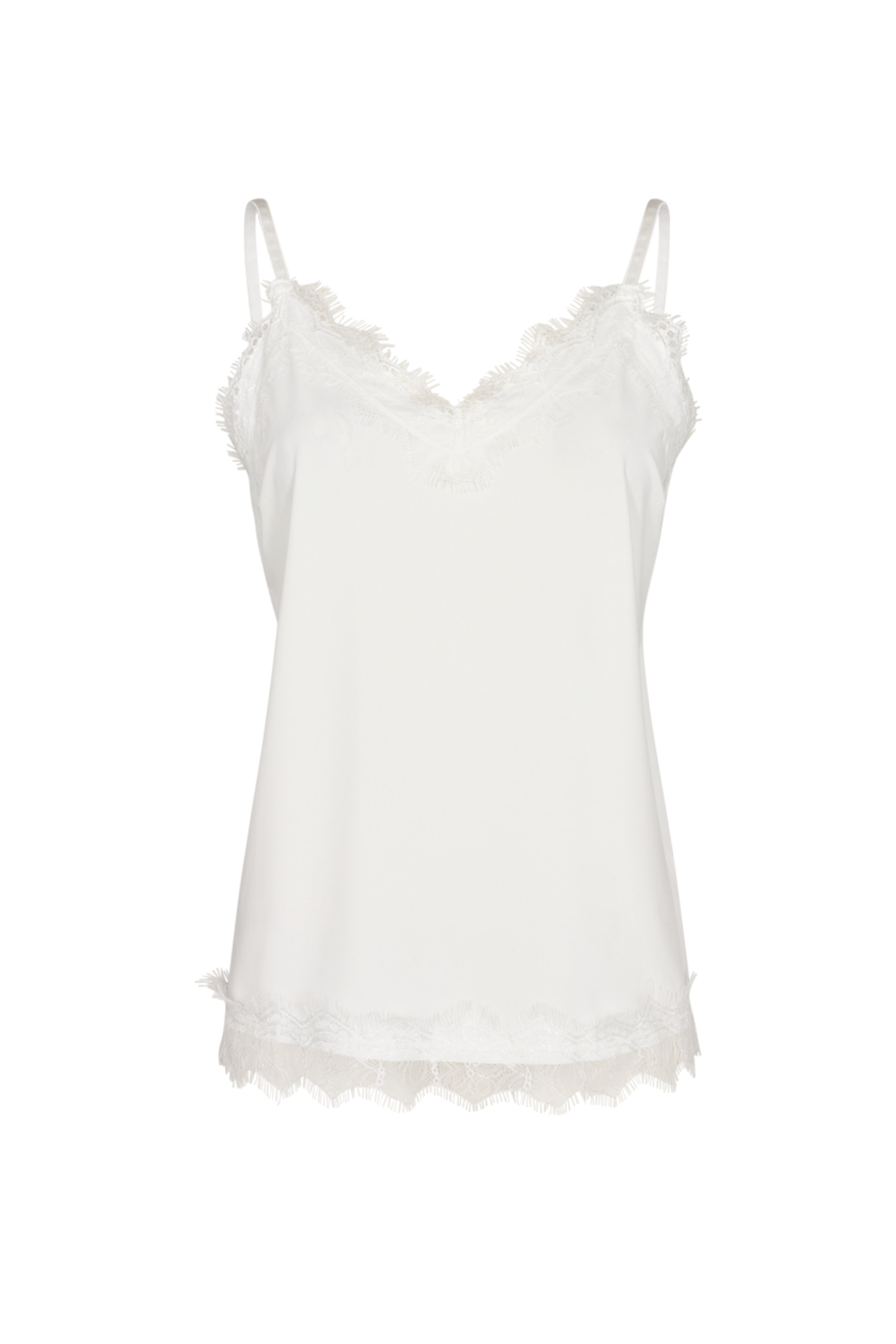 De Fqbicco top van Freequent in Offwhite is een veelzijdig item dat dankzij de kanten afwerking een subtiele romantische touch krijgt. Perfect onder een blazer, vest of los te dragen.