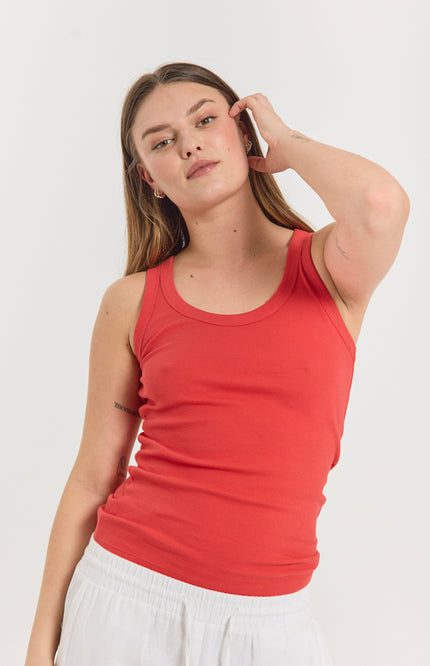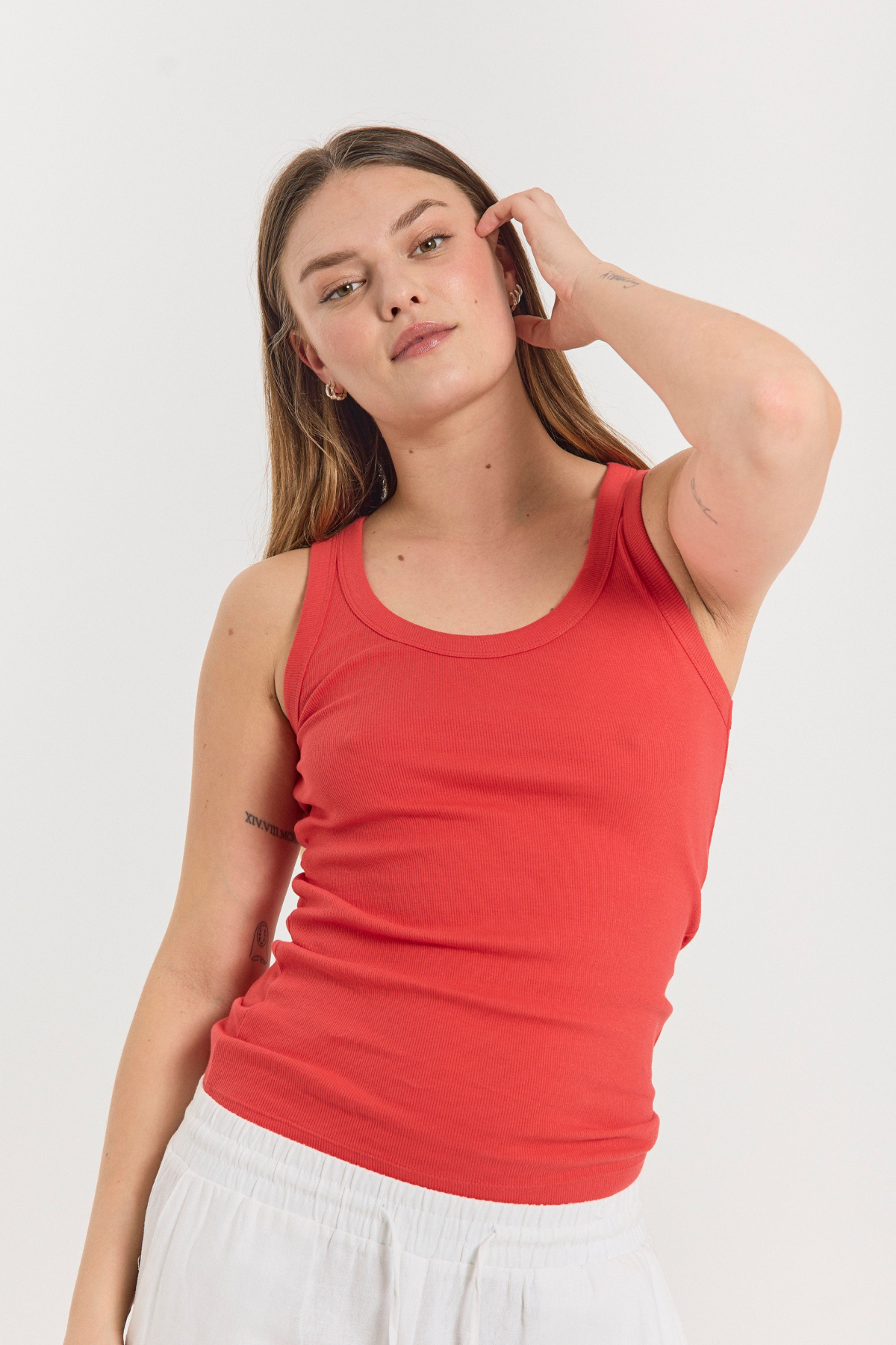 De FQHI Top in Bittersweet van Freequent is jouw nieuwe zomerse essential. De flatterende ronde hals, comfortabele ribstof en felle rode kleur maken deze mouwloze top perfect voor elke dag stijlvol, basic en makkelijk te combineren.