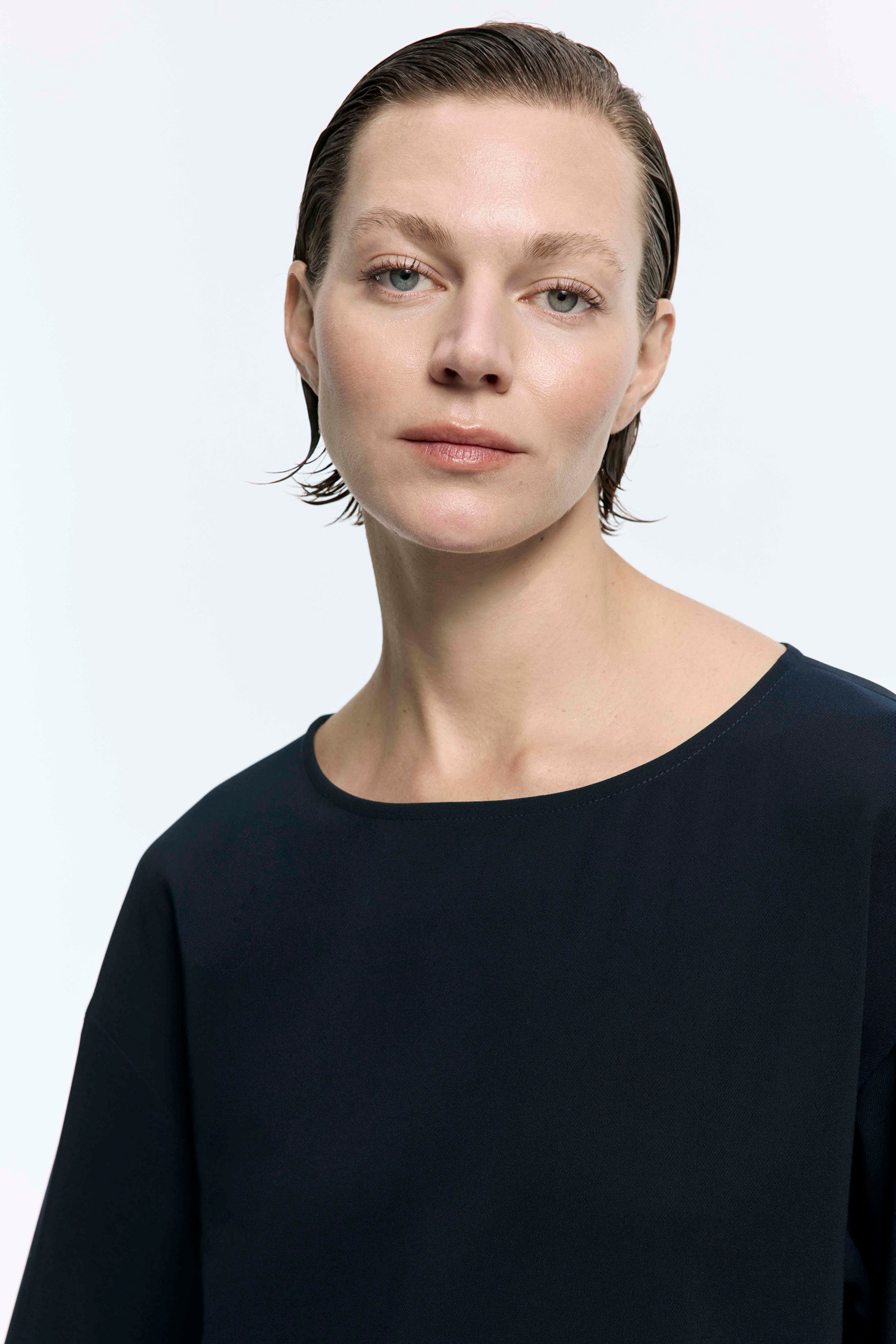 De Top Hikka Navy van Xandres is een elegante, losvallende top met ronde hals en half lange mouwen. De soepele stof en diepe navy kleur maken deze top perfect voor zowel werk als geklede looks.