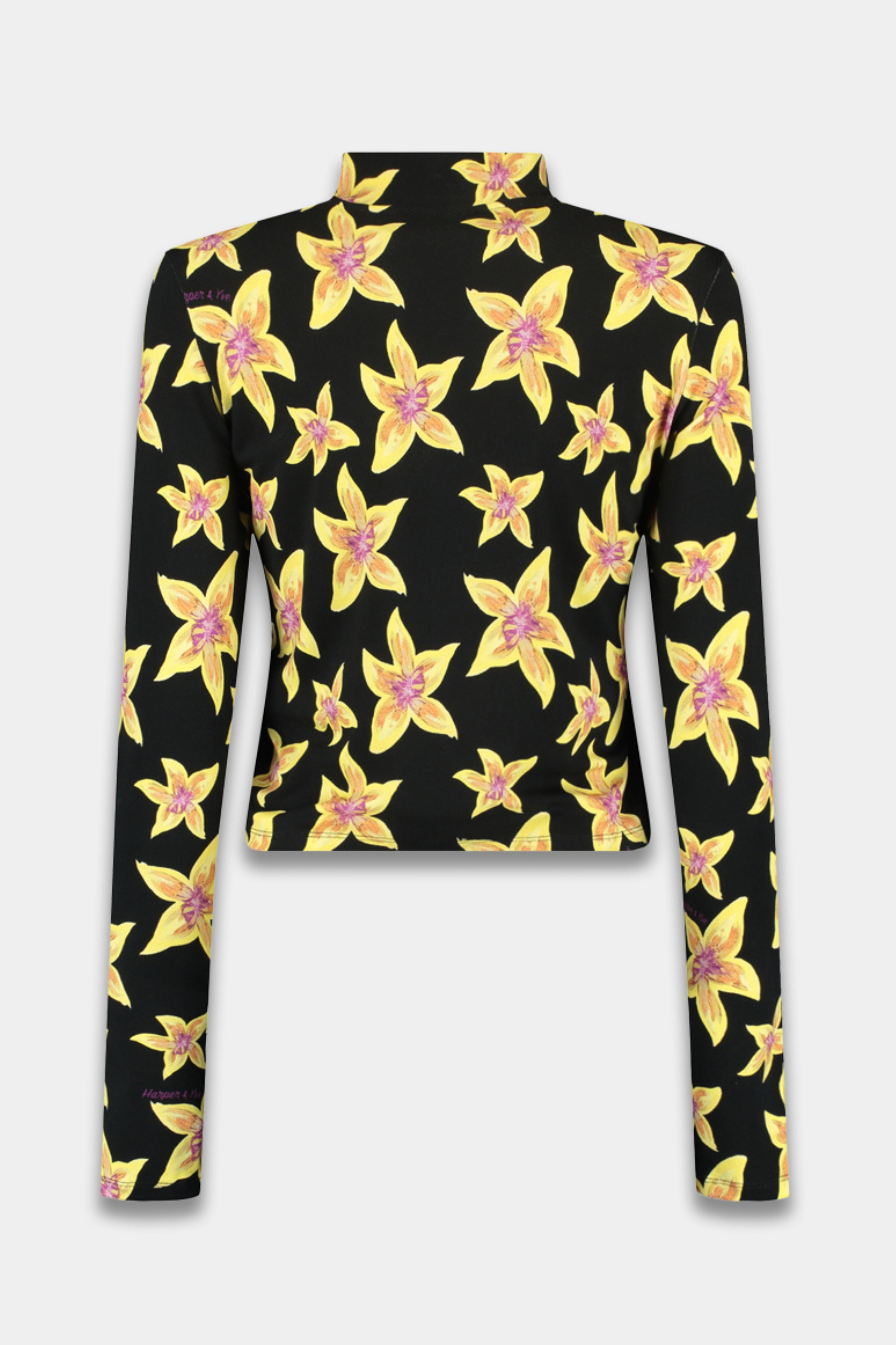 De Top Jeff Cheeky Flower Yellow van Harper & Yve is een trendy en opvallende cropped top met een speelse bloemenprint. De levendige gele bloemen op een donkere achtergrond maken deze top tot een echte eyecatcher.