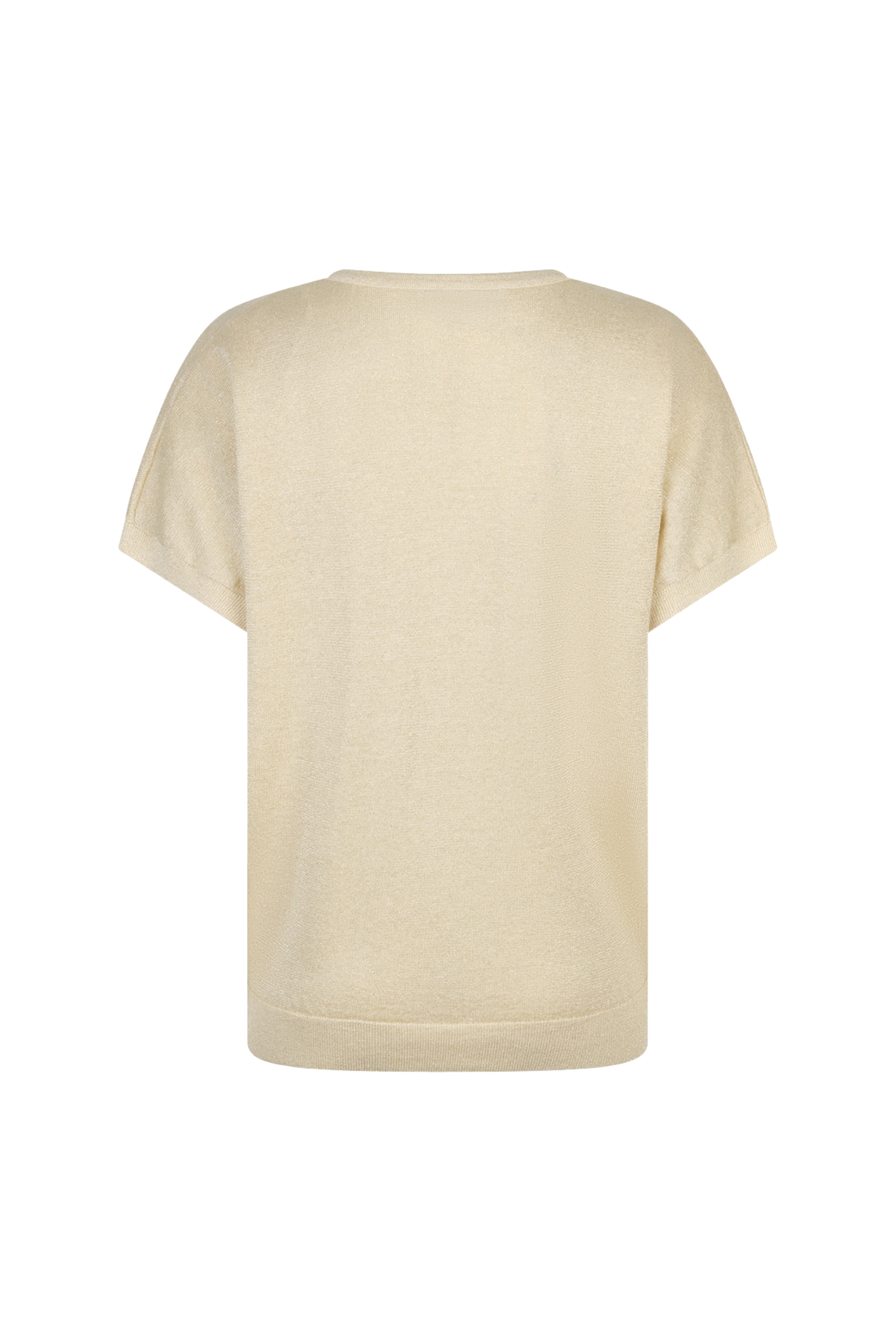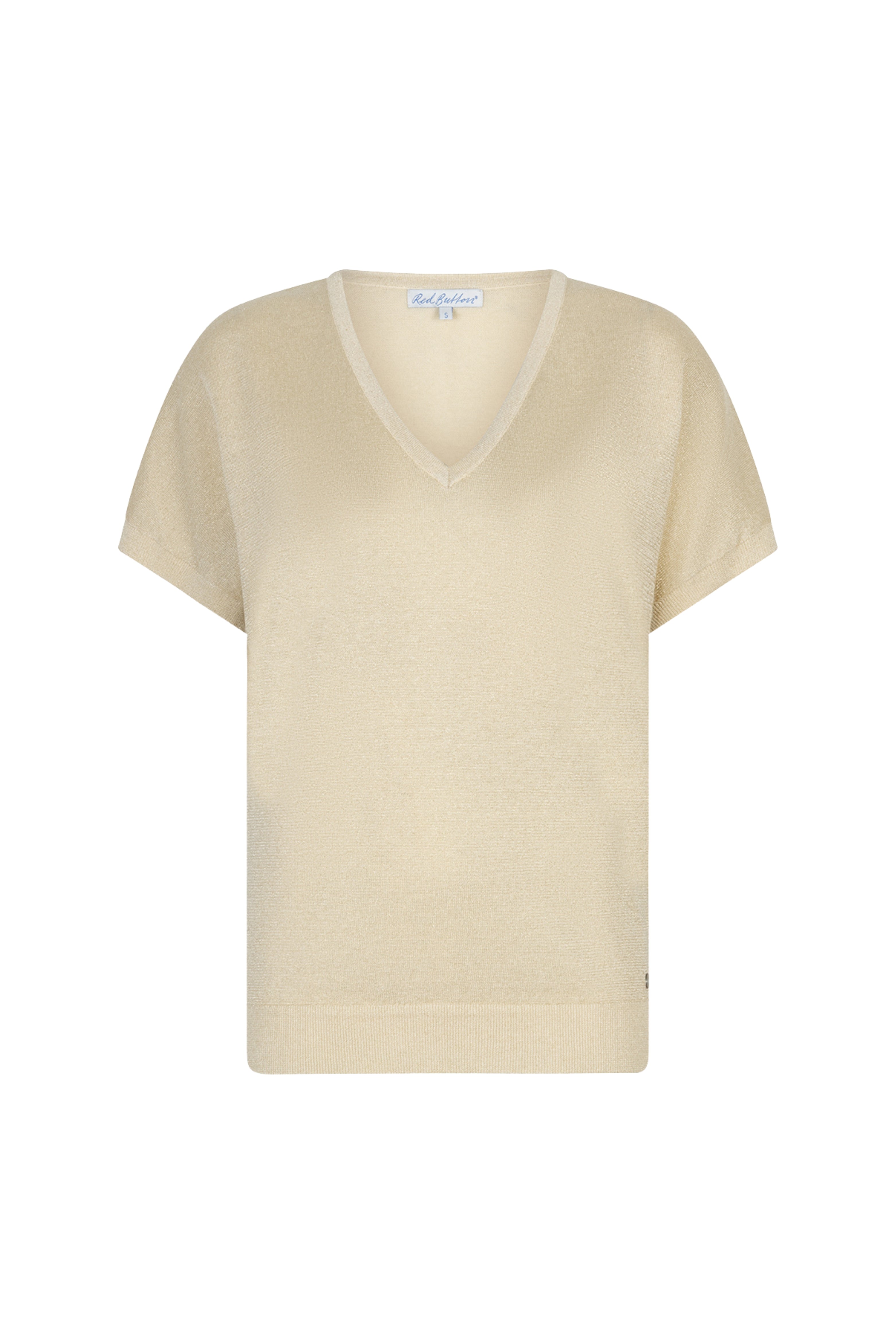 De Top Jerry Sparkle Oatmeal van Red Button is een elegante basic met een zachte glans. De lichte oatmeal tint in combinatie met de fijne sparkle en V-hals zorgt voor een verfijnde, vrouwelijke look die je makkelijk zowel casual als chic draagt.