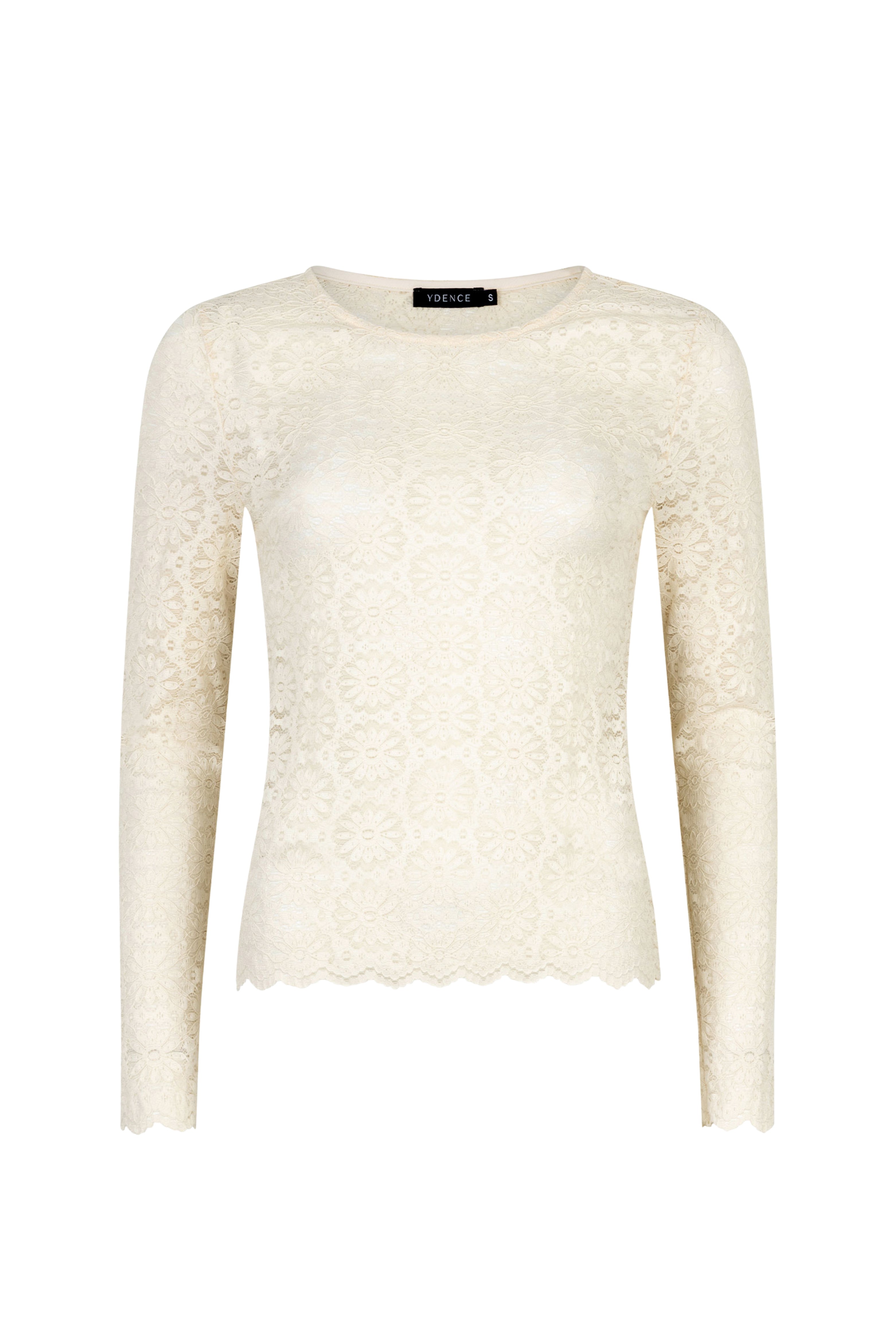 De Top Loiza Ecru van Ydence is een elegante basic met een vrouwelijke uitstraling. Het verfijnde kanten dessin en de aangesloten pasvorm maken deze top perfect om solo te dragen of als stijlvolle layer onder een blazer.