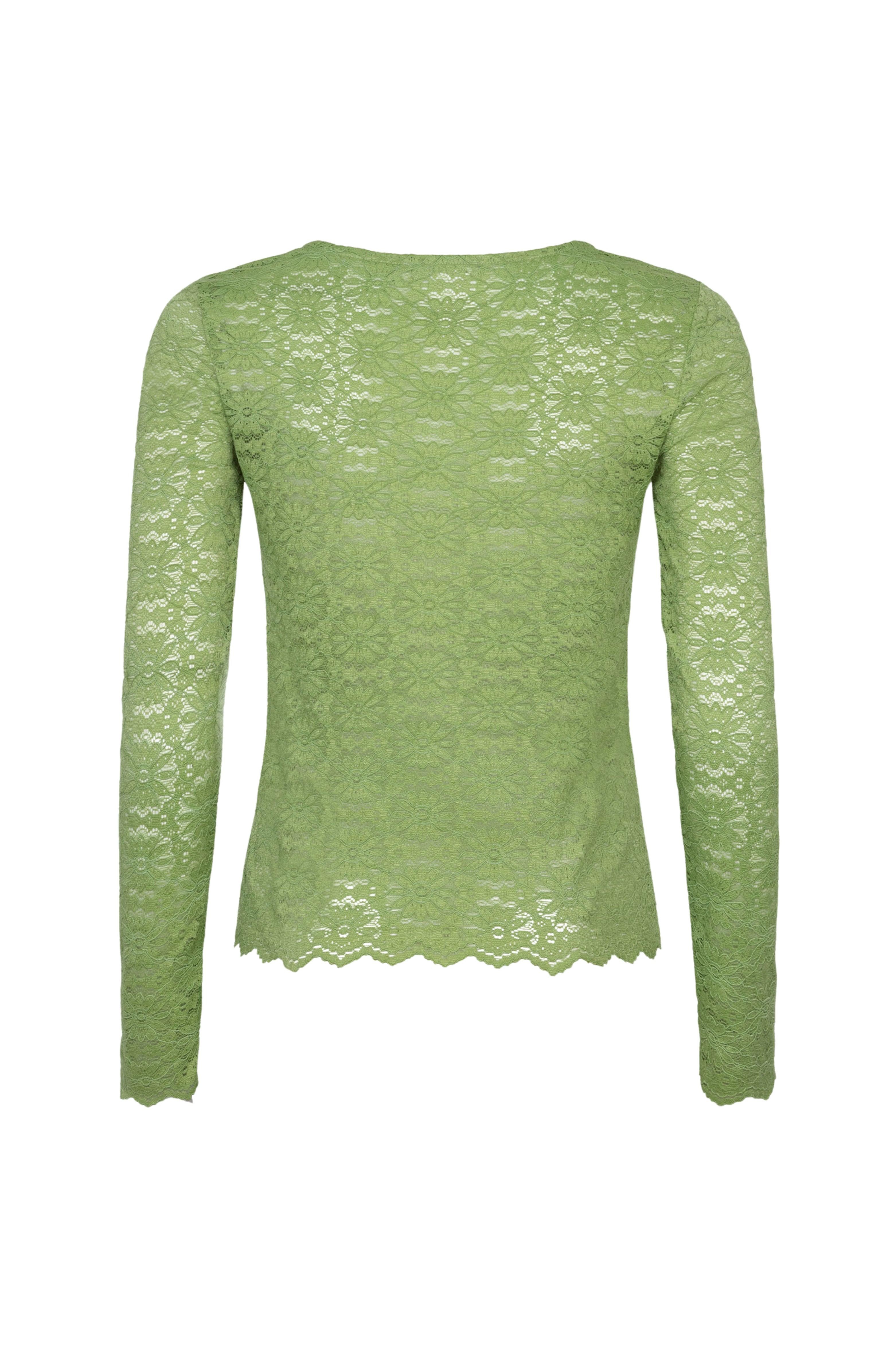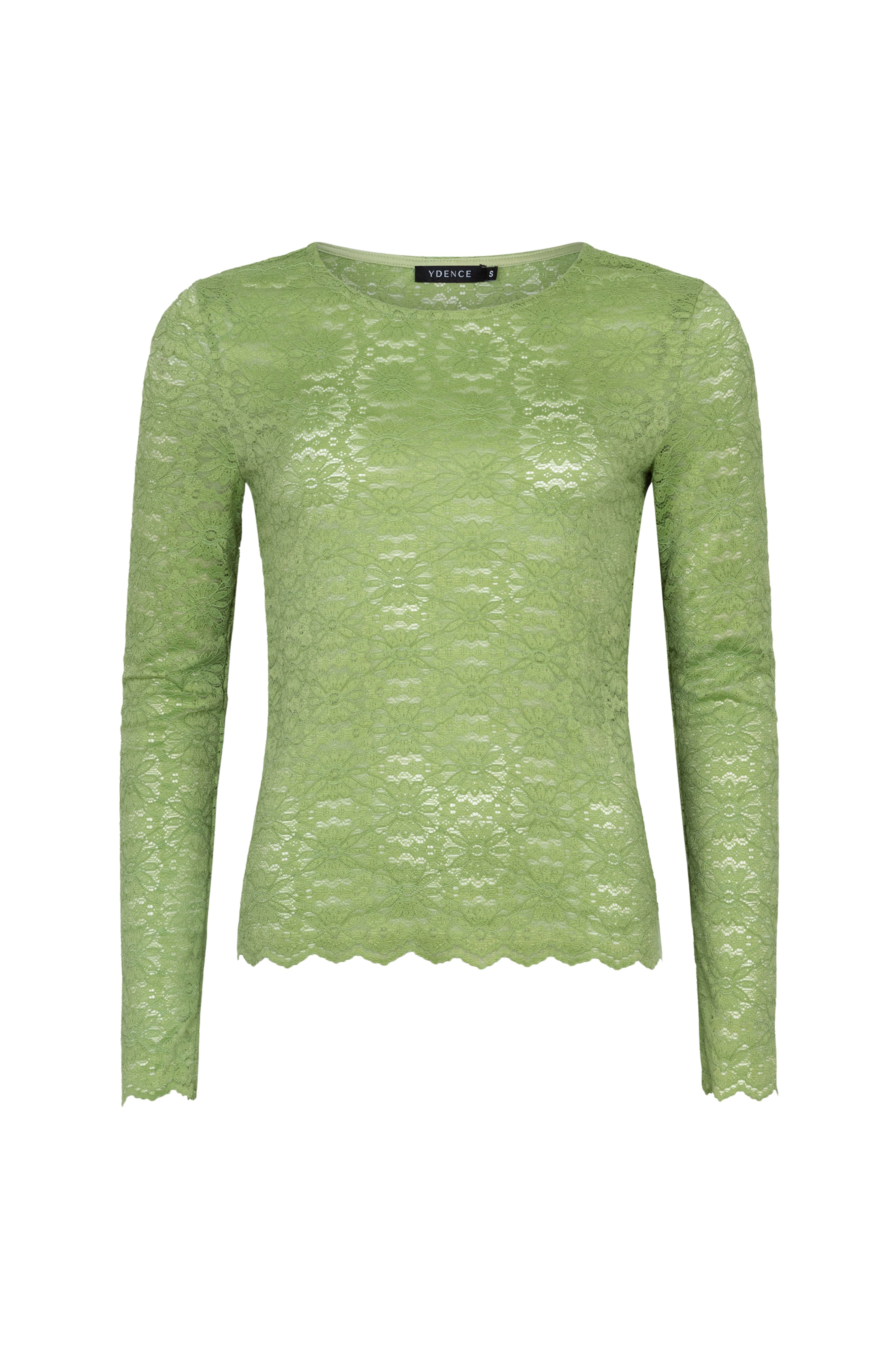 De Top Loiza Green van Ydence is een verfijnde eyecatcher met een frisse, vrouwelijke uitstraling. Het elegante kanten dessin en de aangesloten pasvorm maken deze top perfect voor zowel chic als casual styling.