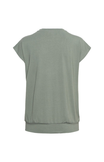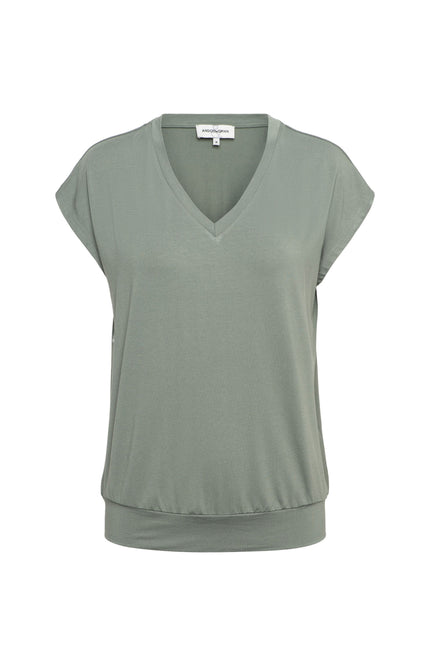 De Top Lucia Khaki TO280 van &Co Woman straalt rust en stijl uit. Met een zachte stof, een elegante V-hals en luchtige korte mouwen biedt deze top een perfecte mix van comfort en veelzijdigheid voor elke outfit.