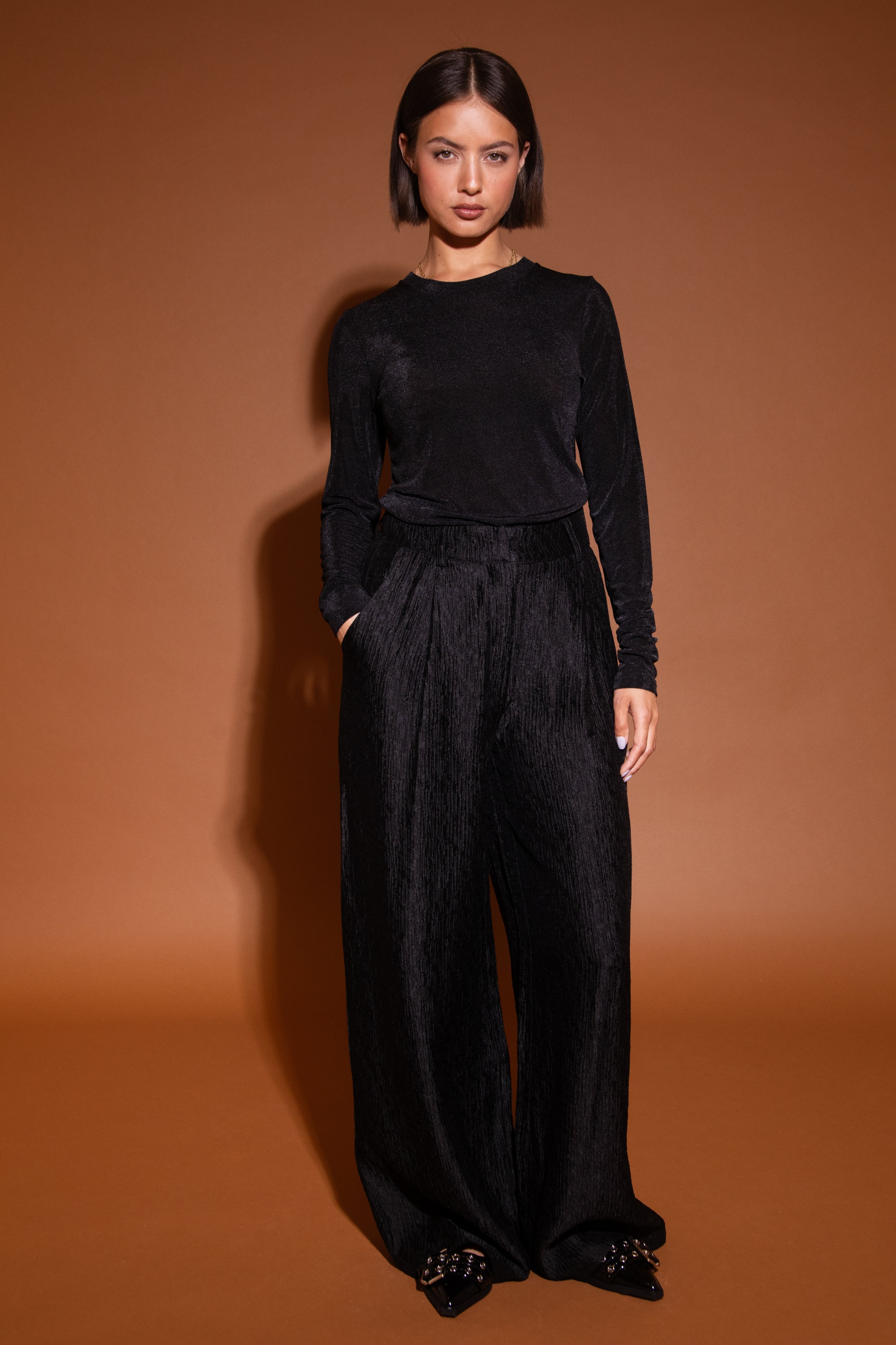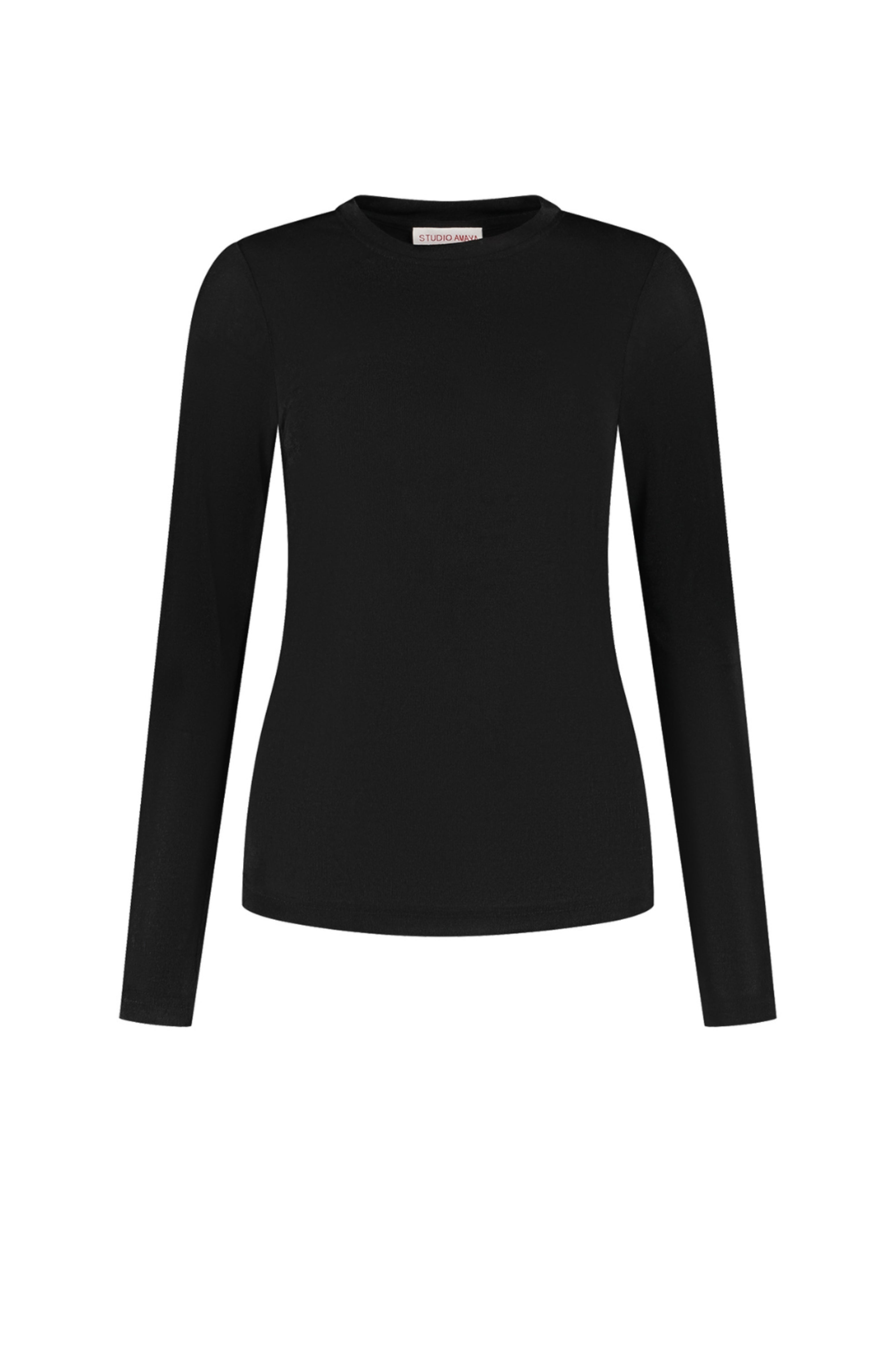 De Lynn Black Top van Studio Amaya is een veelzijdige basic die niet mag ontbreken in je garderobe. Deze strakke, zwarte top met lange mouwen en een ronde hals is perfect voor het creëren van gelaagde looks of om solo te dragen voor een minimalistische stijl.