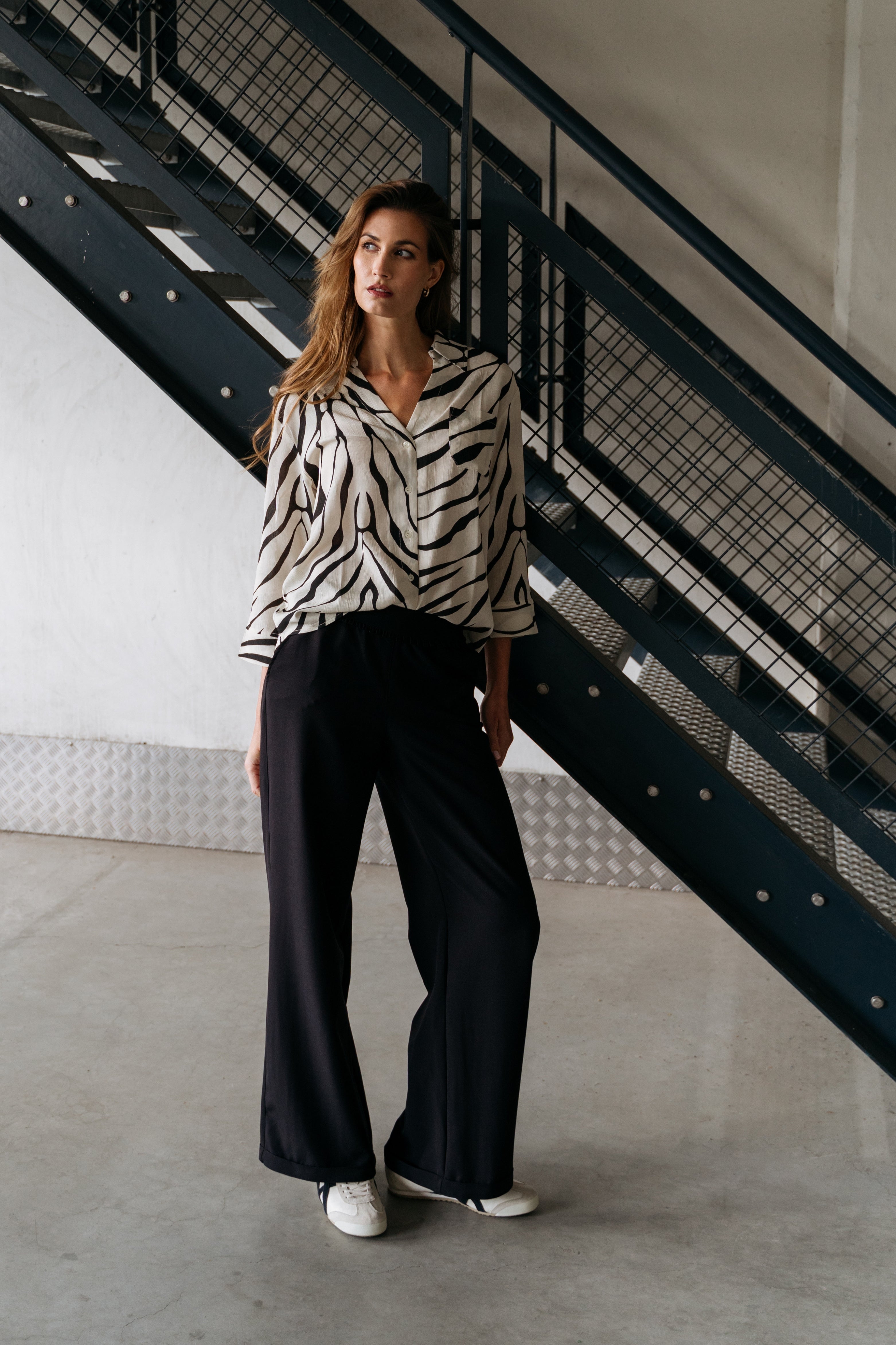 De Meeda Veines top van Maicazz is een echte eyecatcher met haar speelse zebraprint. De luchtige pasvorm, ballonmouwen en elastische zoom zorgen voor comfort รฉn stijl. Perfect voor een trendy voorjaarslook met flair.