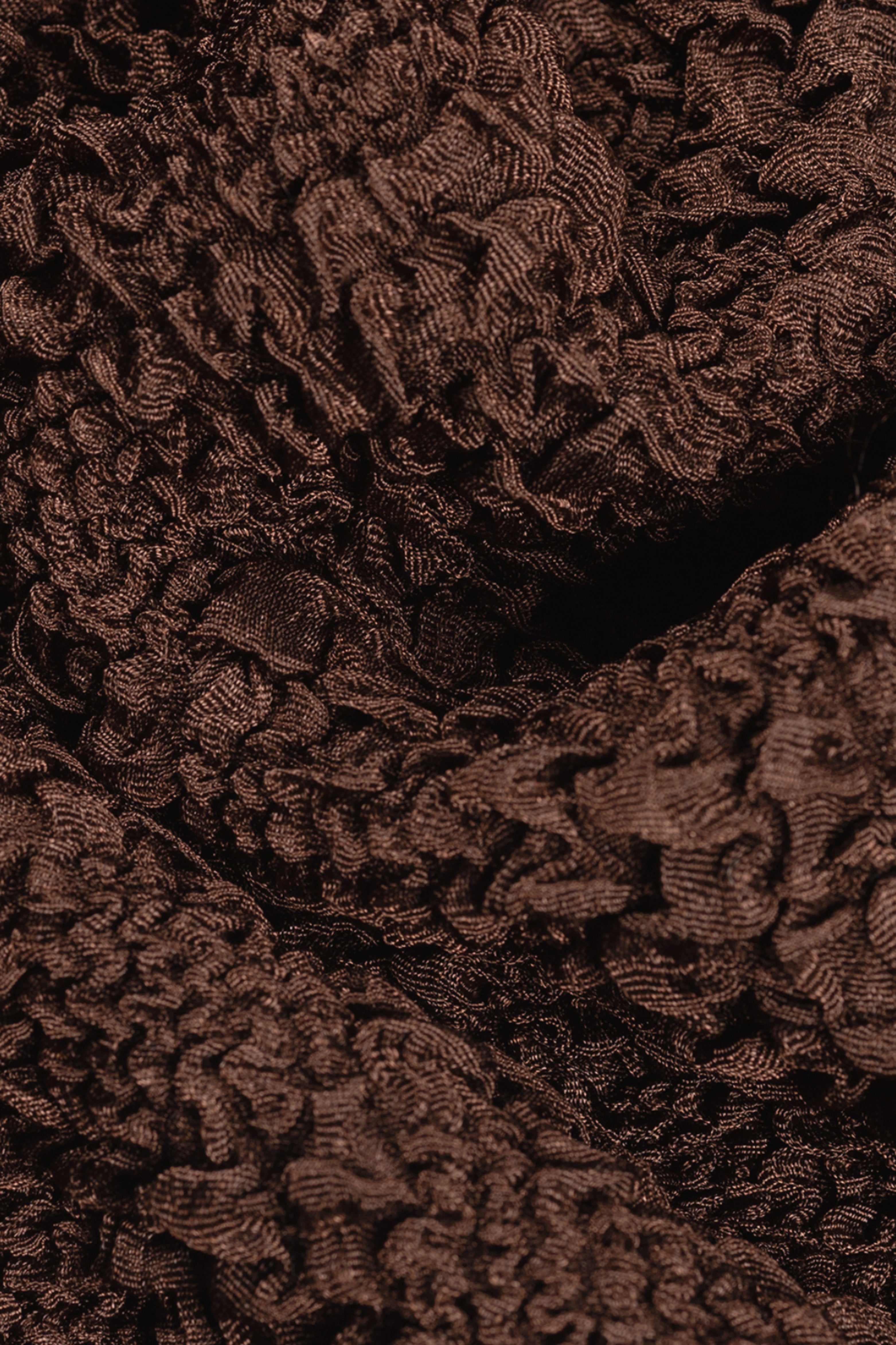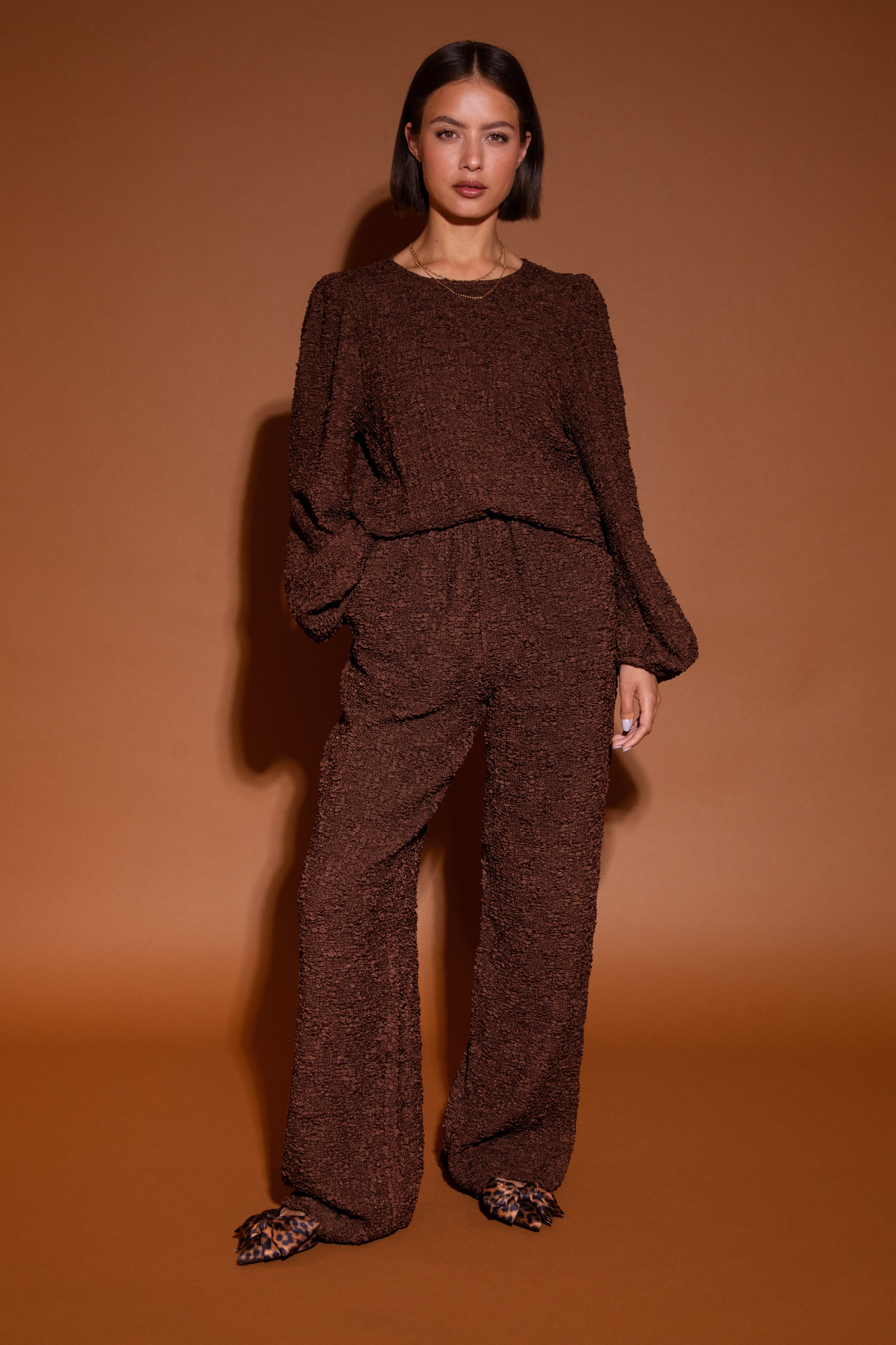 De Mia Brown Top van Studio Amaya is een stijlvolle en veelzijdige keuze voor zowel alledaagse als geklede gelegenheden. De top is uitgevoerd in een warme bruine tint en heeft een subtiele gestructureerde stof die zorgt voor een elegante uitstraling.