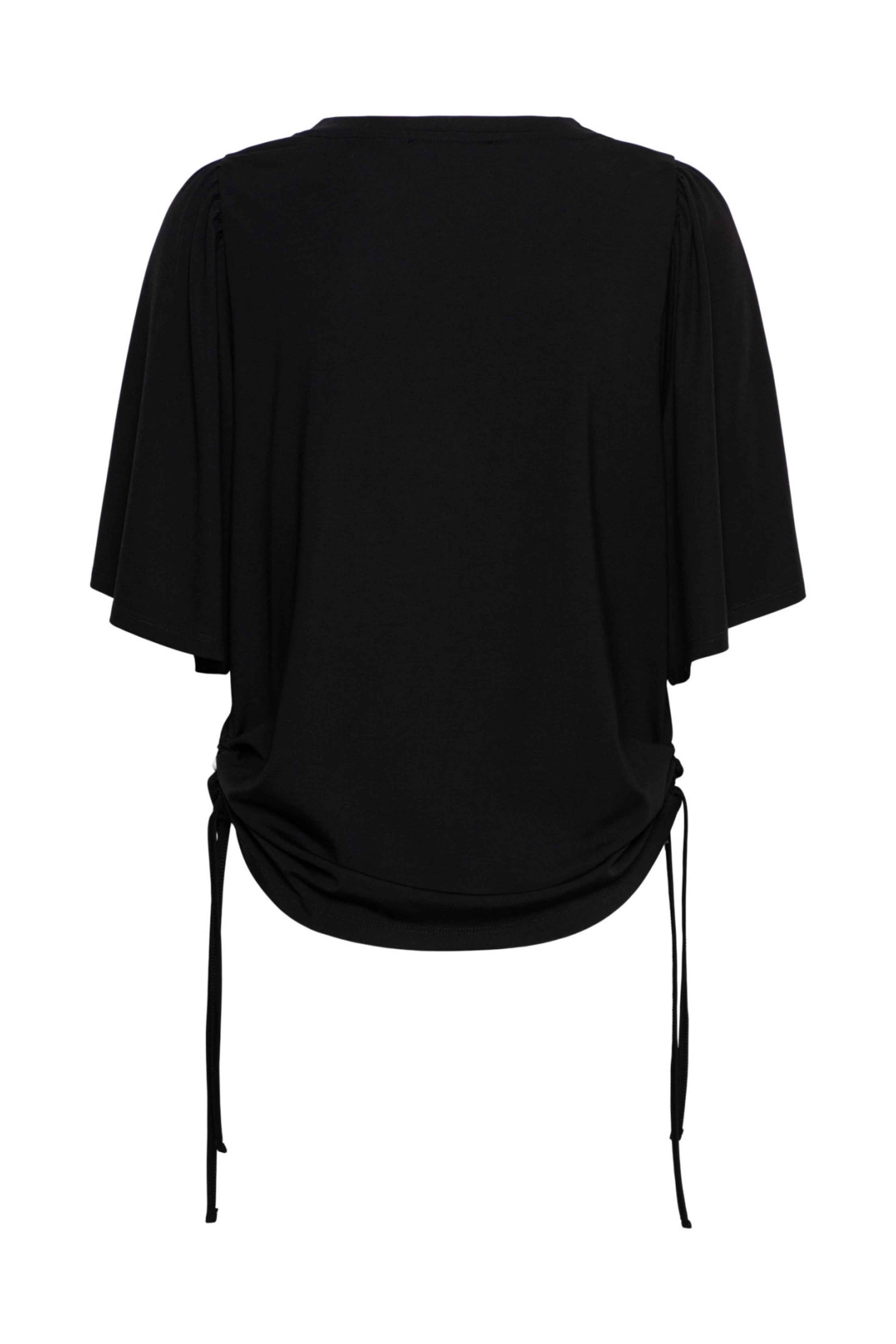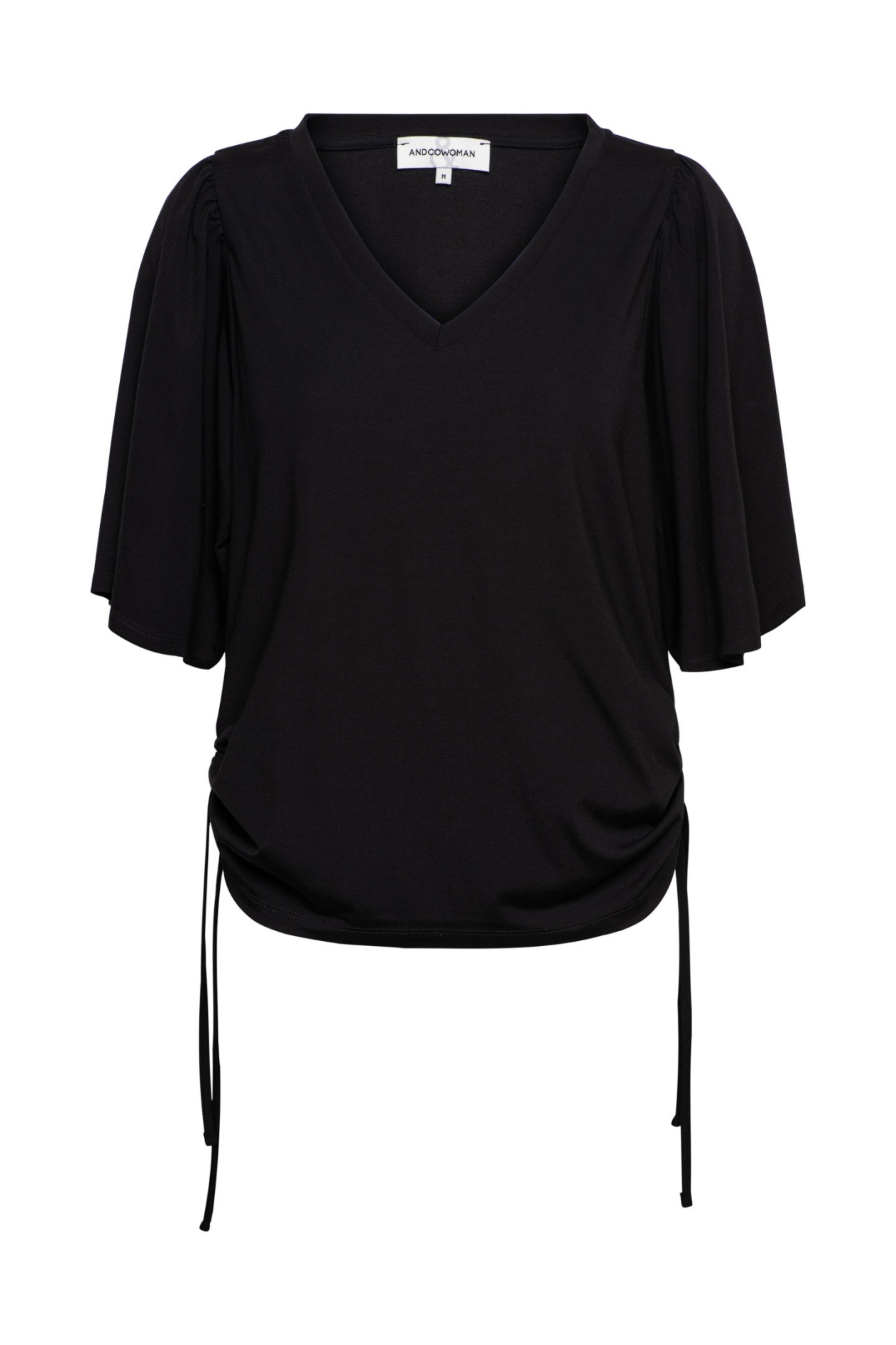 De Top Misha Black TO284 van &Co Woman is een elegante en comfortabele top met een flatterende V-hals en wijde mouwen. De verstelbare trekkoorden aan de zijkant geven een speelse touch en maken de pasvorm aanpasbaar.