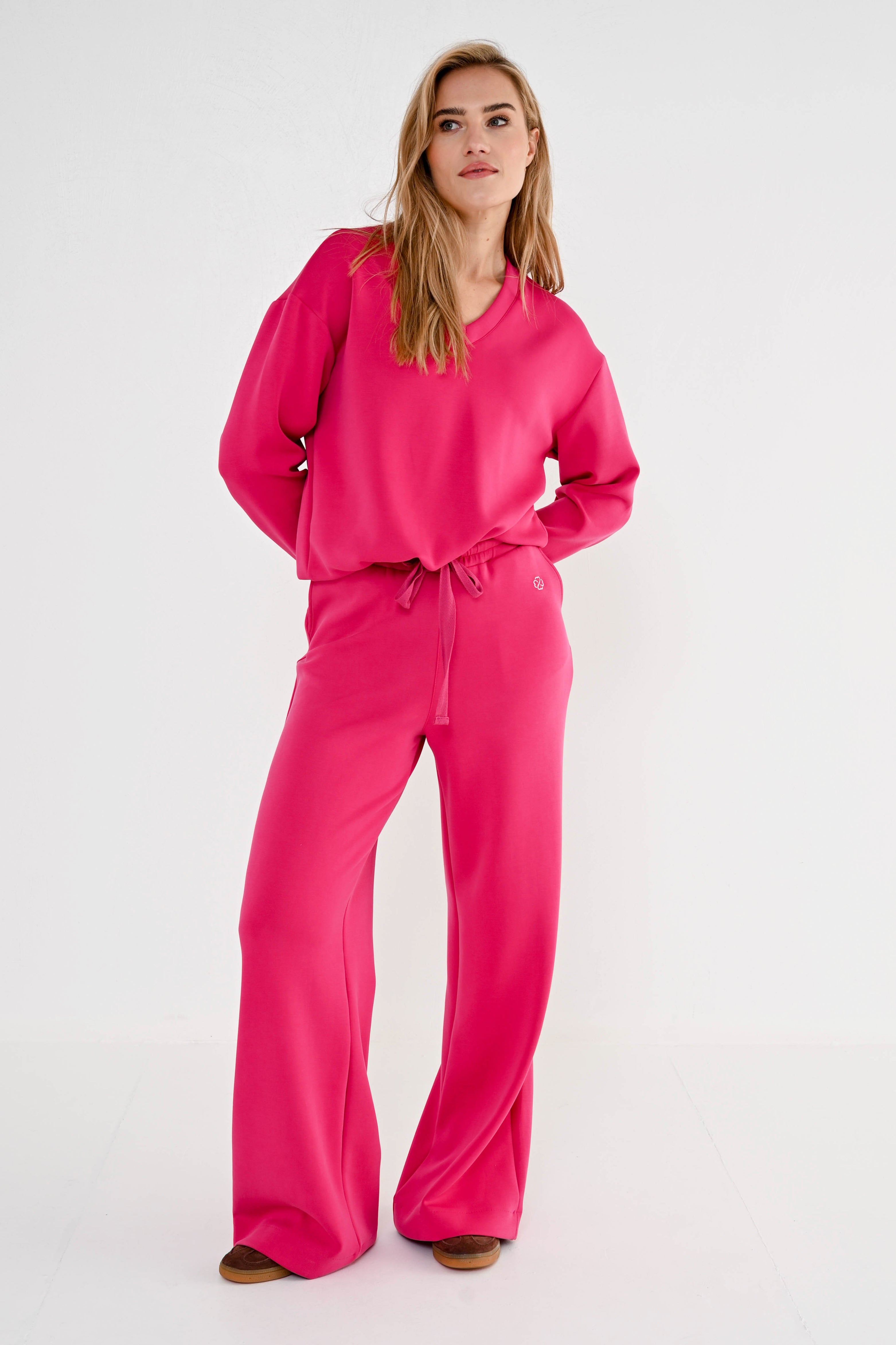 Deze Top Moskou Cerise van Maicazz combineert comfort met een sportieve look. Het soepele travelmateriaal draagt heerlijk, terwijl het trekkoord en de opvallende backprint zorgen voor een trendy, casual uitstraling.