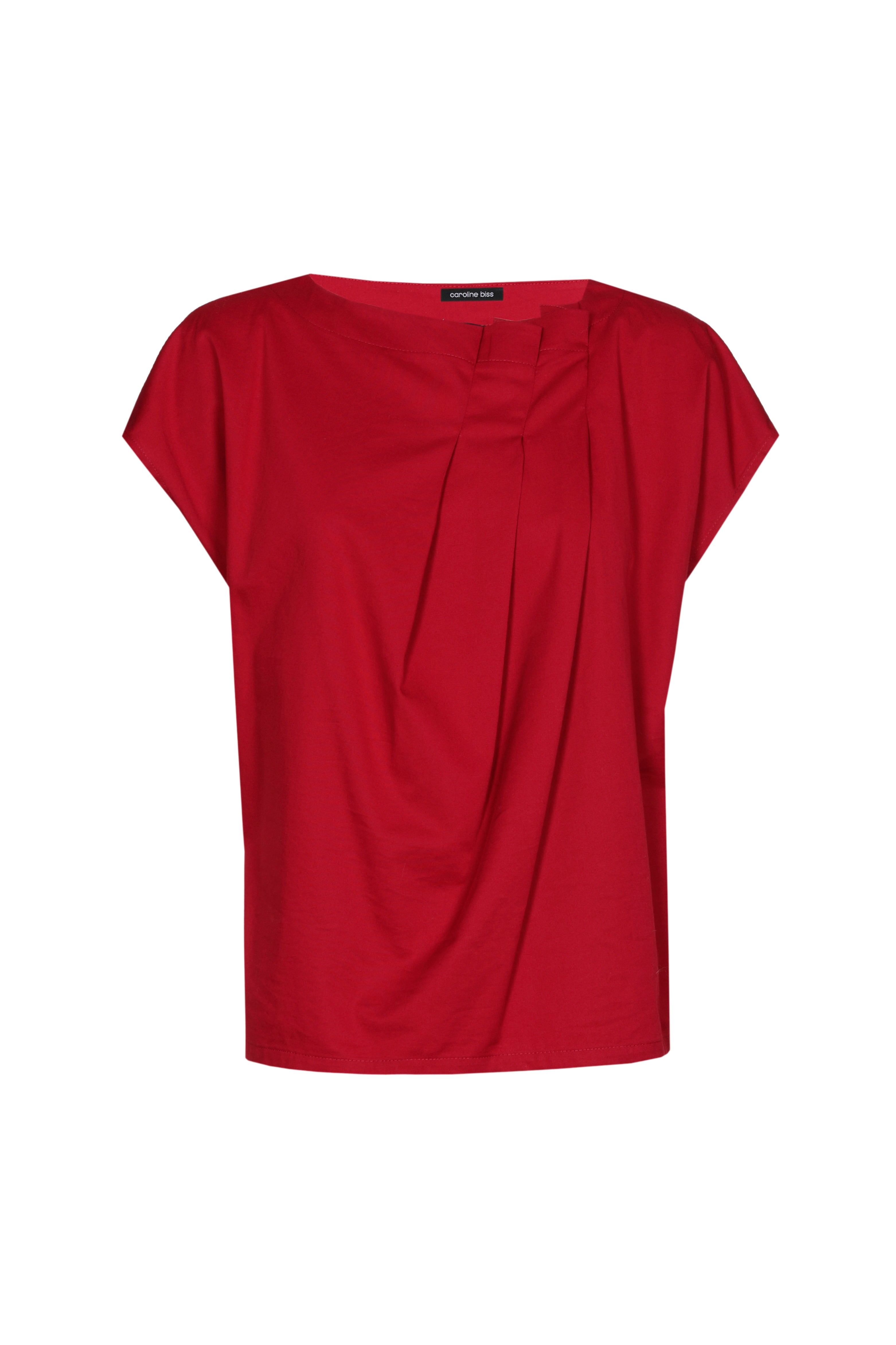 De Top Plooidetail Dark Red van Caroline Biss is een elegante top met ronde hals en korte mouwen. De soepele stof en plooien vooraan vallen mooi om het lichaam. Perfect voor zowel kantoor als diner!