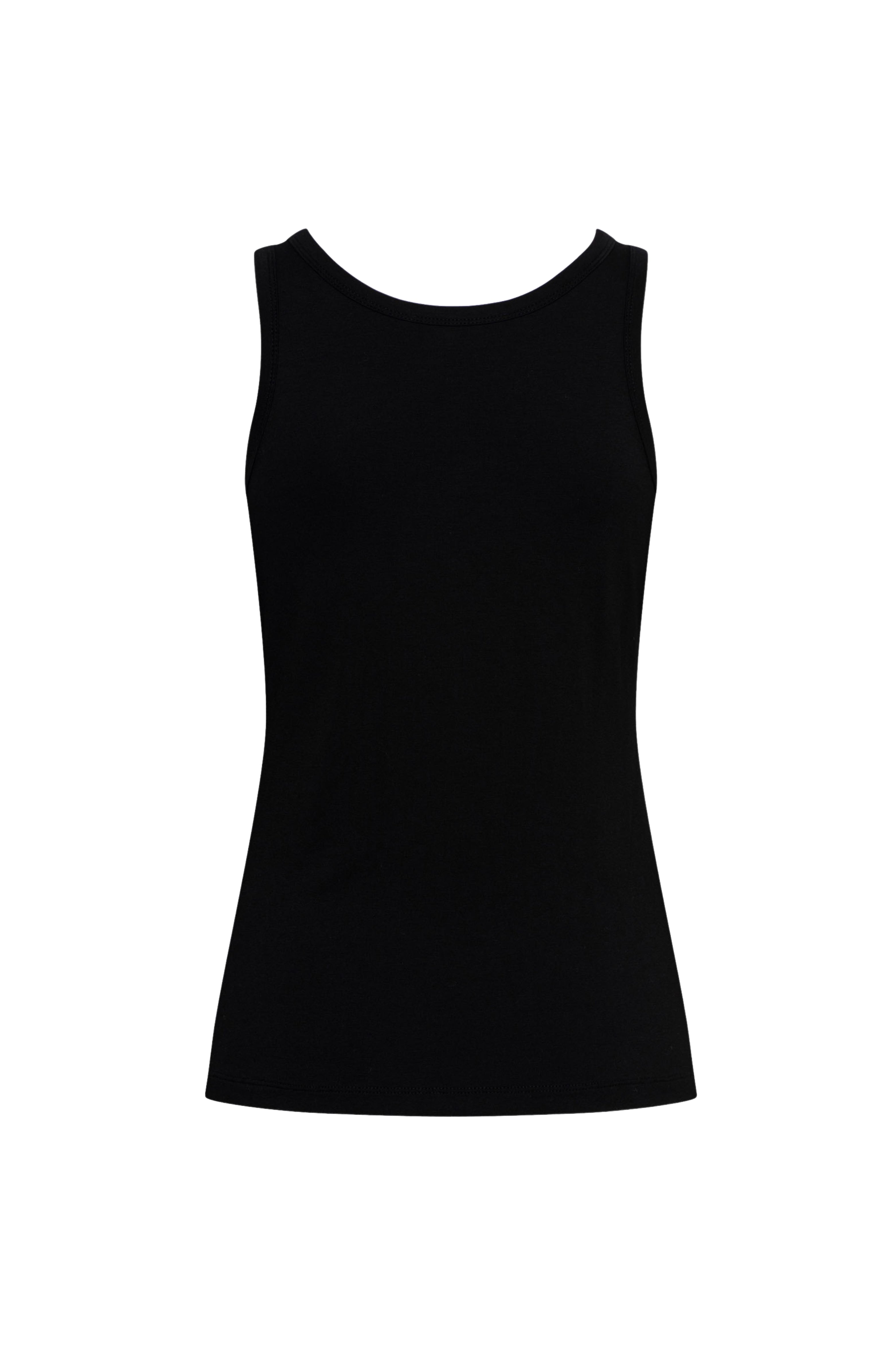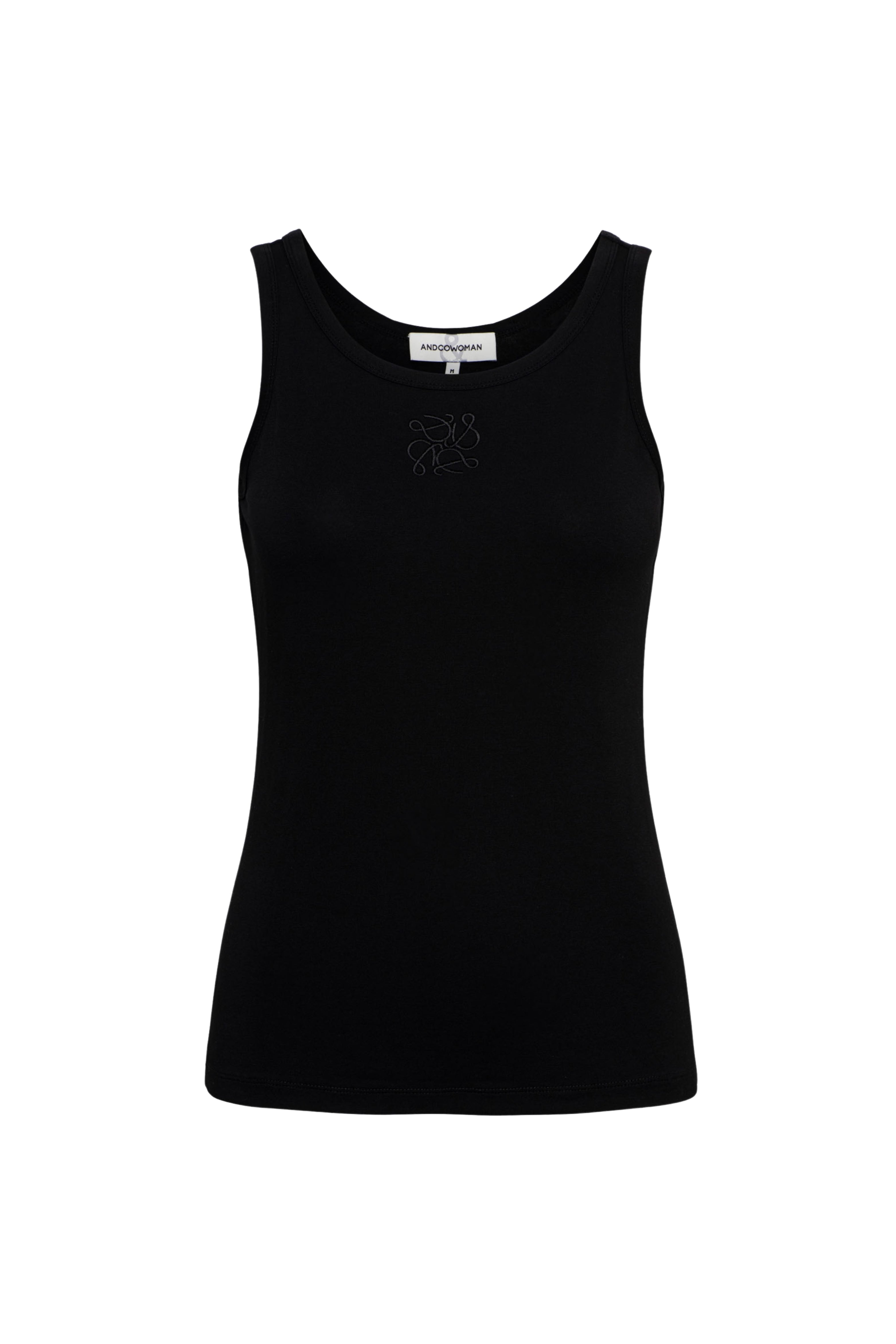 Top Sagunto Black van &Co Woman is een aangesloten mouwloze top met ronde hals en ton-sur-ton geborduurd logodetail op de borst. De zachte, stevige kwaliteit biedt een comfortabele fit en tijdloze uitstraling. Ideaal als basic solo of als layering piece.