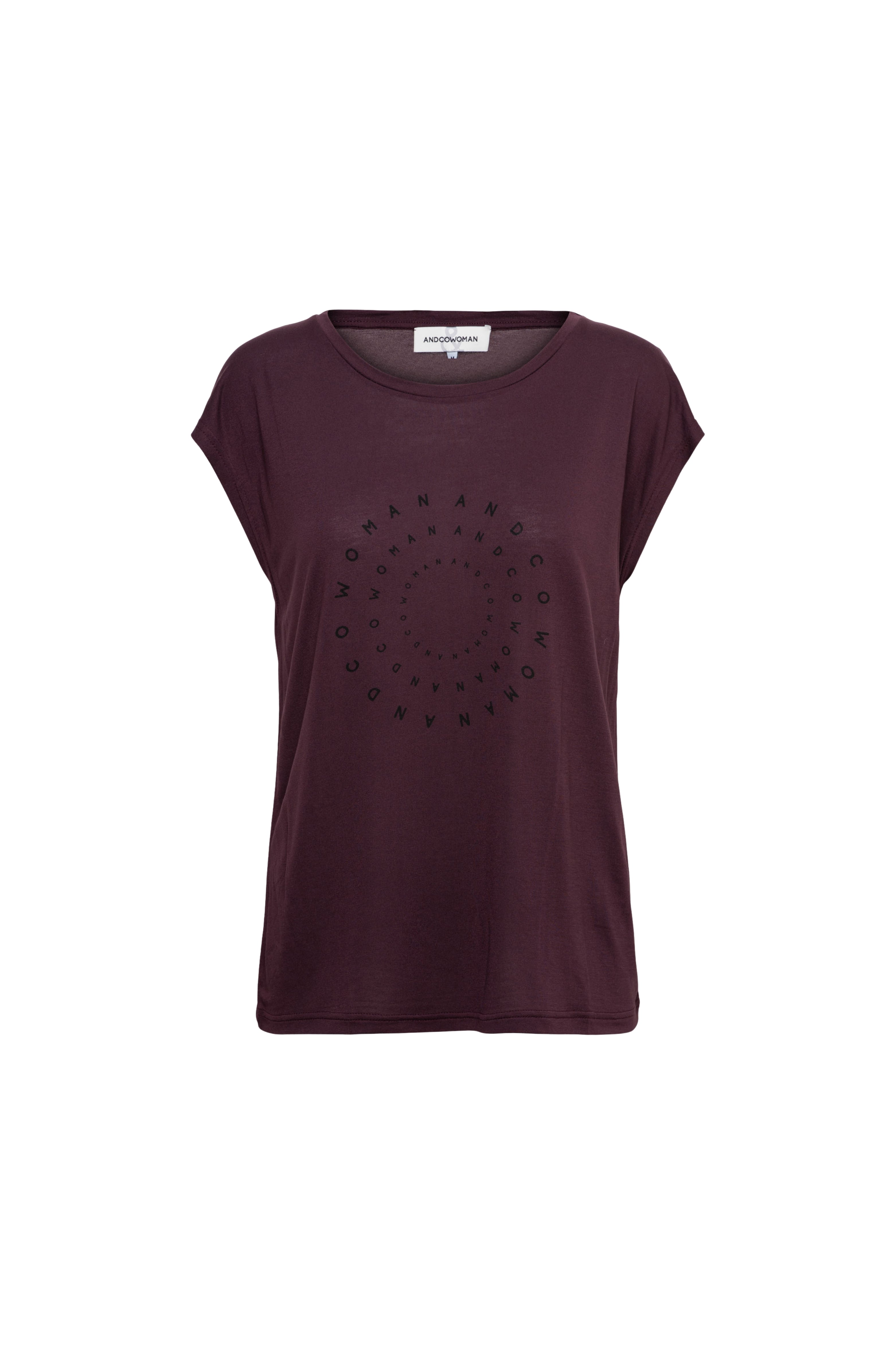 Top Signy Aubergine van &Co Woman is een eigentijdse basic met ronde hals en korte mouwen. De cirkelvormige artwork op de voorzijde geven deze top een stijlvolle twist. Perfect om casual te dragen met jeans of chic onder een blazer.