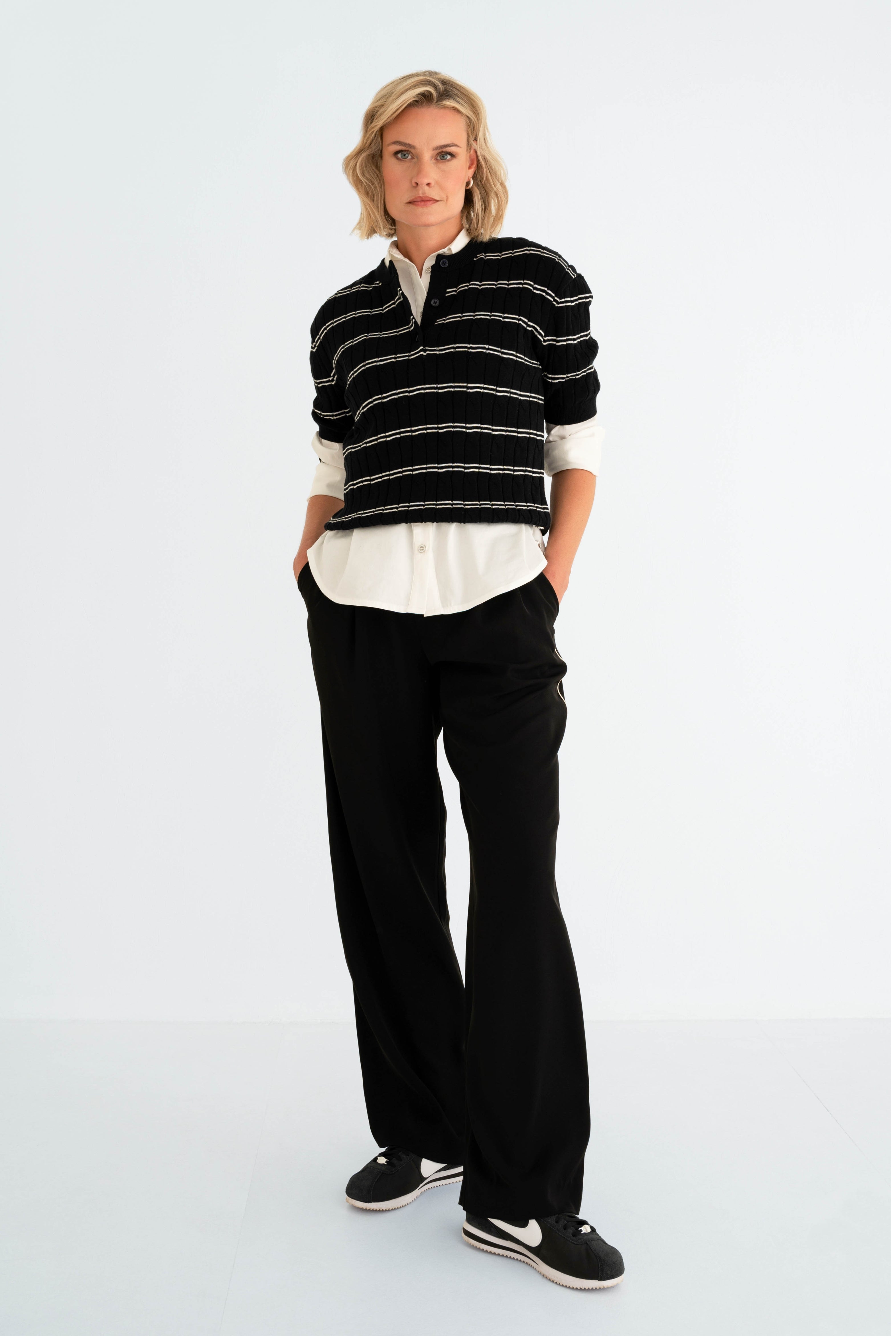 De Sweater Sarai Offwhite is een zachte, stijlvolle sweater met een moderne uitstraling. De V-hals en licht gepofte mouwen geven een vrouwelijke twist, terwijl de offwhite kleur zorgt voor een frisse, veelzijdige look die je moeiteloos combineert.