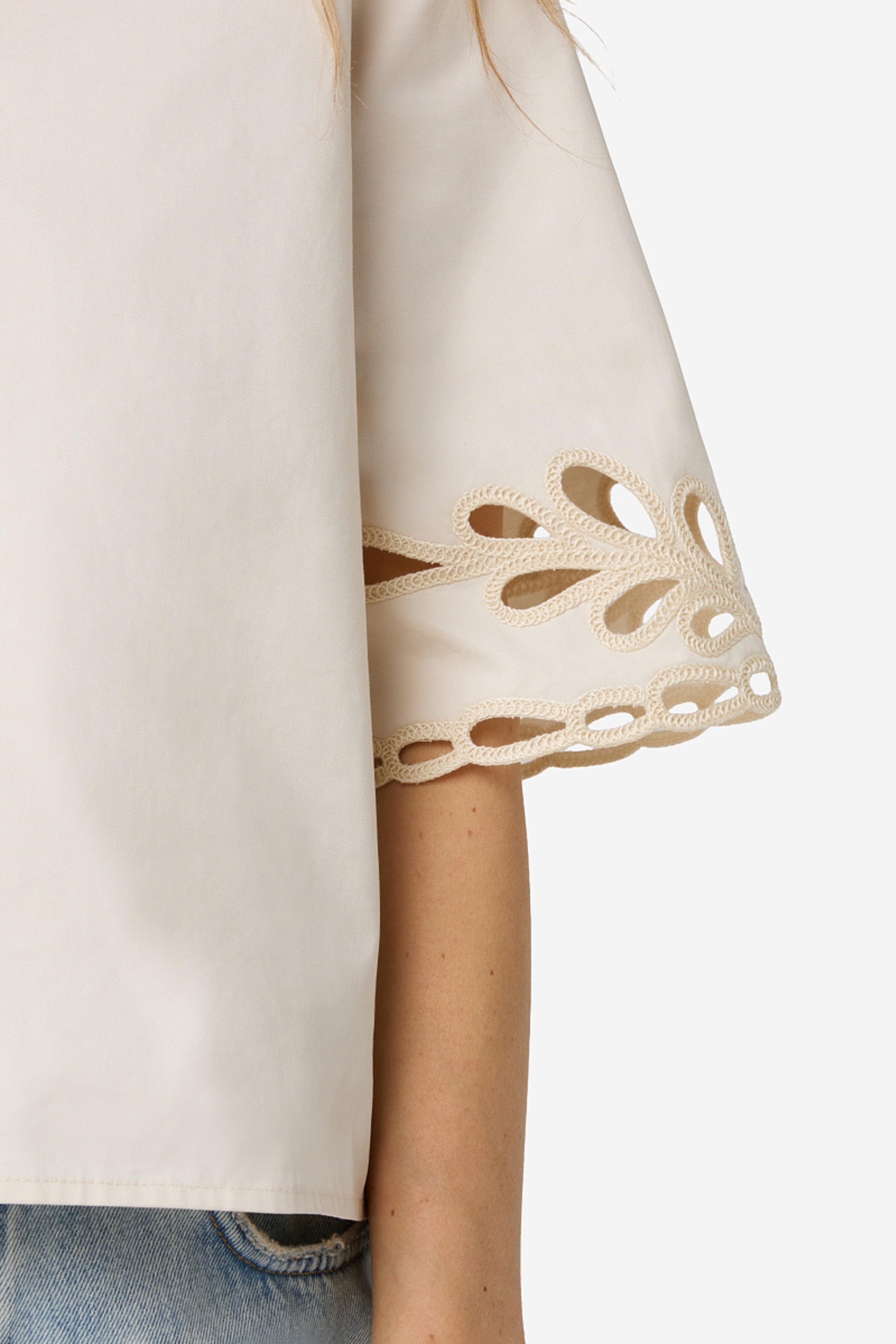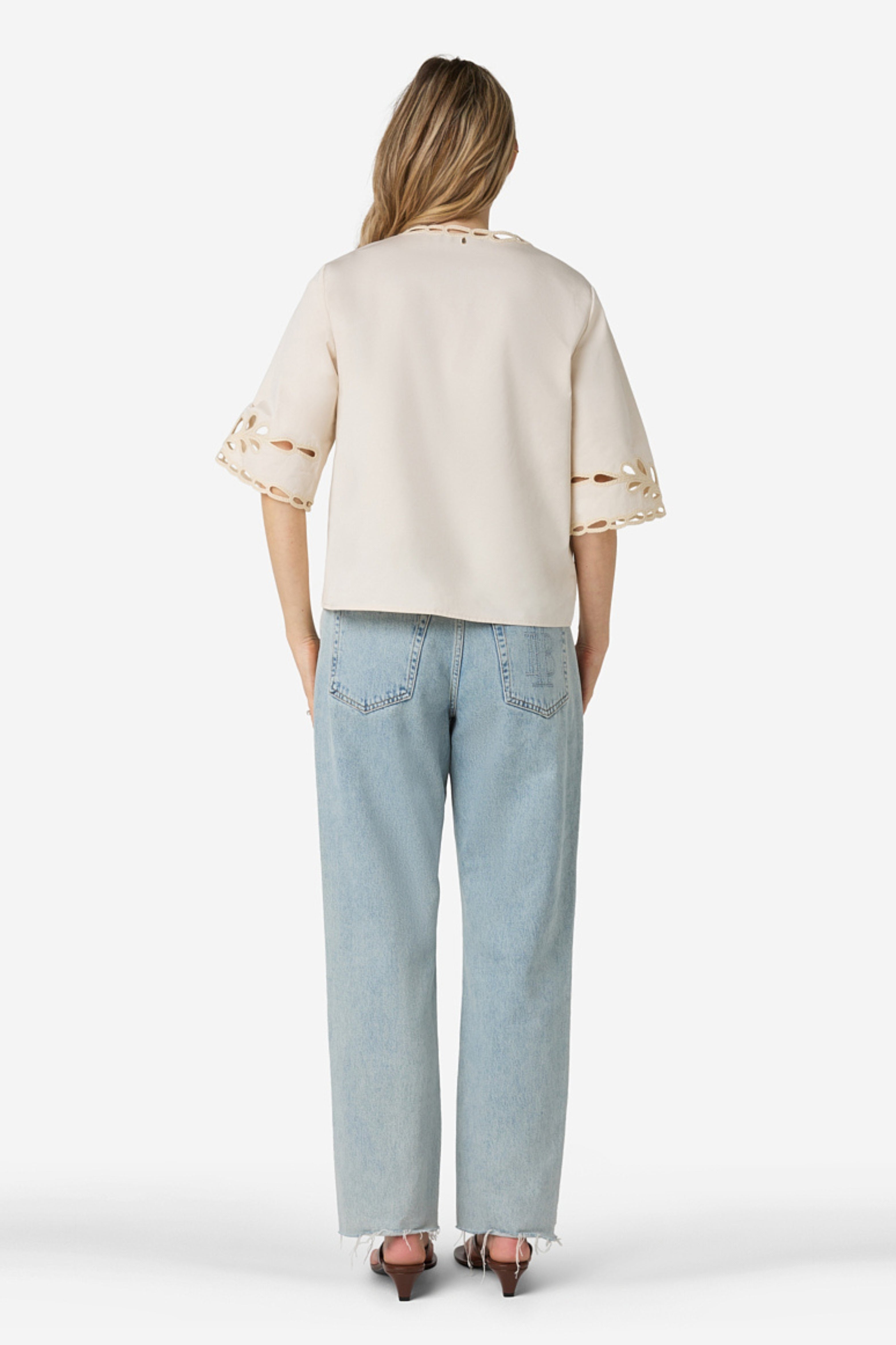 De Top Terna Perla White van Ibana is een romantische top met V-hals. Met broderie langs hals en mouwzoom. Perfect voor zomerse dagen of een citytrip.