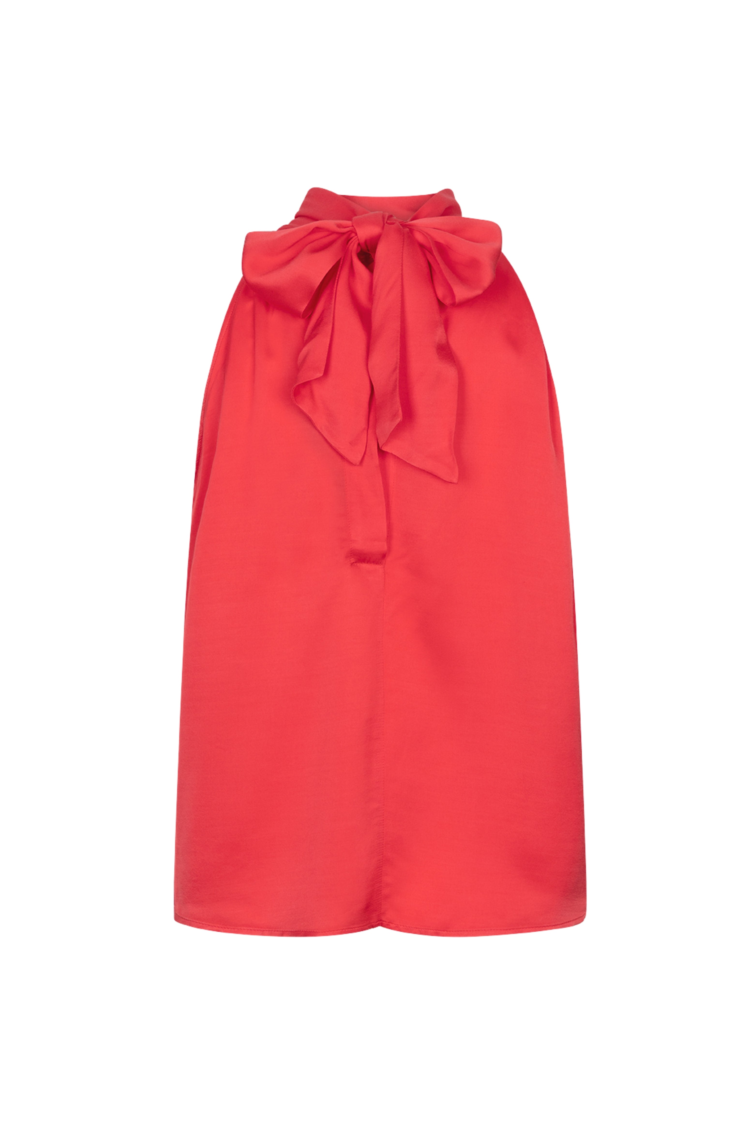 De Top Tolino Rosa Coral van Ibana is een elegante top met opstaande kraag. Glanzende satijnlook en soepel geplooide stof geven een chique, vrouwelijke uitstraling. Perfect voor een zomerse avond of etentje.