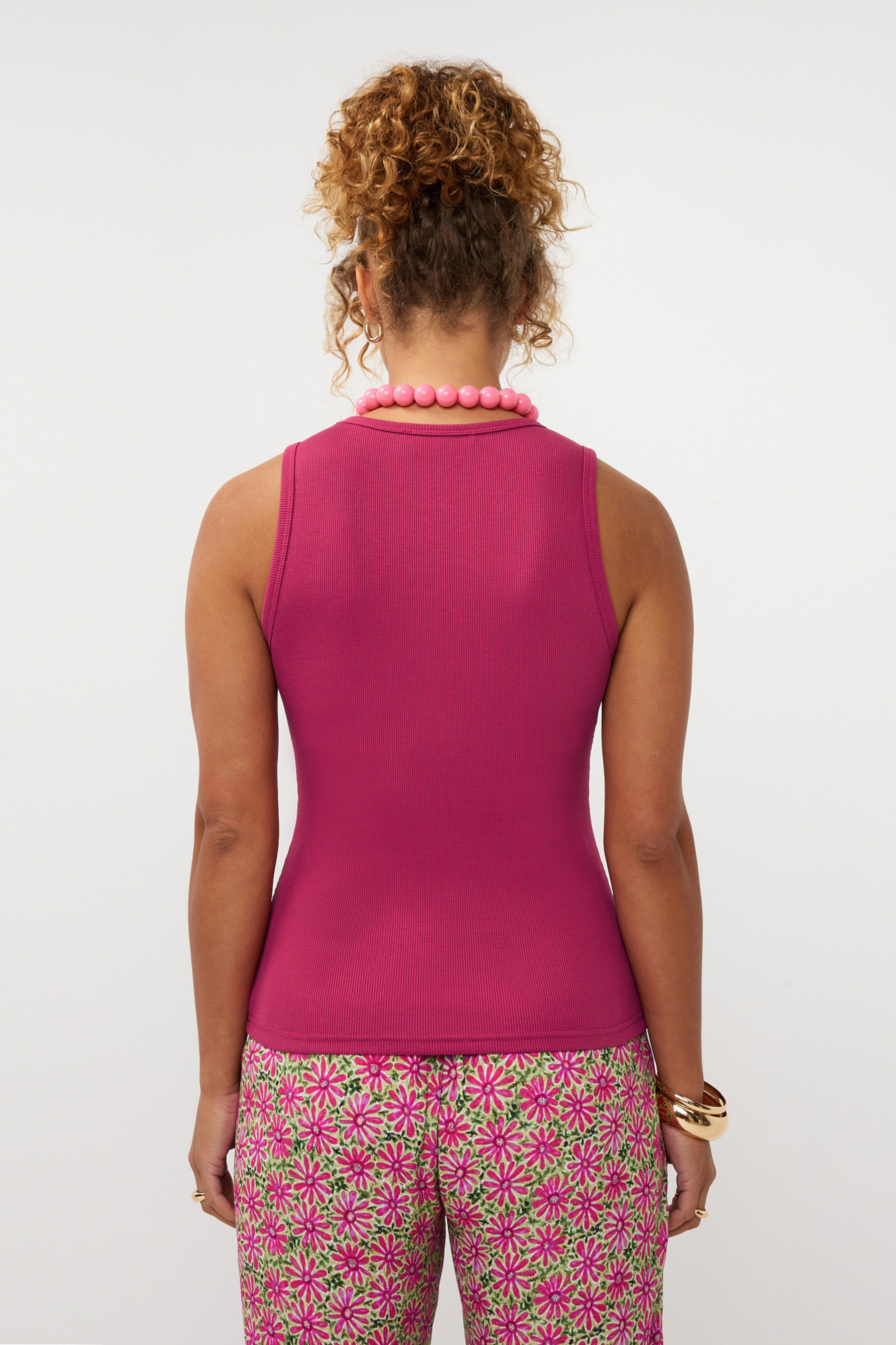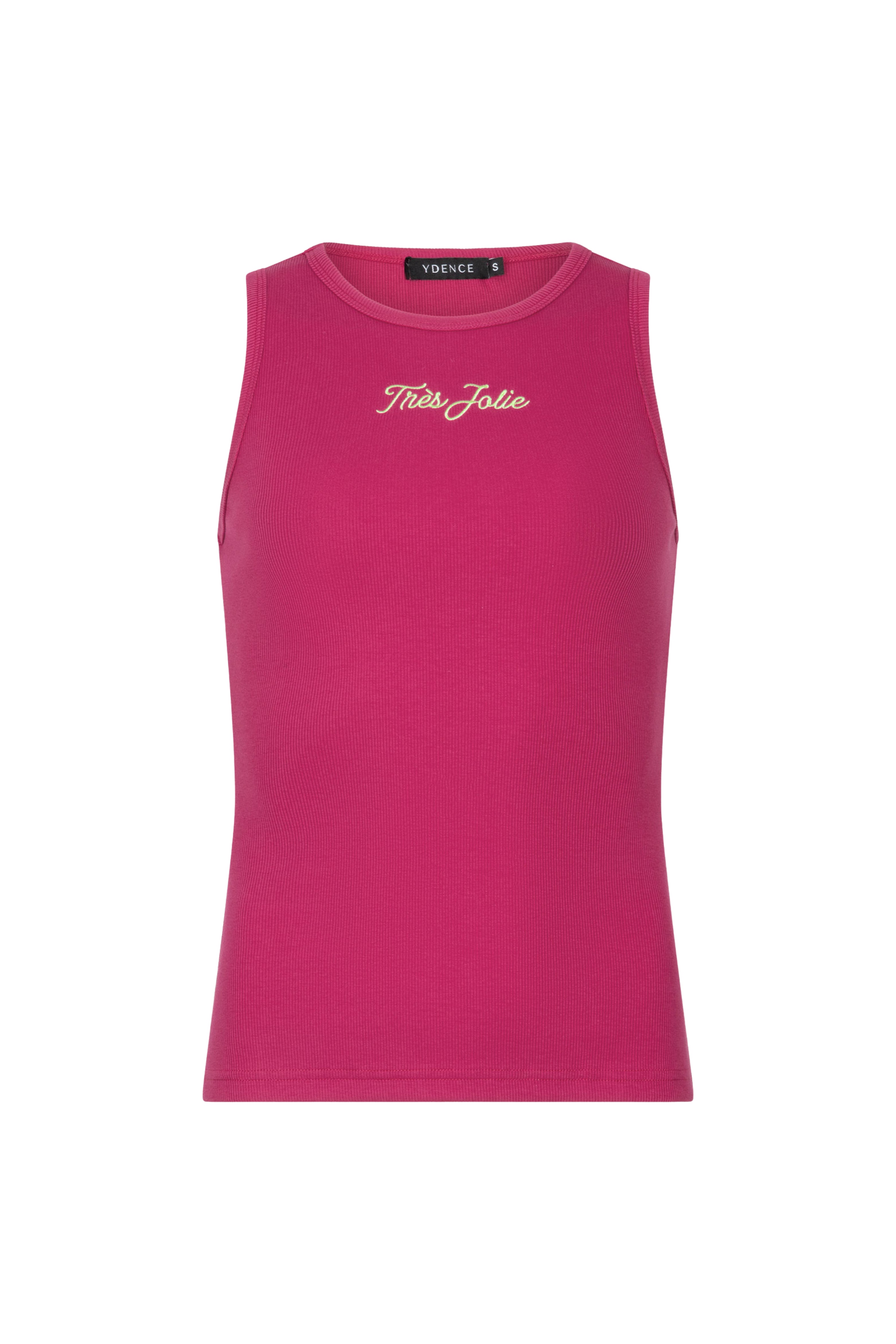 De Top Très Jolie Berry Pink van Ydence is een opvallende essential met een vrouwelijke uitstraling. De ribstof, aangesloten pasvorm en het subtiele Très Jolie-borduursel maken deze top perfect voor zowel casual als trendy looks.