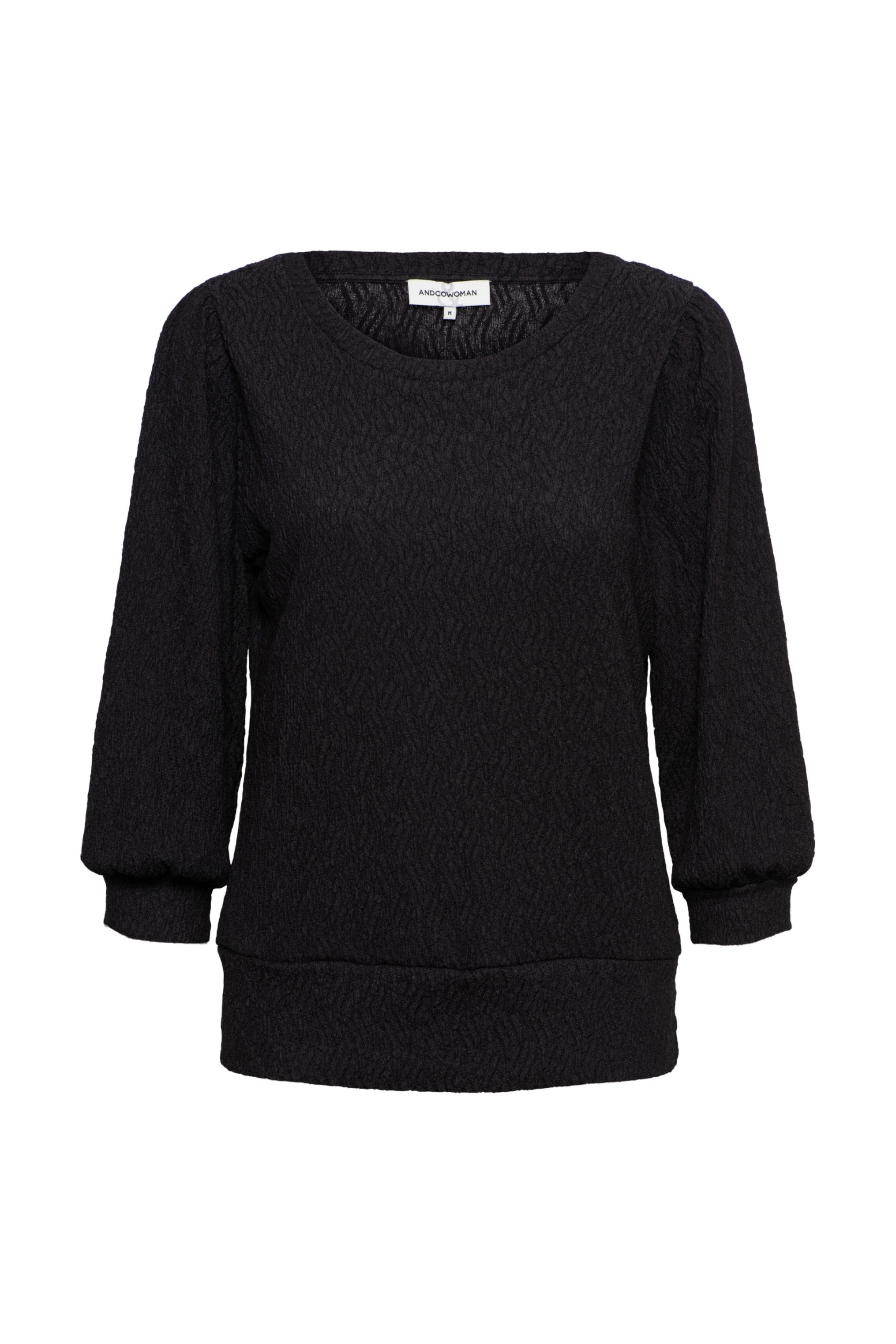 De Top Tyler Black TO282 van &Co Woman is een stijlvolle top met een subtiele structuur en een elegante uitstraling. De ballonmouwen en ronde hals maken het een veelzijdig item voor zowel casual als chique gelegenheden.