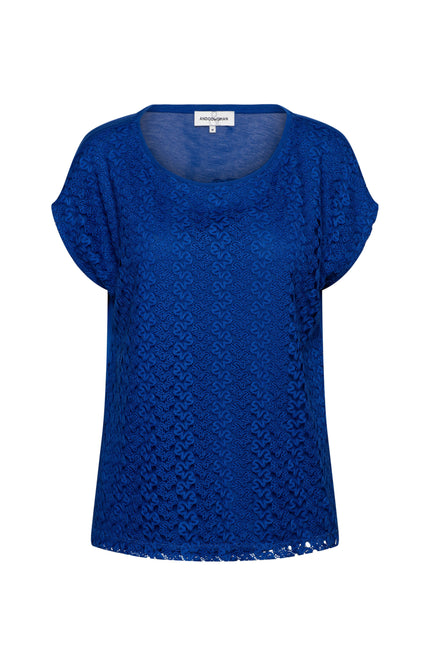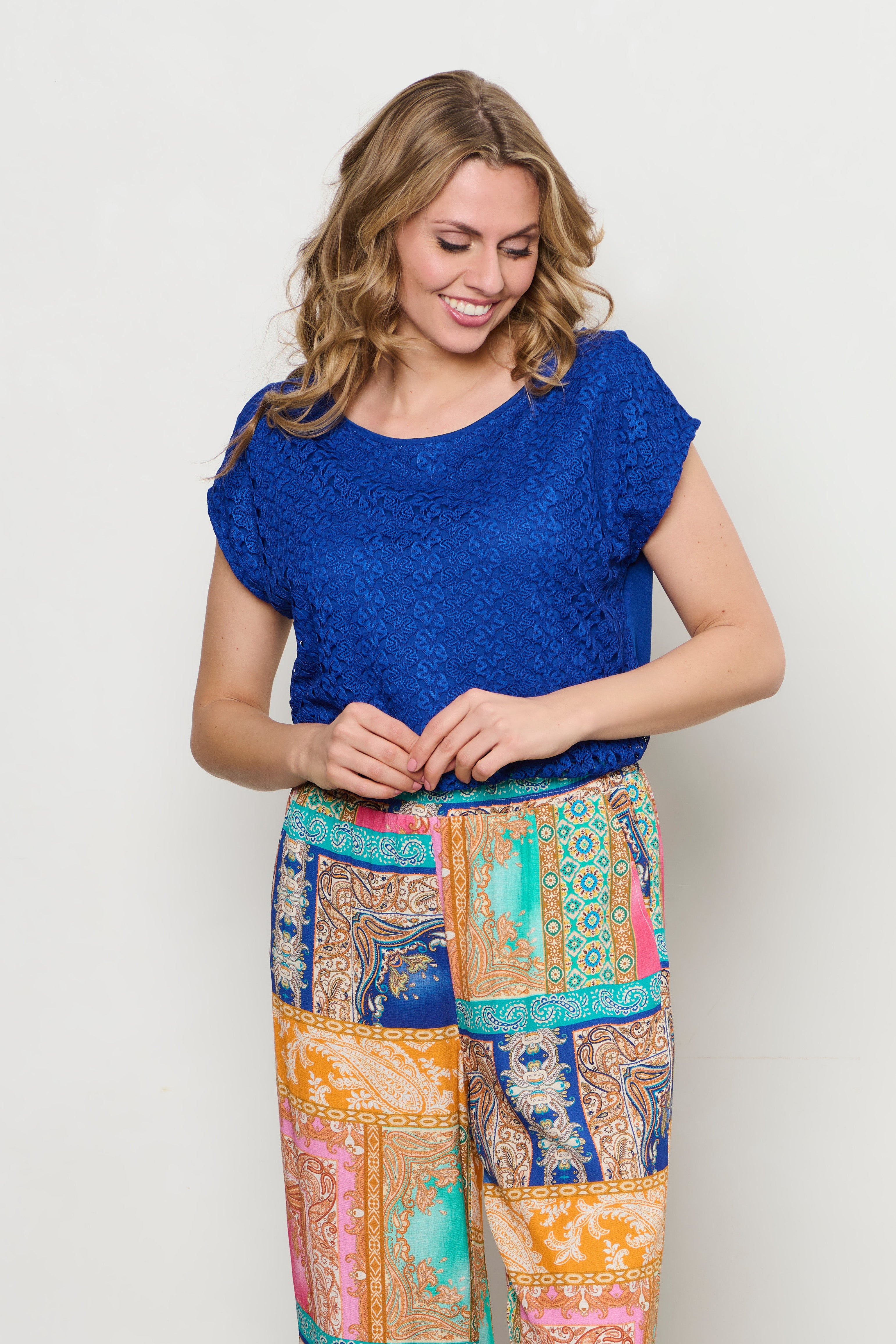 Top Varena Cobalt van &Co woman geeft je outfit een frisse kleurboost. Het opengewerkte design en luchtige materiaal zorgen voor een zomerse, vrouwelijke uitstraling met een comfortabele fit.